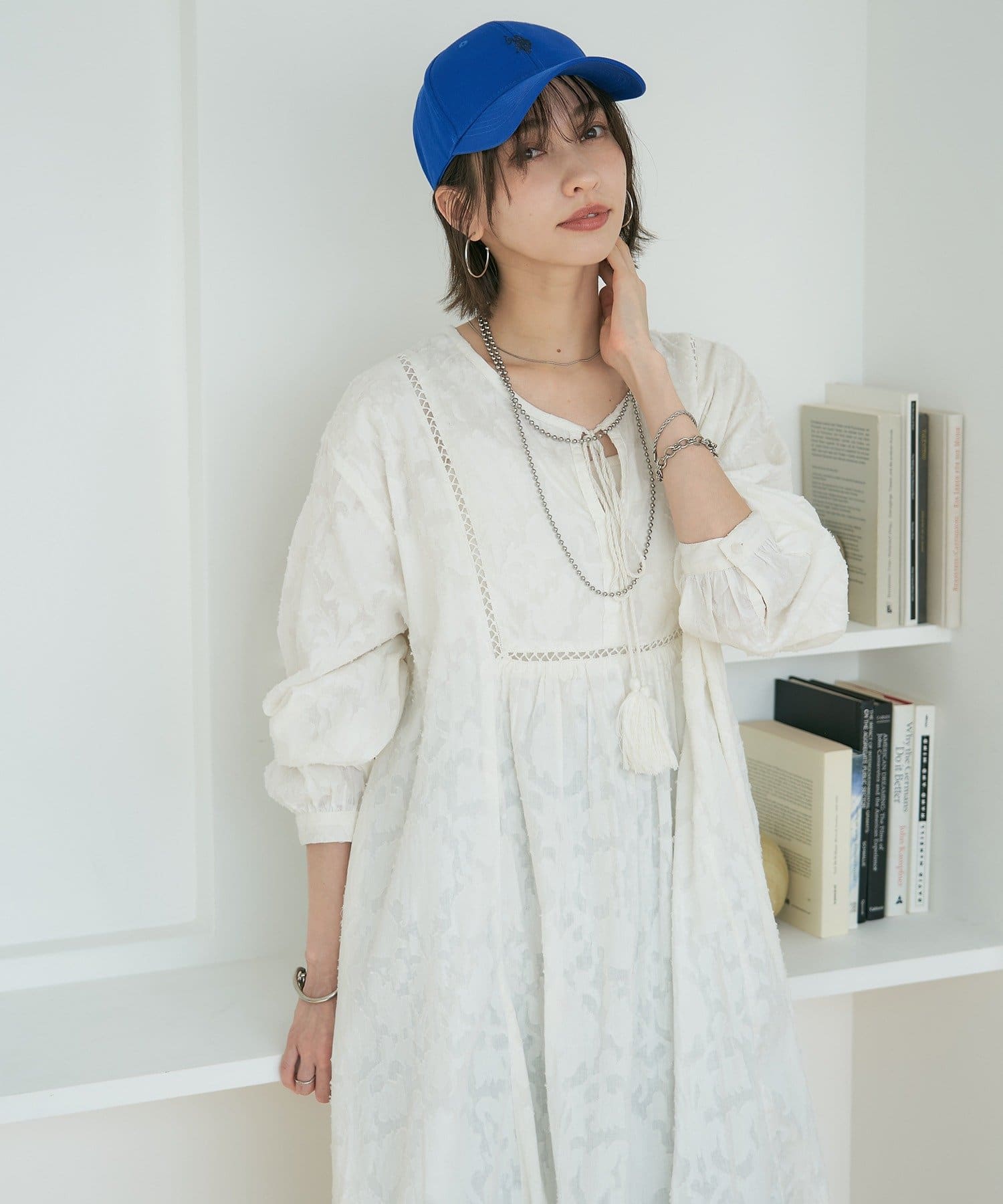 ・繊細で表面感あるジャガードレースが、大人の女性らしさを引き立てるワンピース