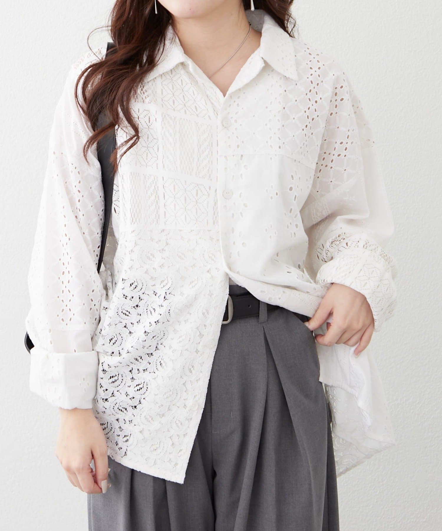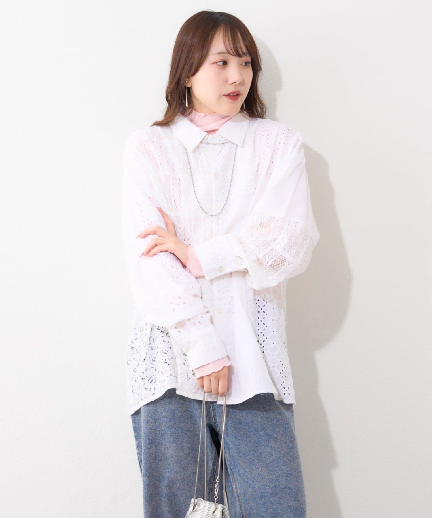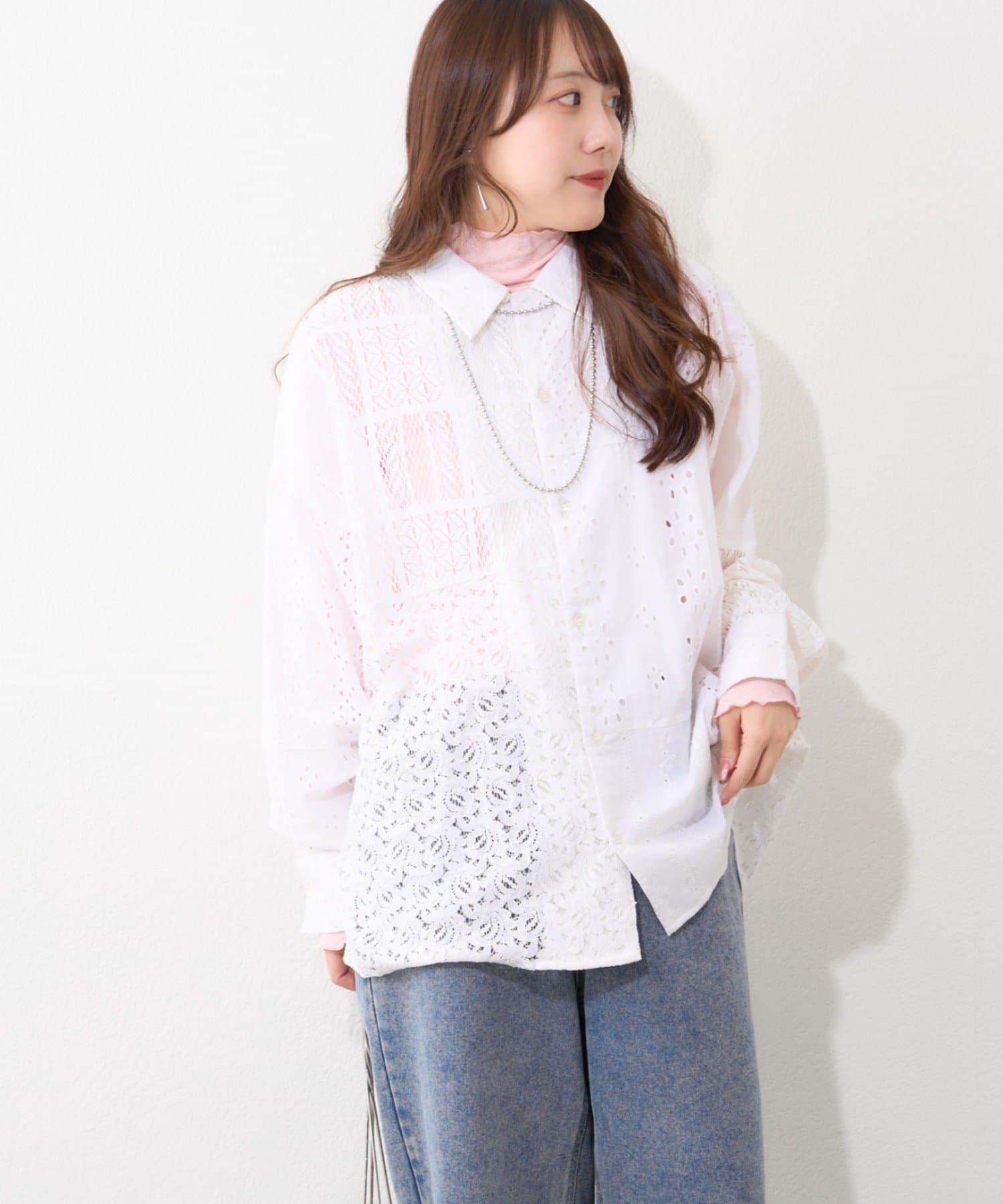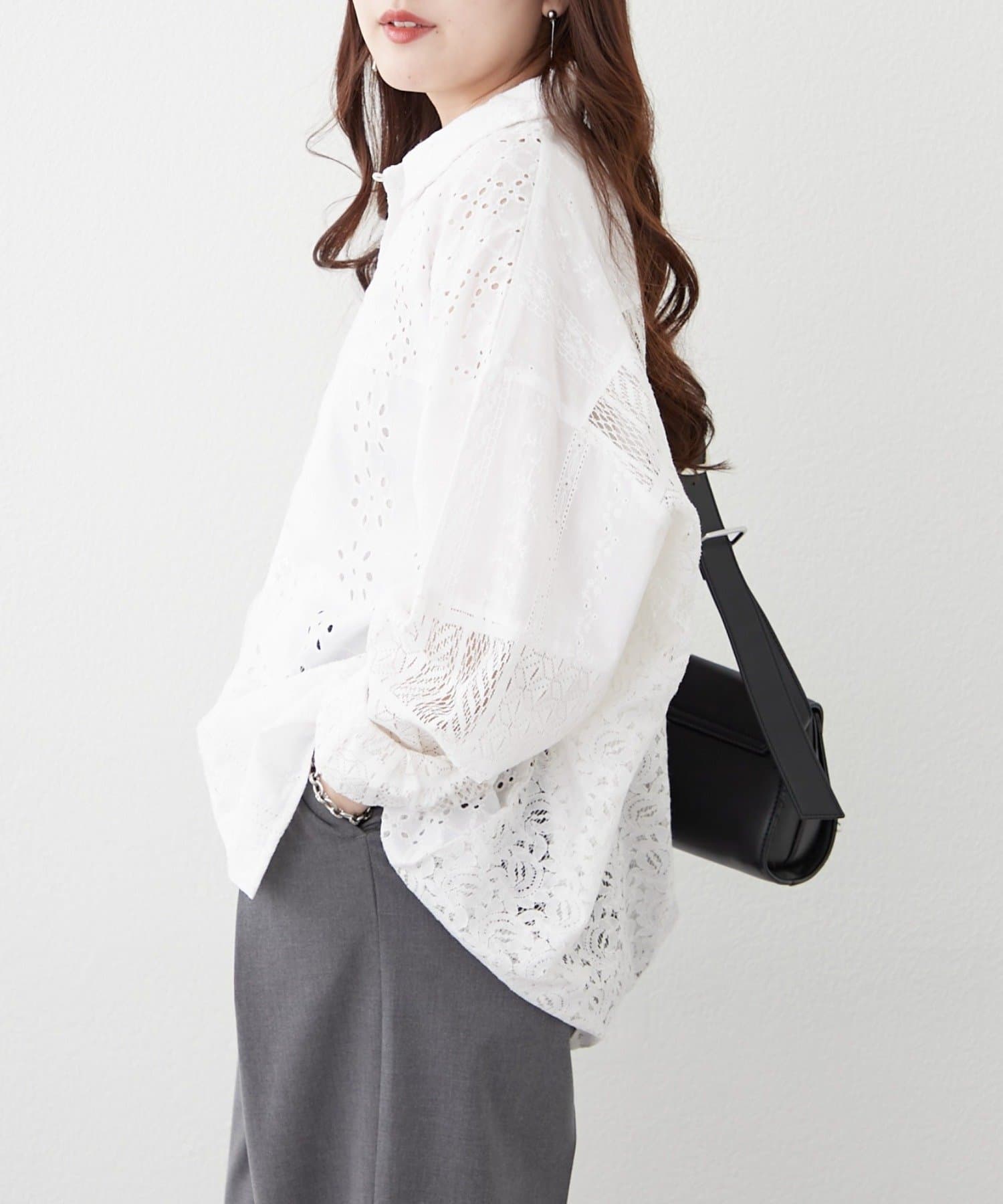・繊細なレースとカットワークを贅沢にあしらったデザインシャツ