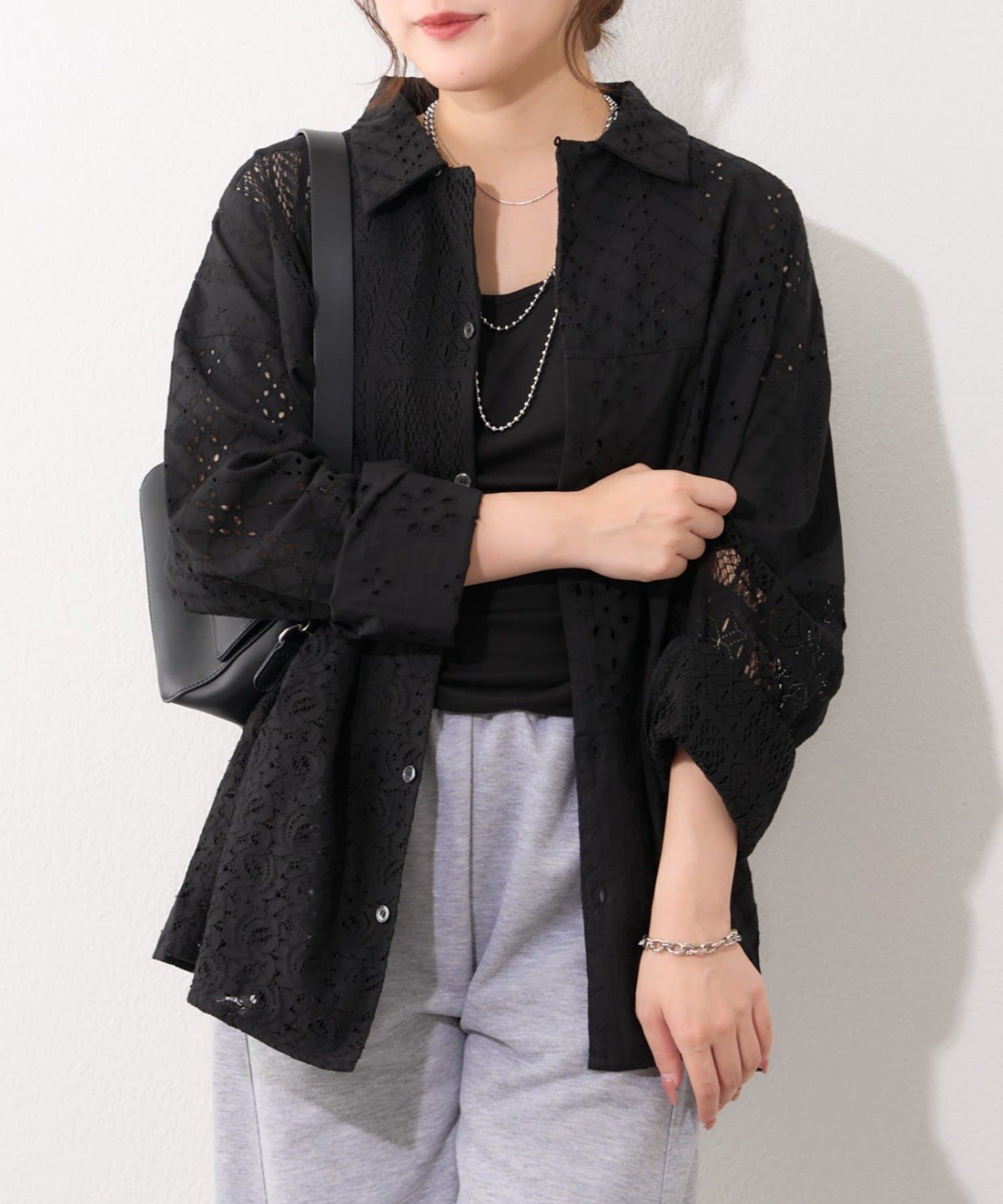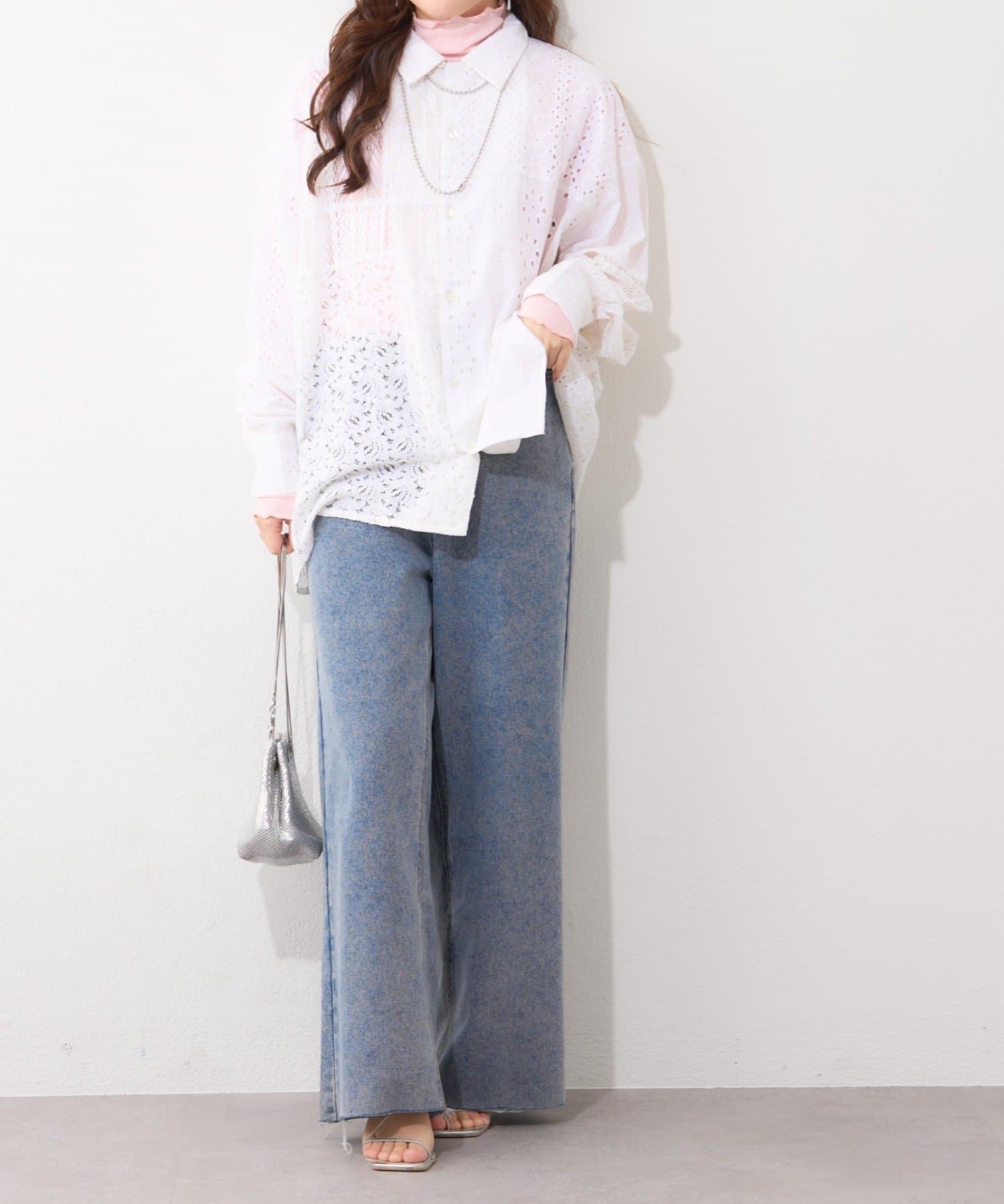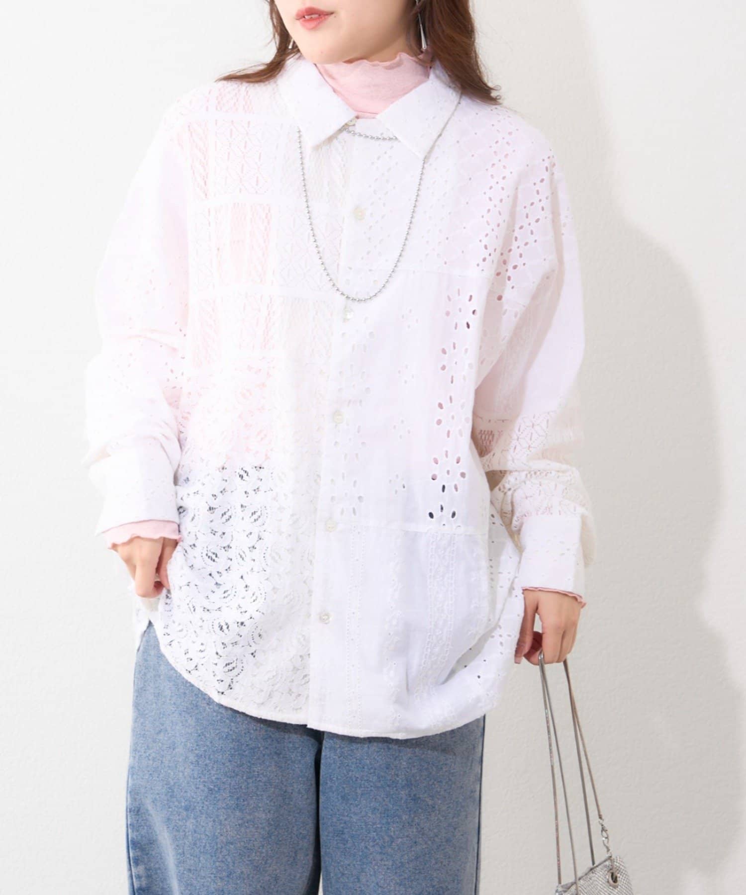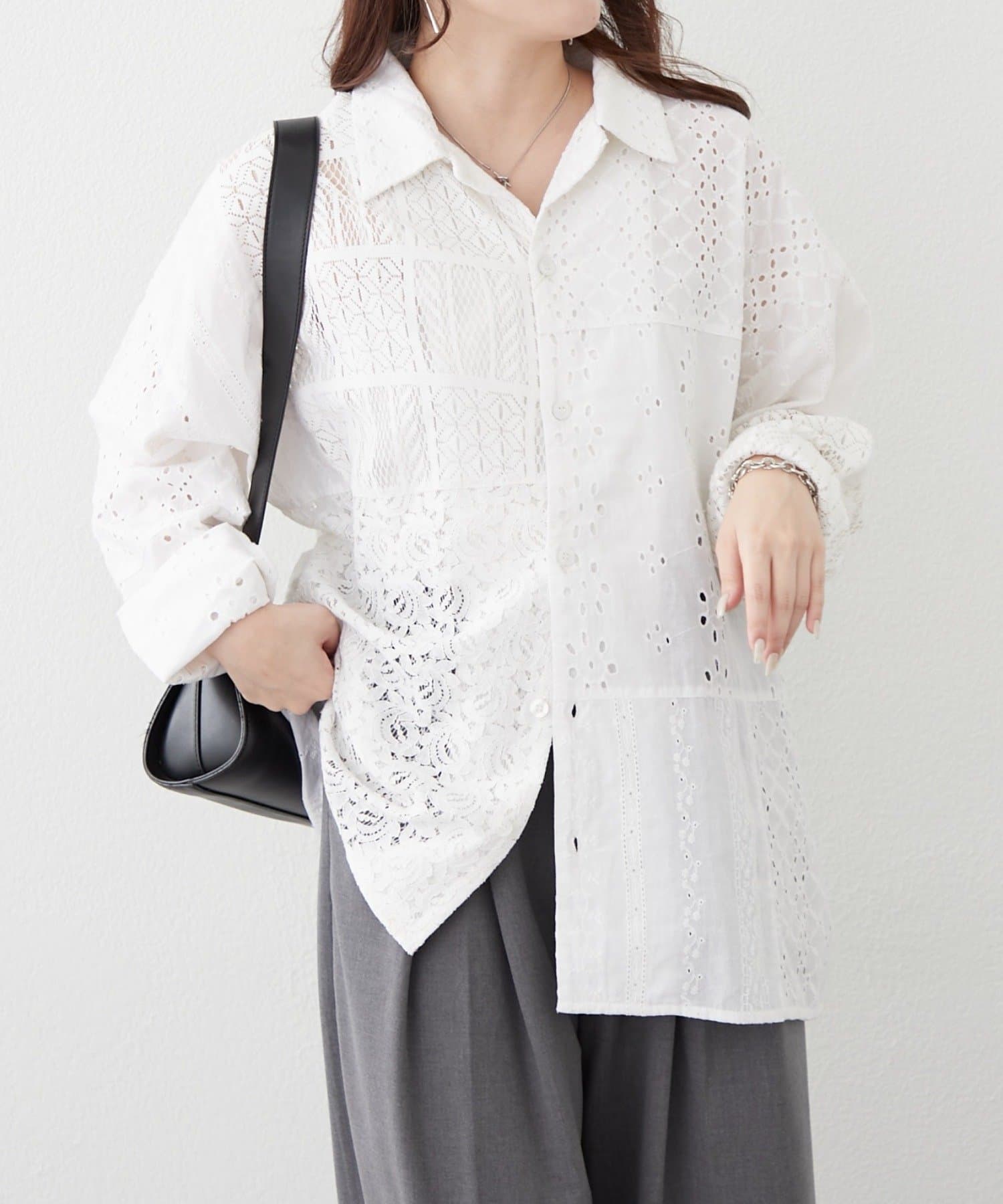 ・繊細なレースとカットワークを贅沢にあしらったデザインシャツ