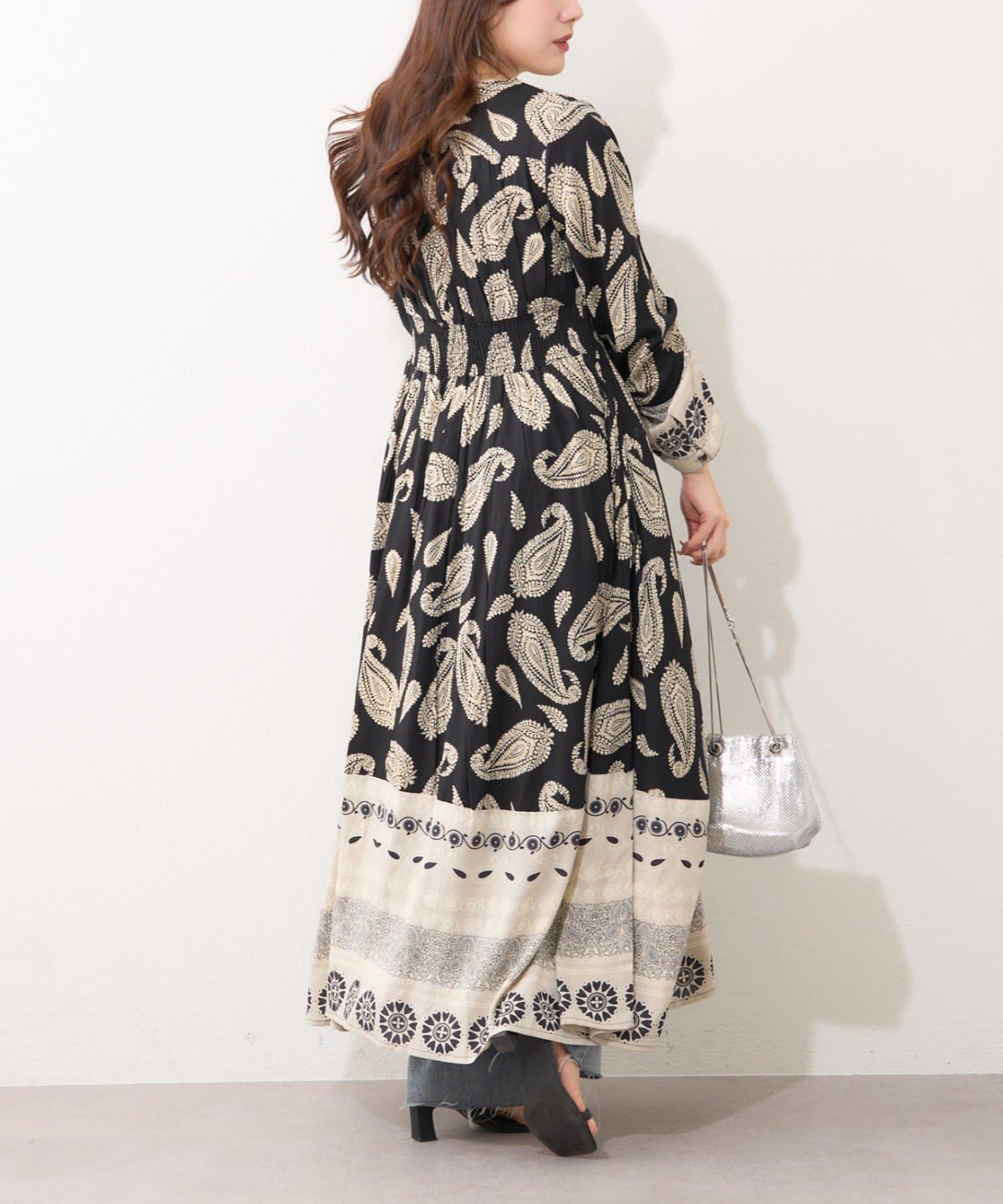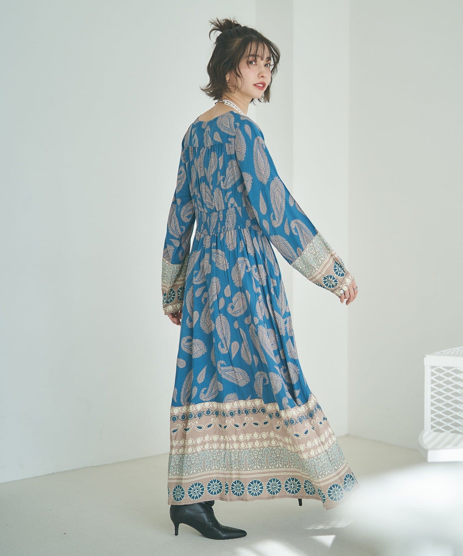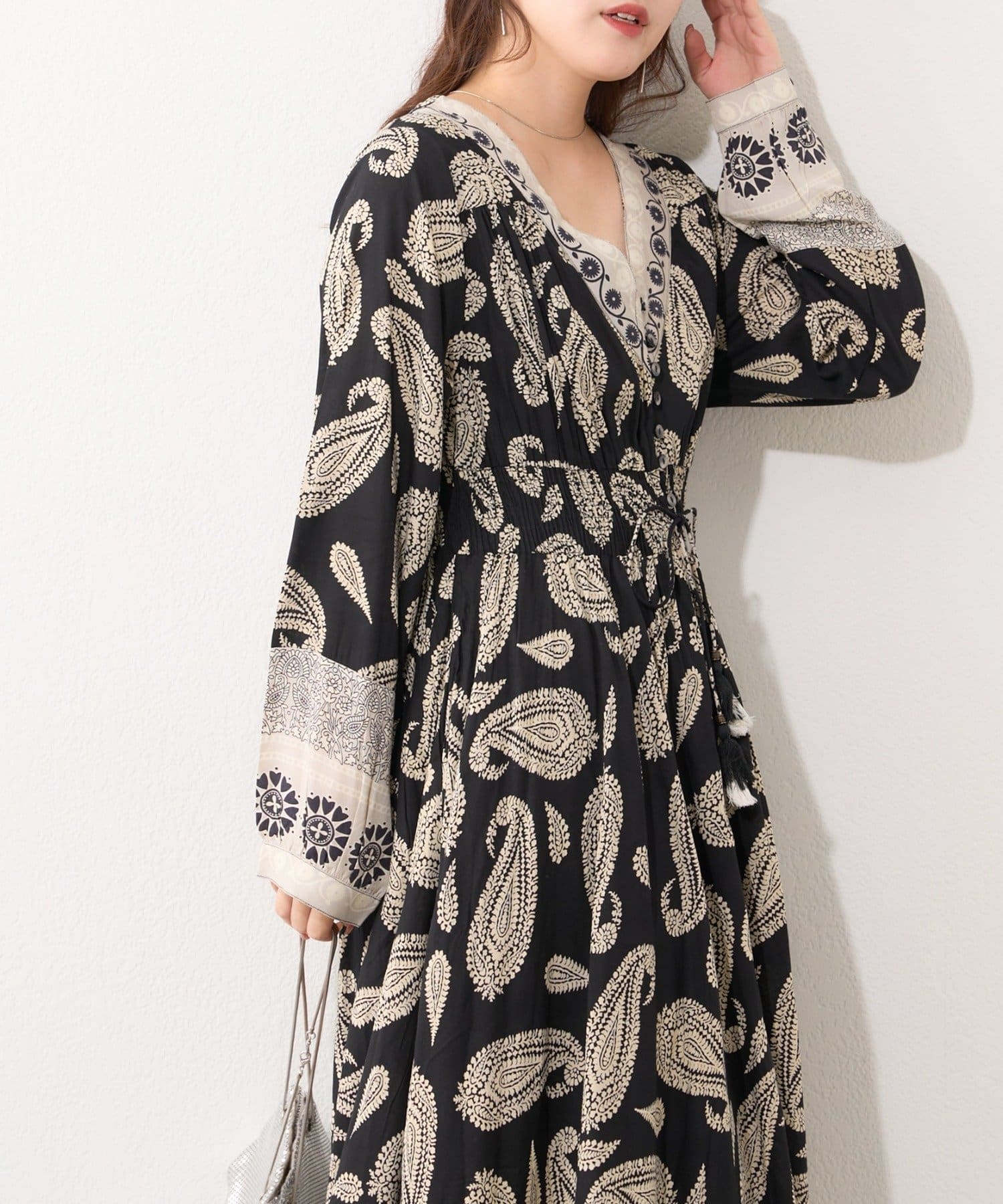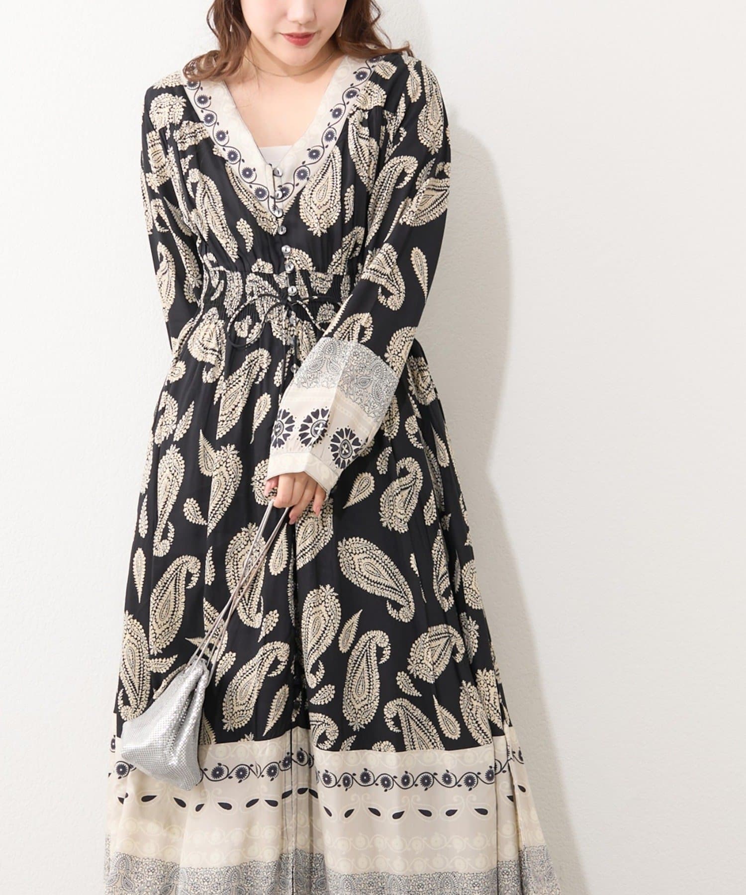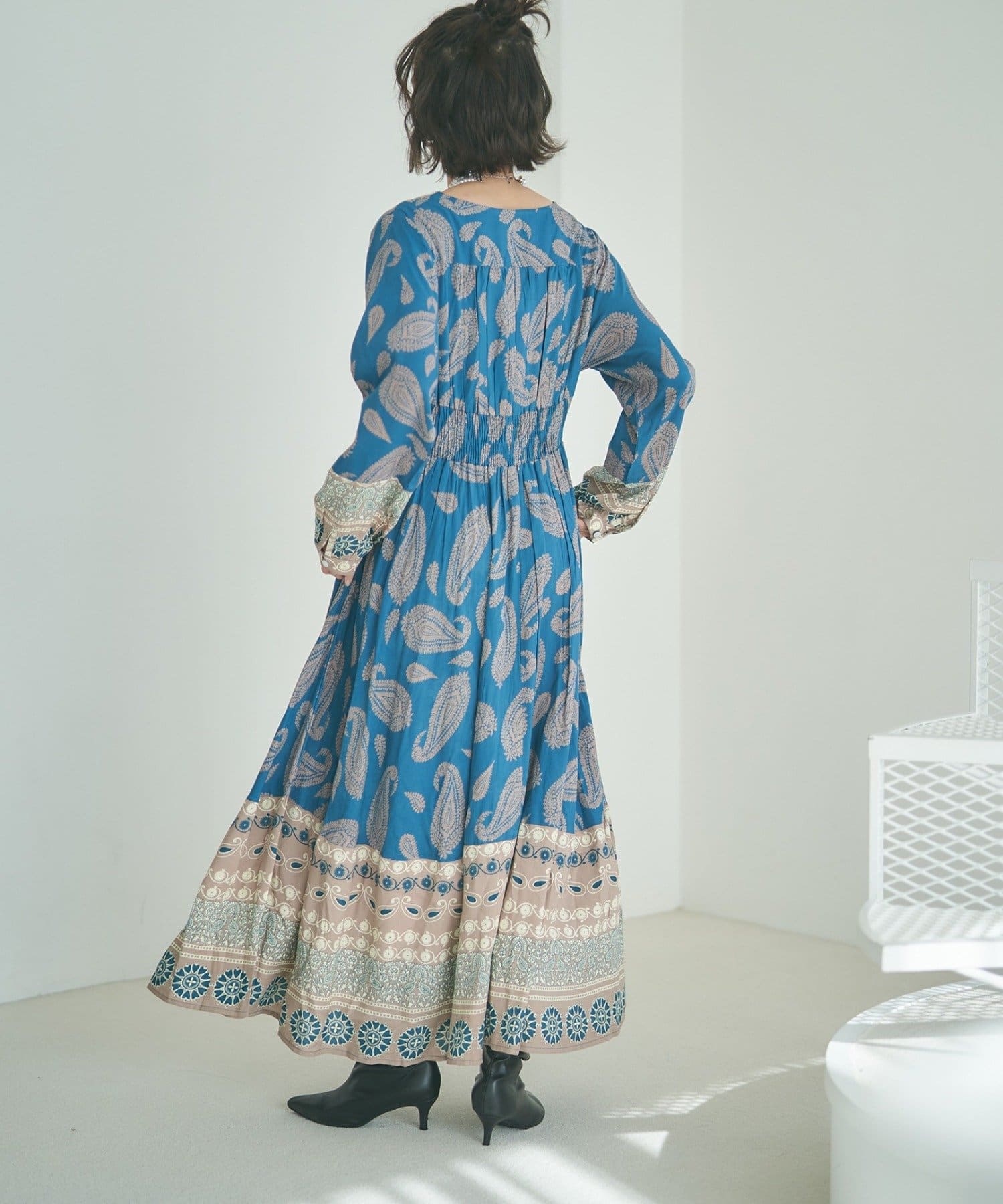 ・繊細なペイズリー柄が目を引くワンピース