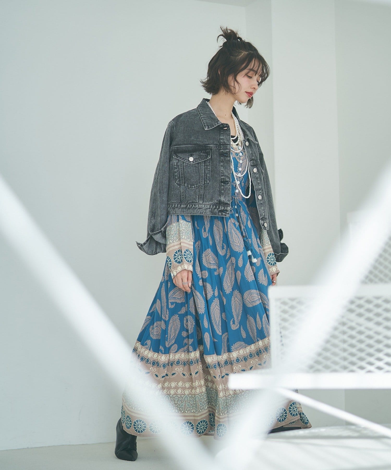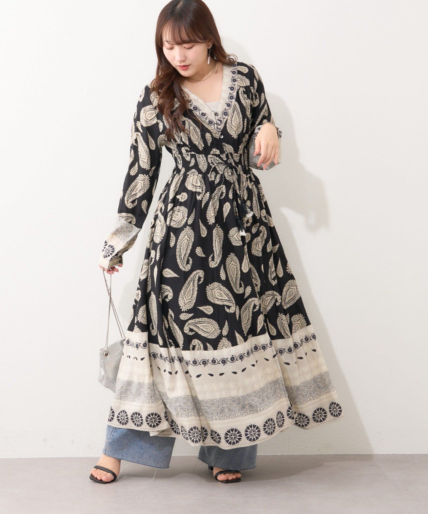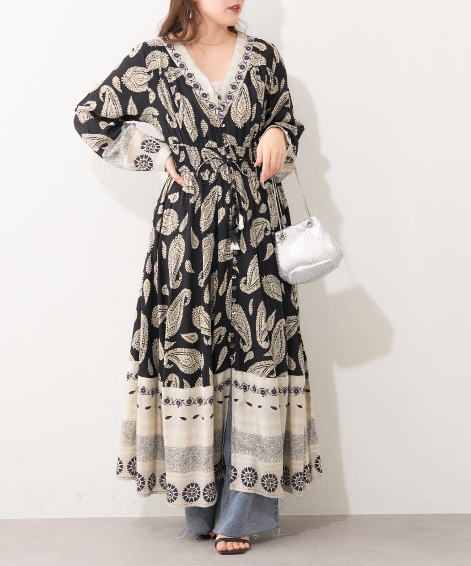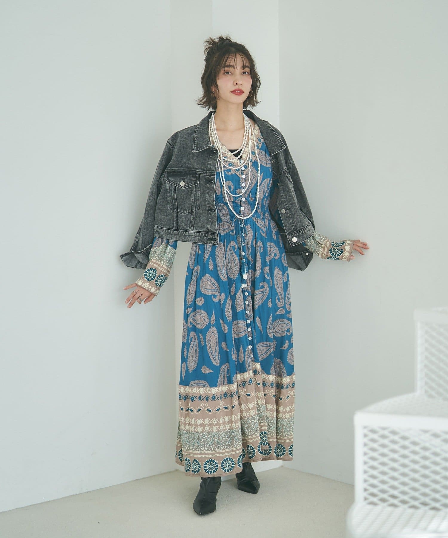 ・繊細なペイズリー柄が目を引くワンピース