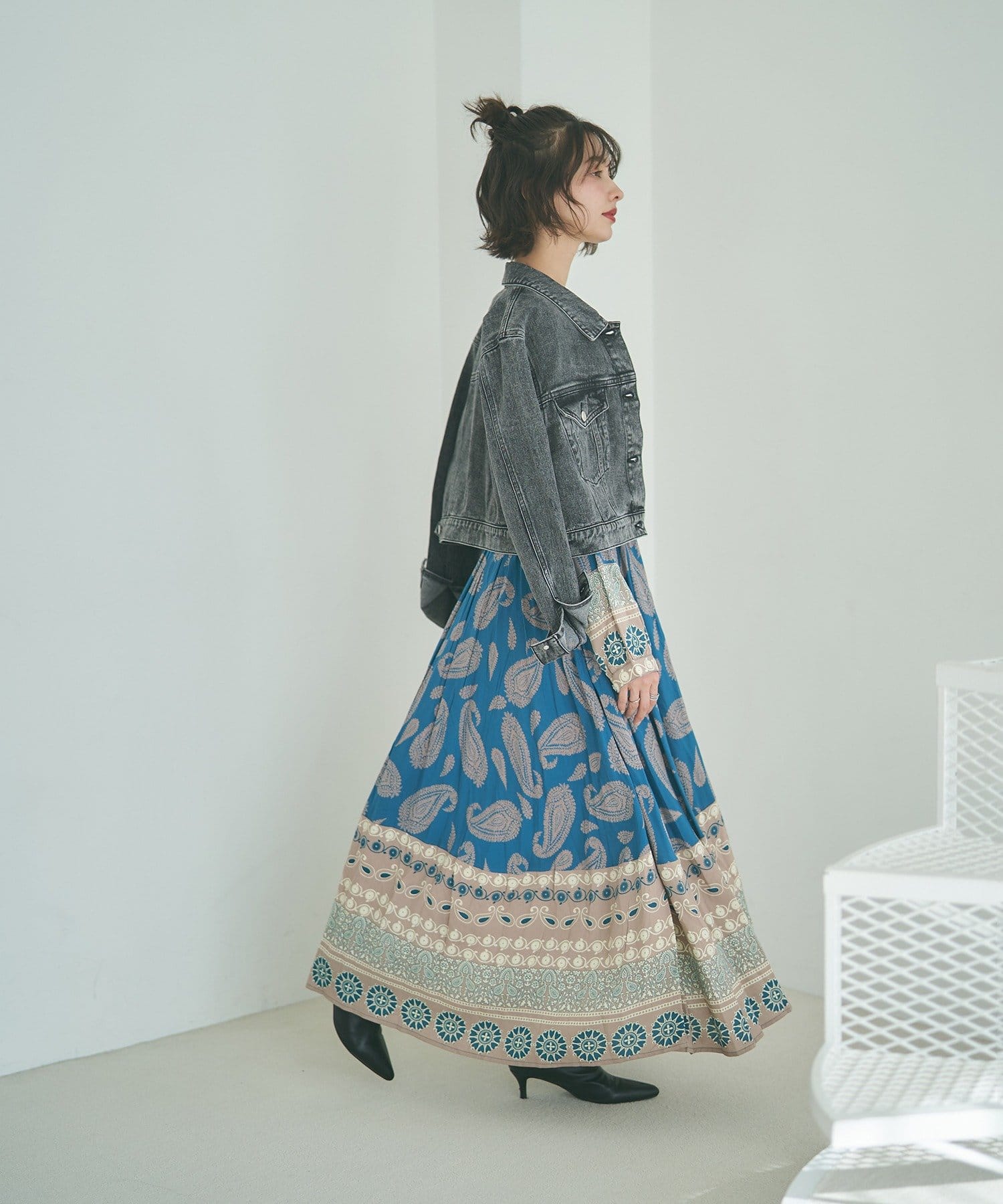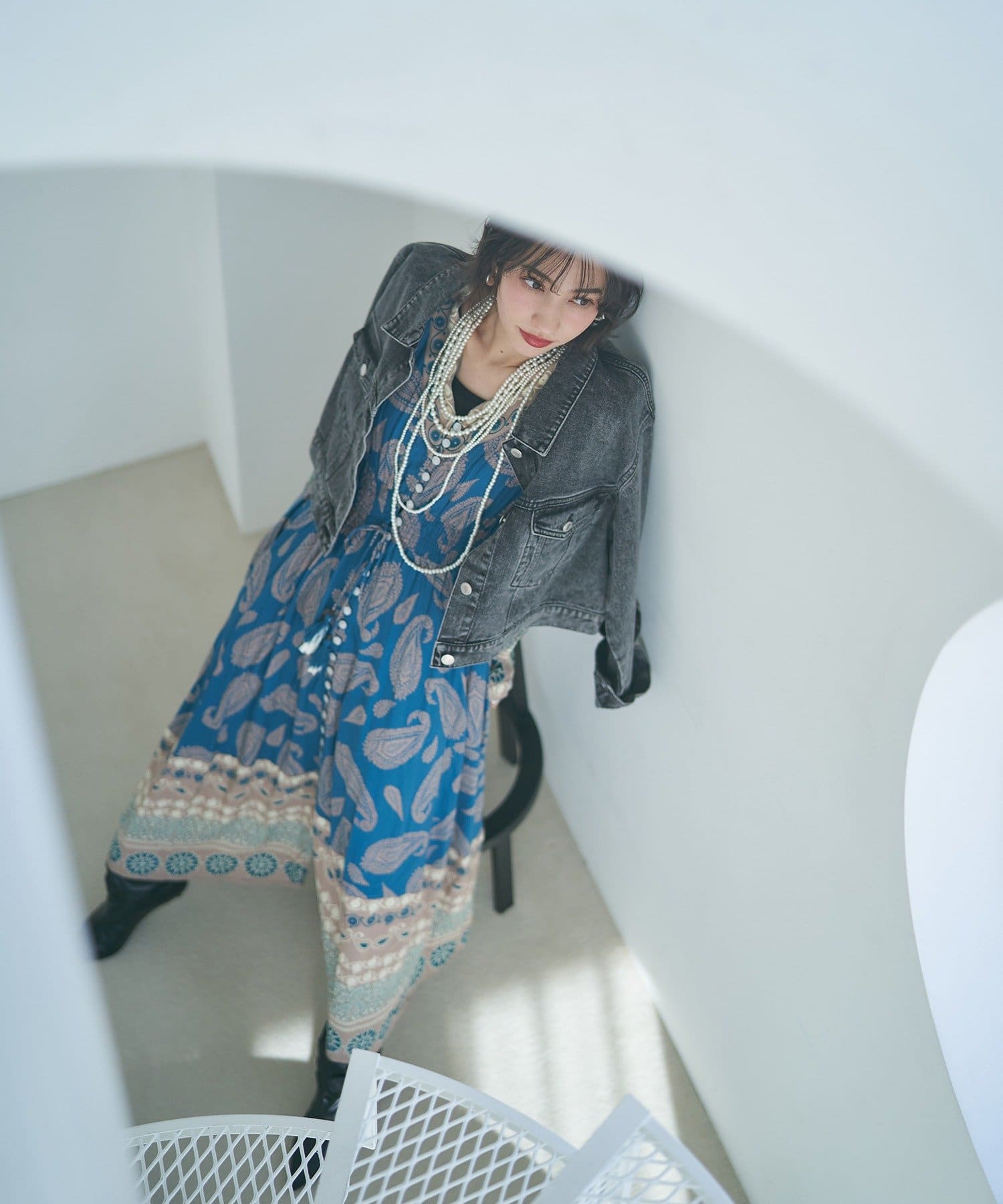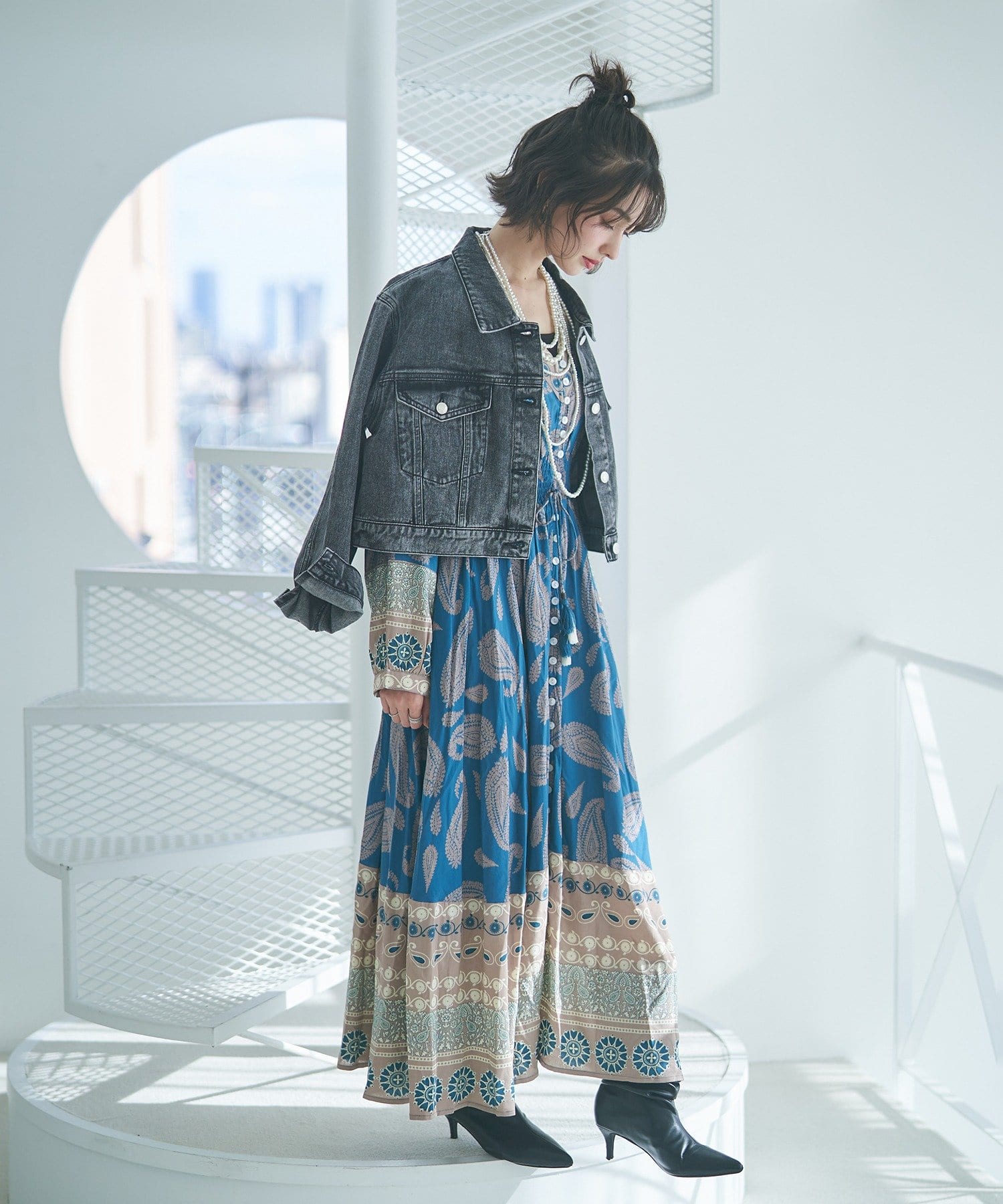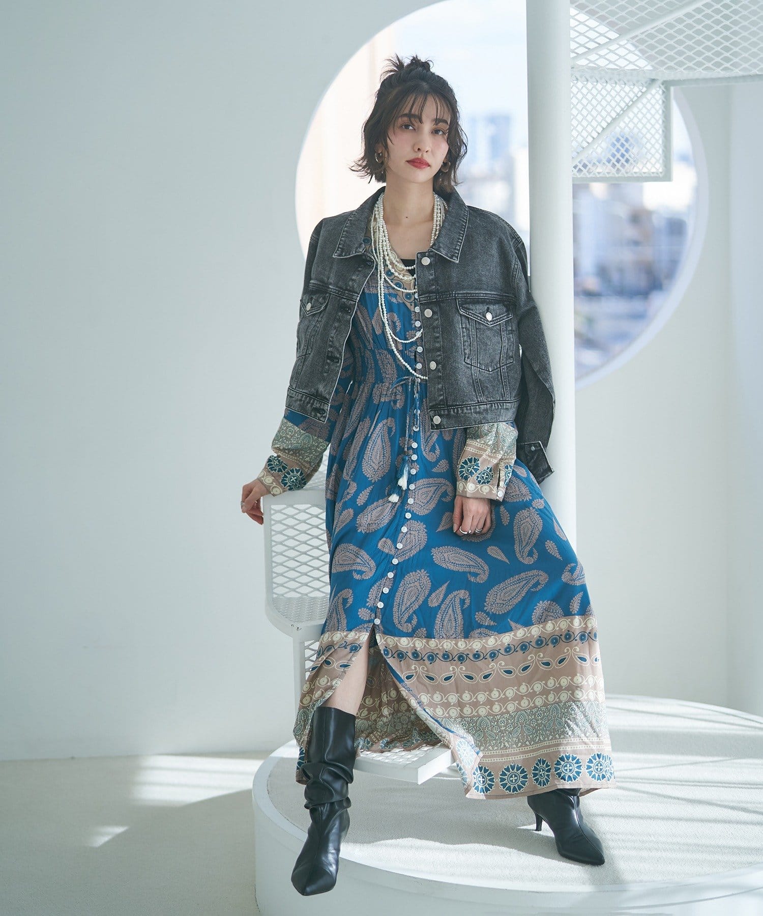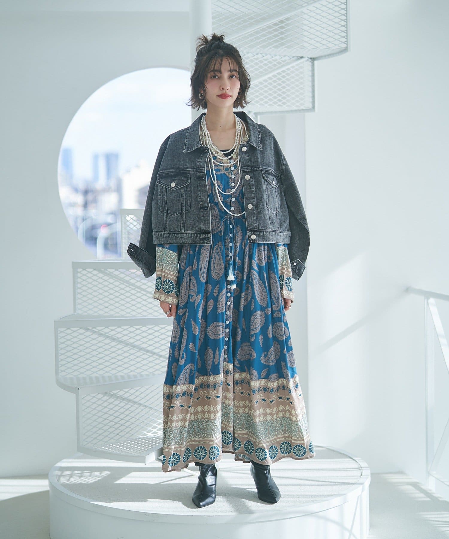 ・繊細なペイズリー柄が目を引くワンピース