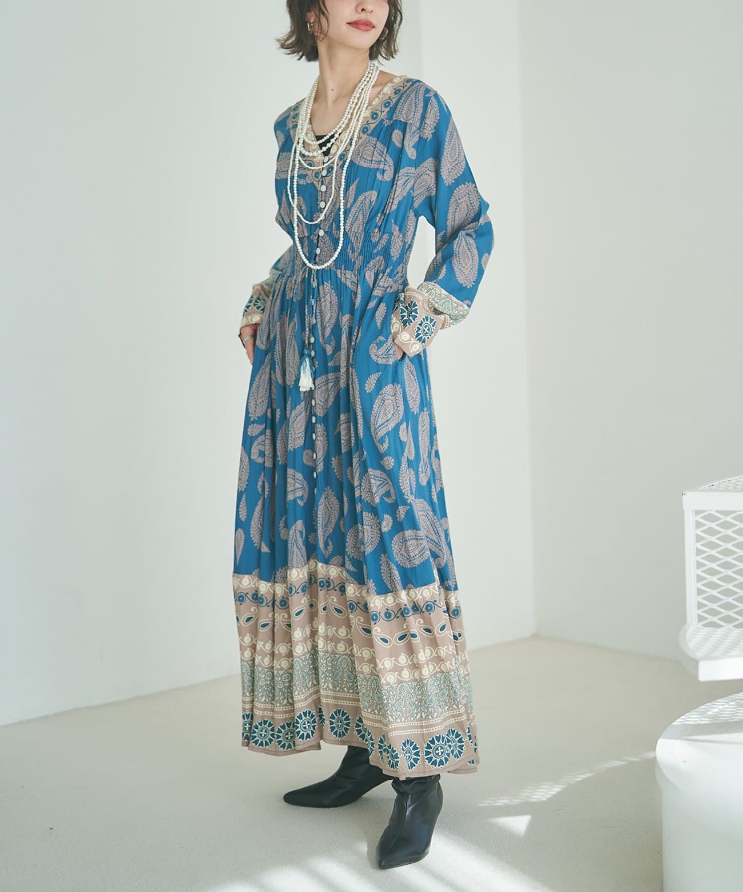 【India series】【nane/WEB限定】エスニック柄マキシワンピース