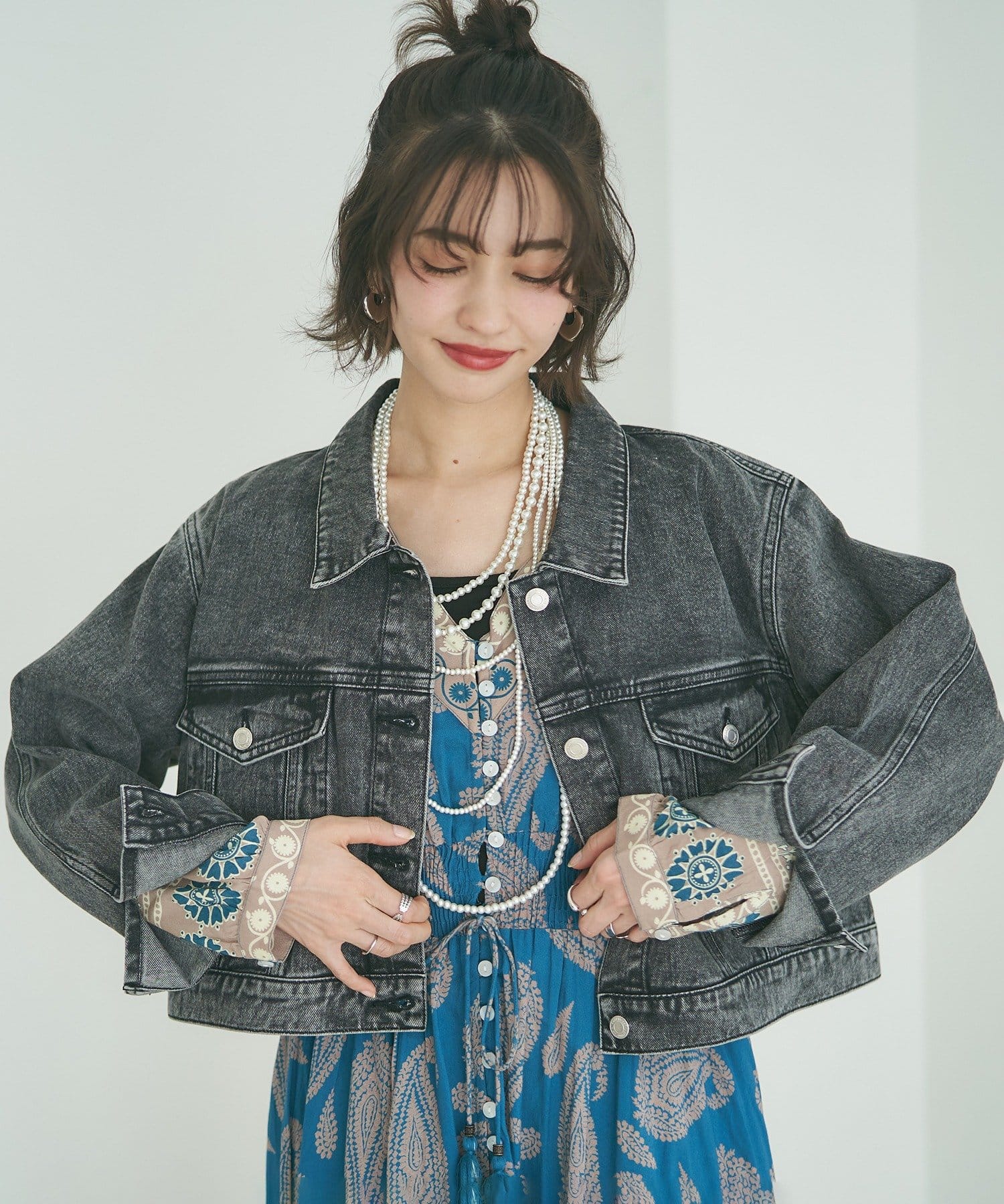 ・一枚で着るだけでなく、デニムジャケットやカーディガンを羽織ってカジュアルに着こなすのもおすすめ