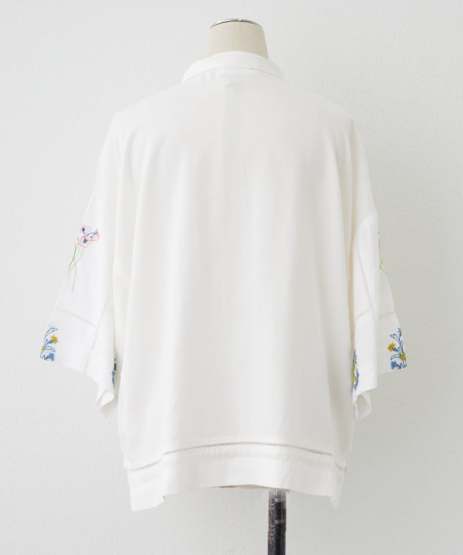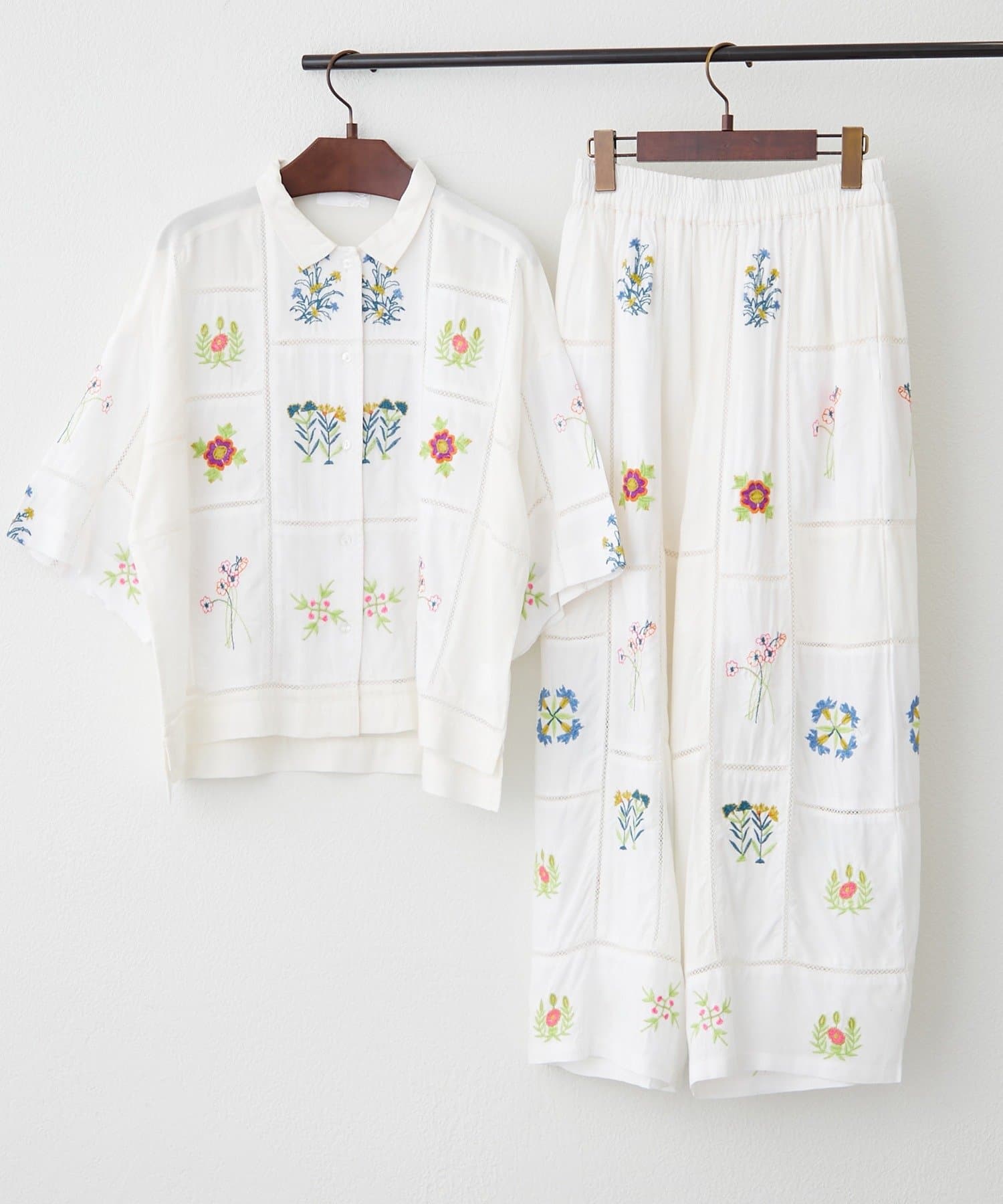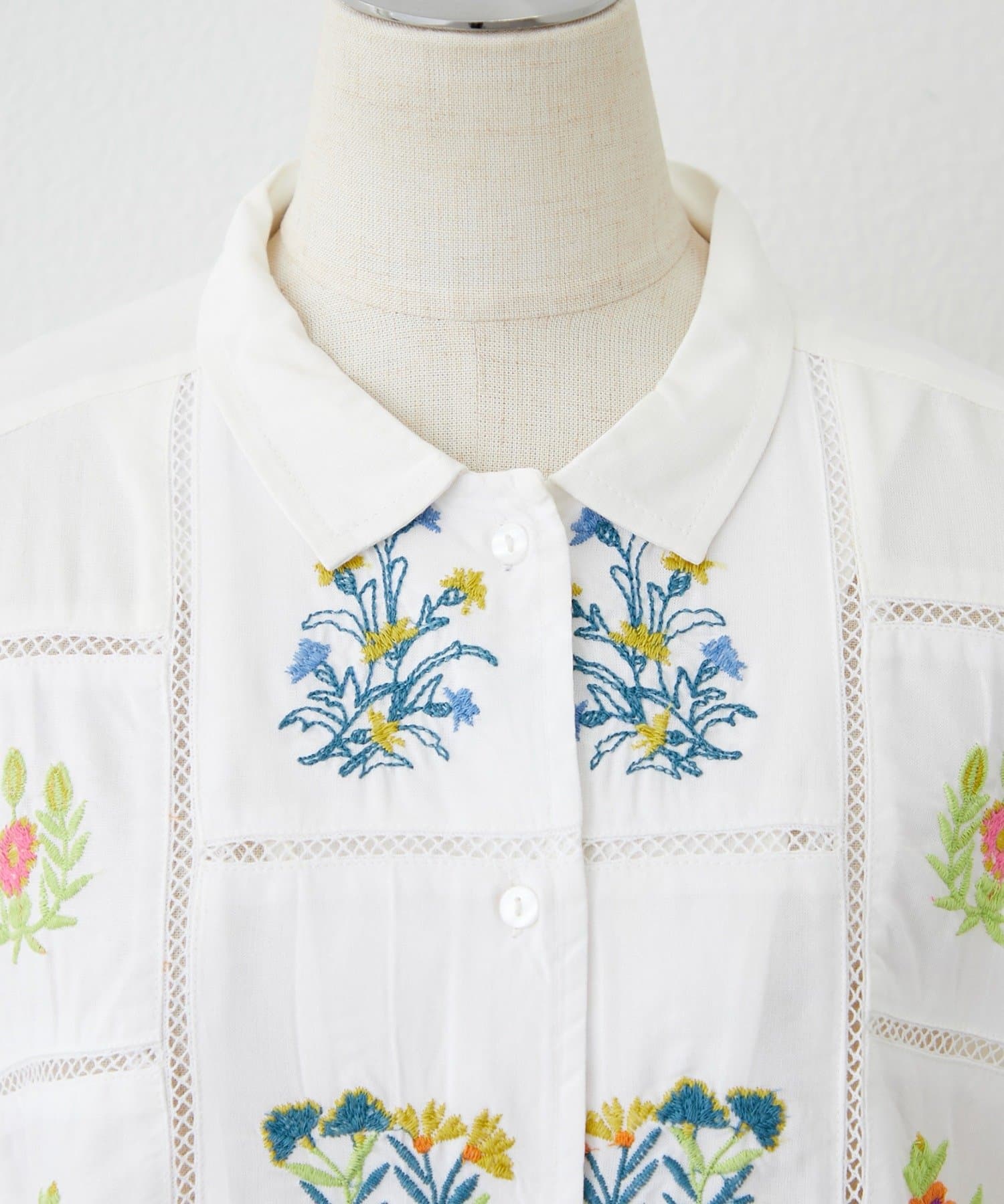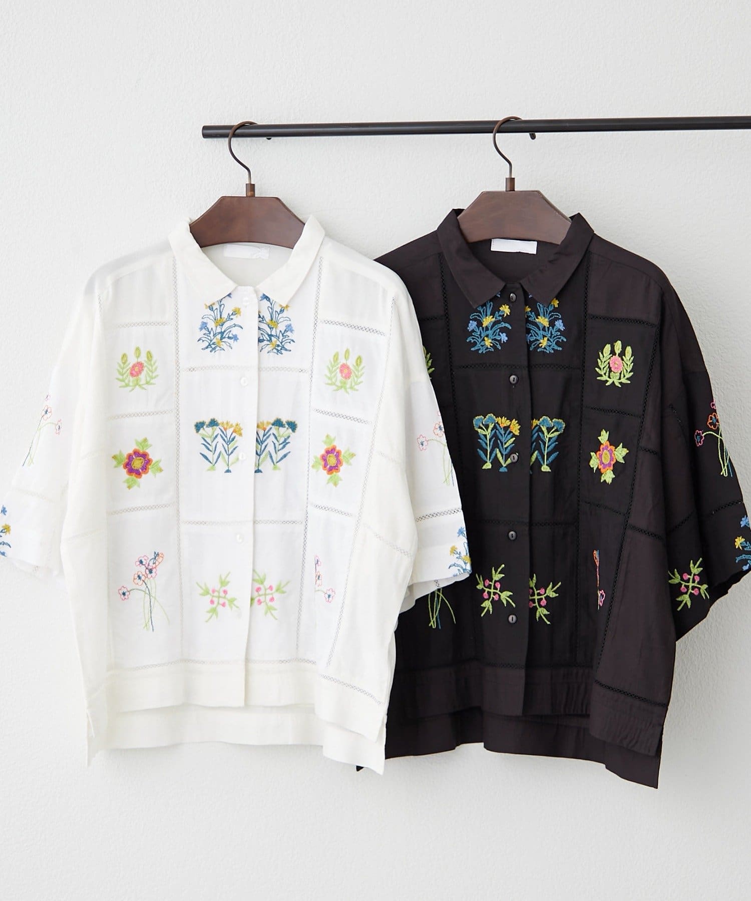 ・いろいろなお花の刺繍で華やかにしてくれる半袖ブラウス