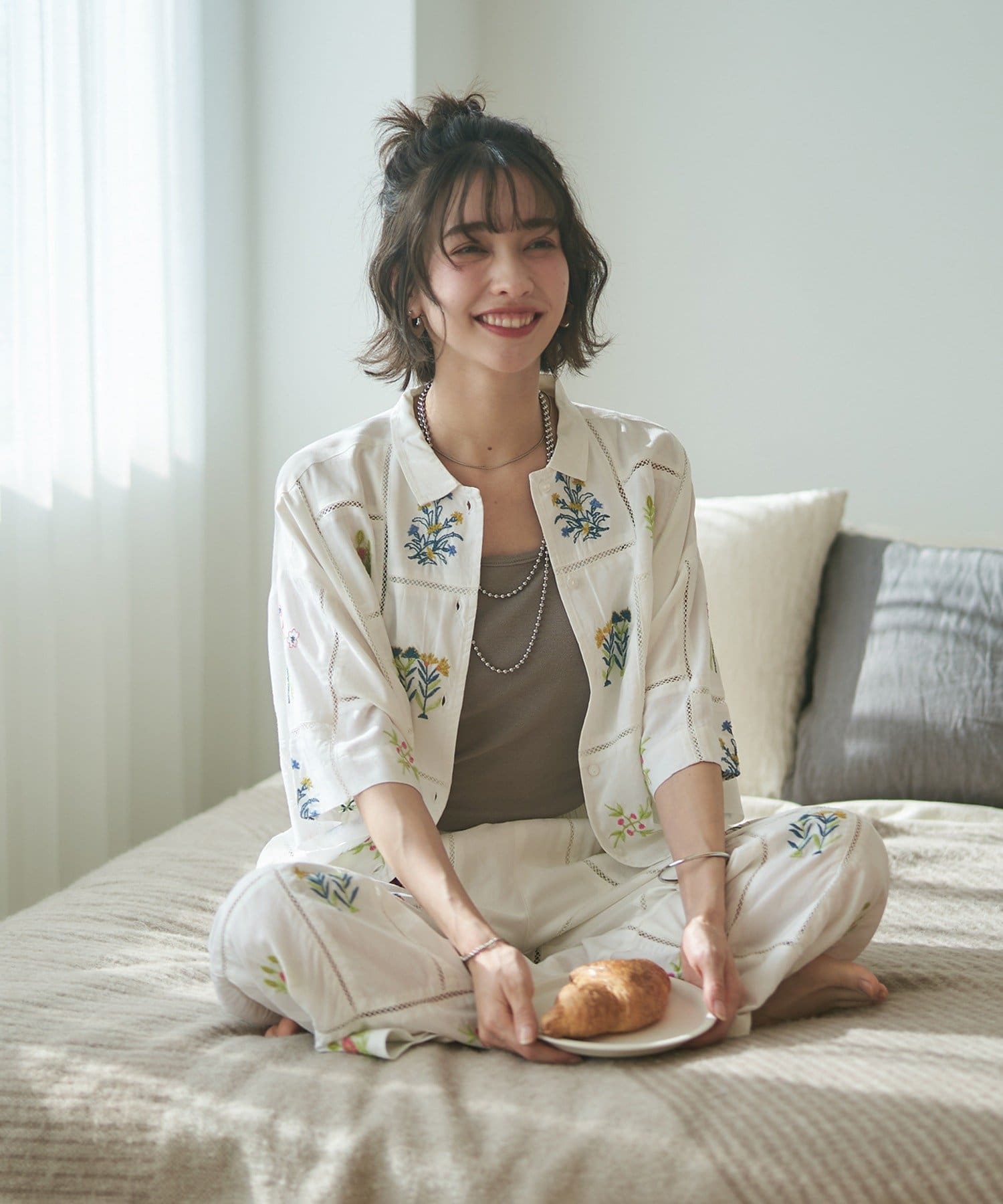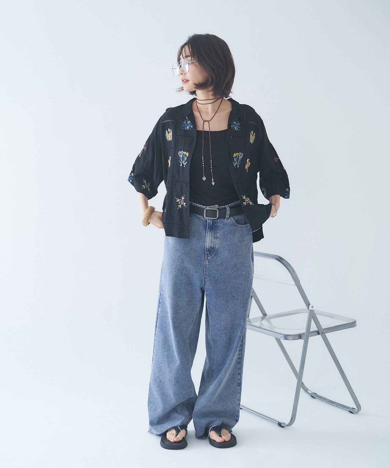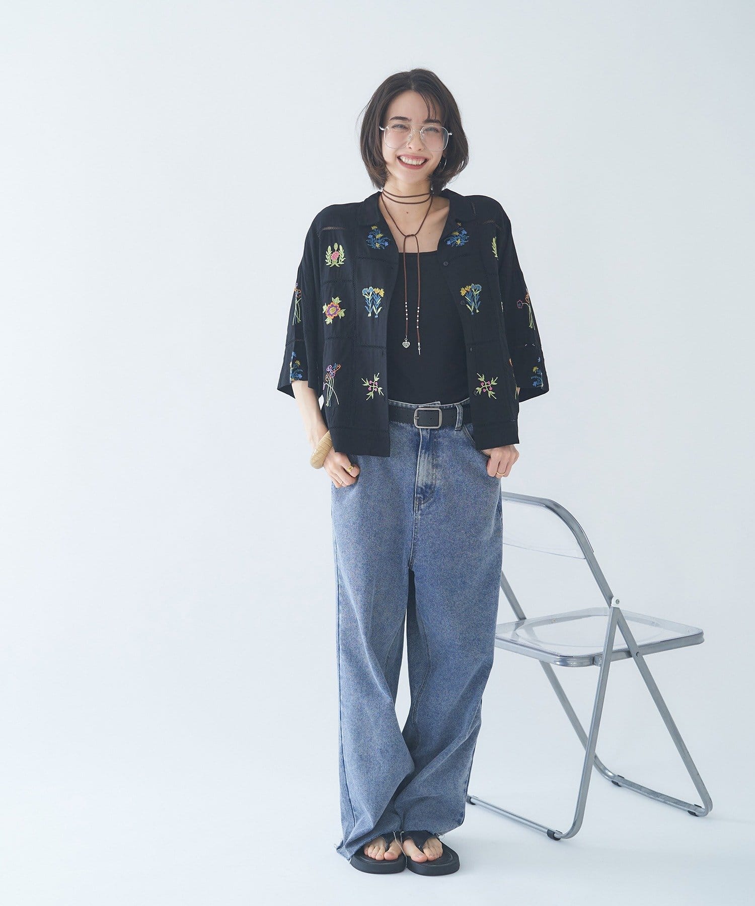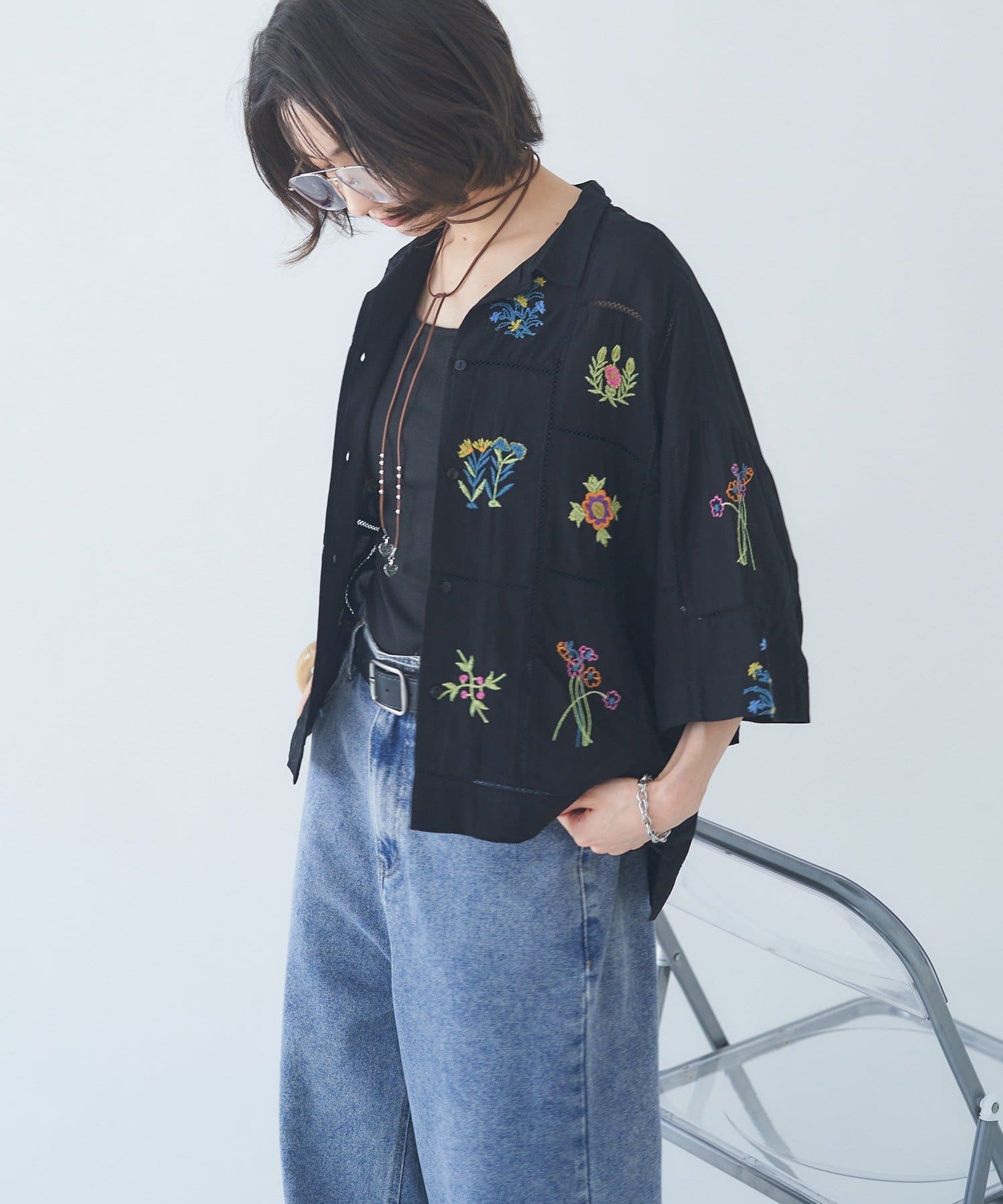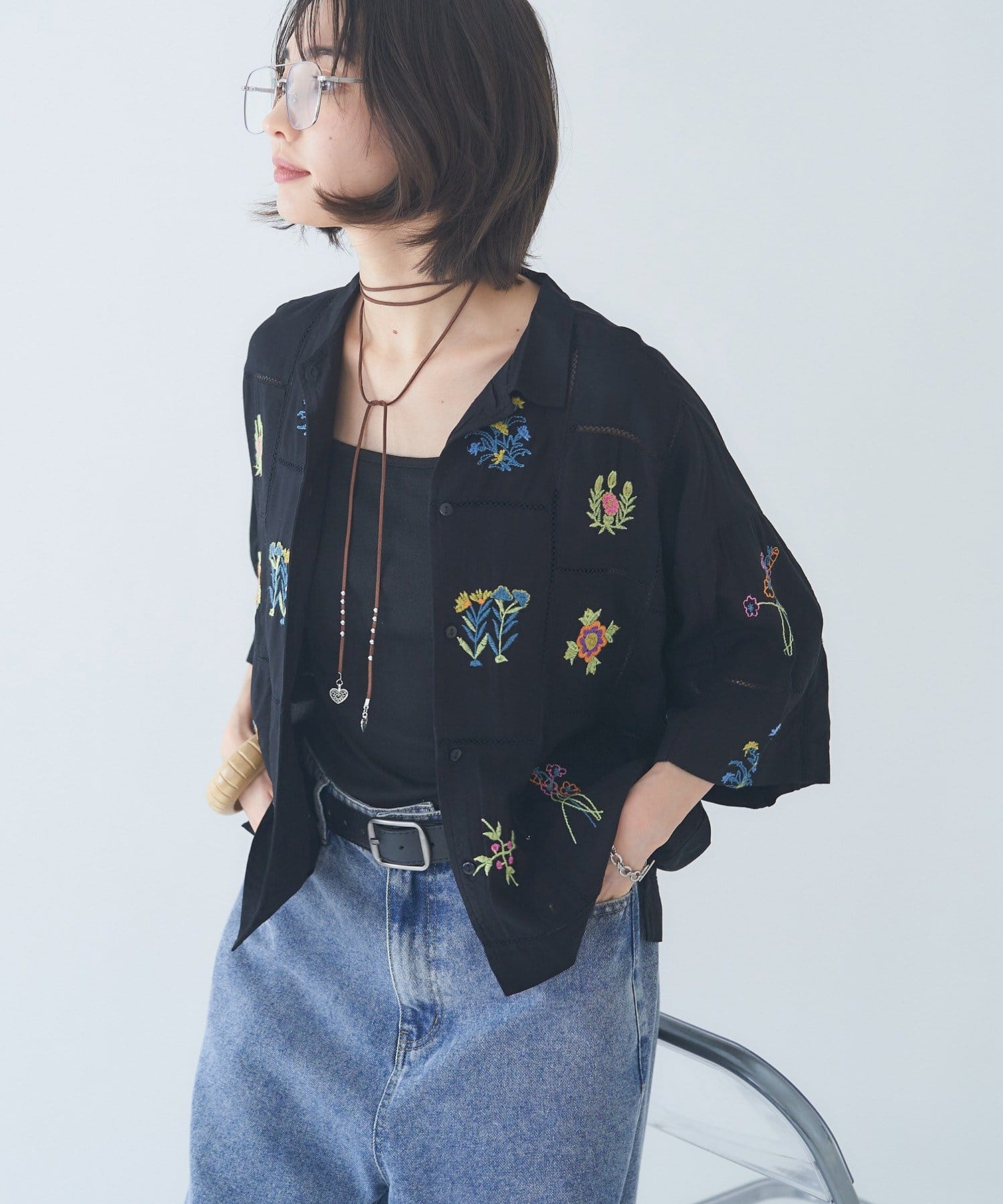 ・いろいろなお花の刺繍で華やかにしてくれる半袖ブラウス
