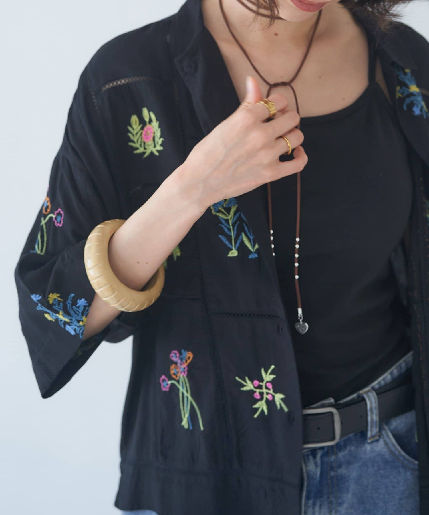 【nane】【India series】パッチワーク刺繍シャツブラウス
