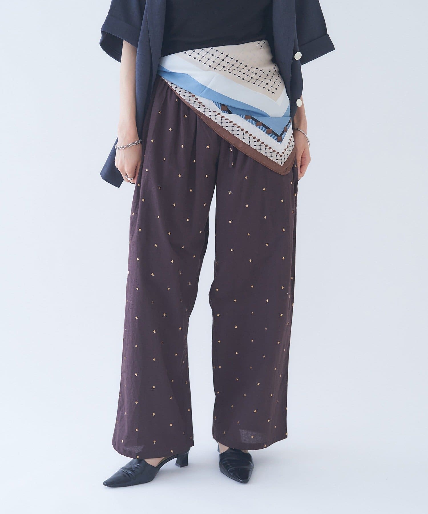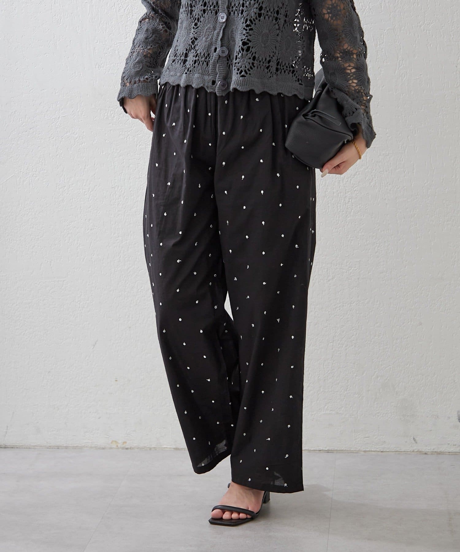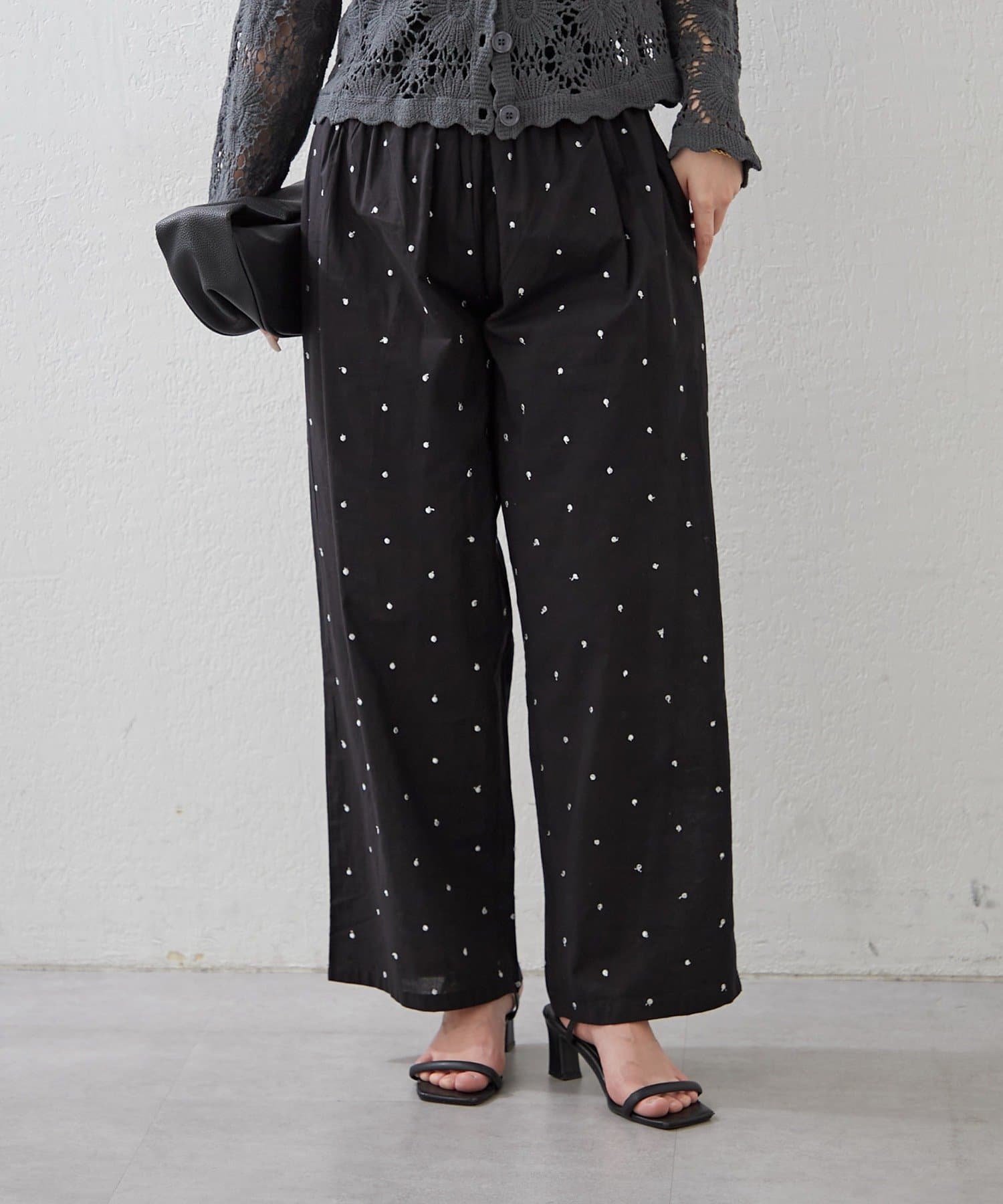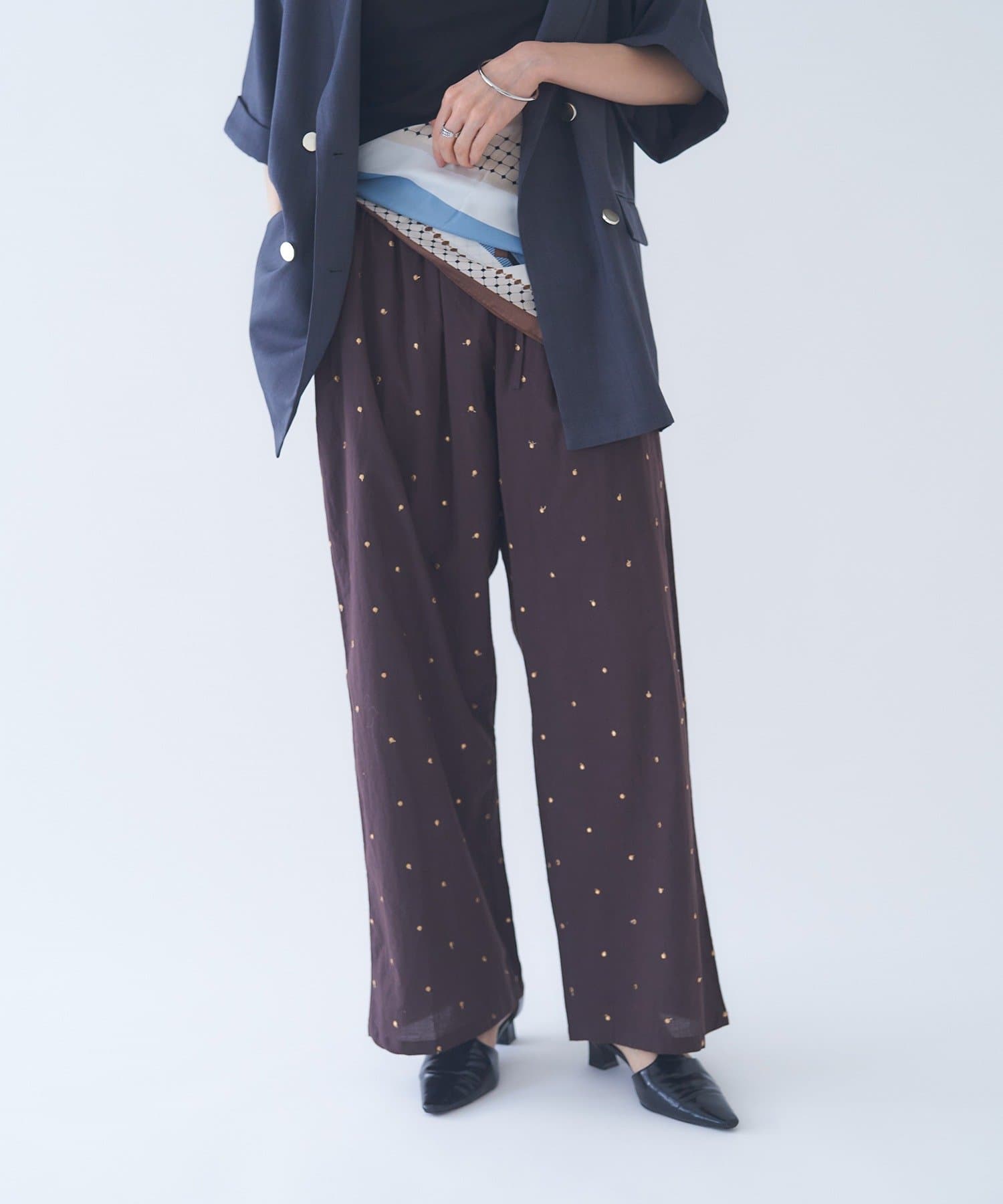 【nane】ドット柄刺繍パンツ