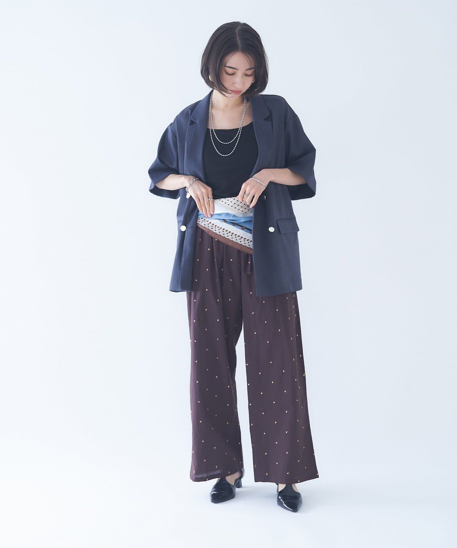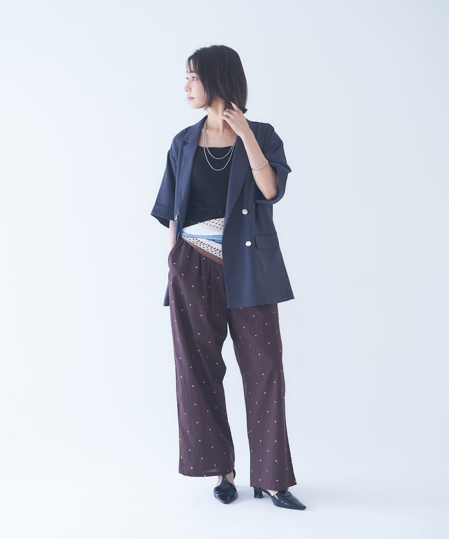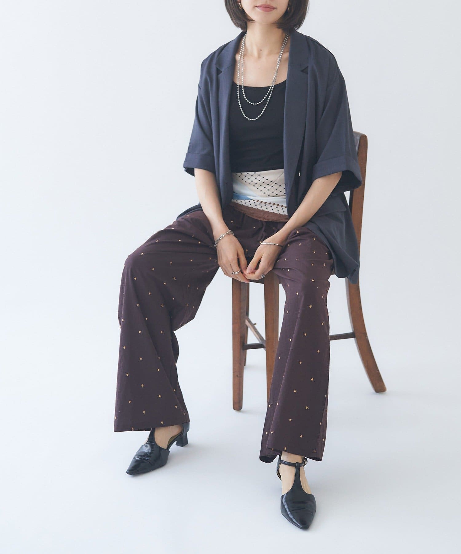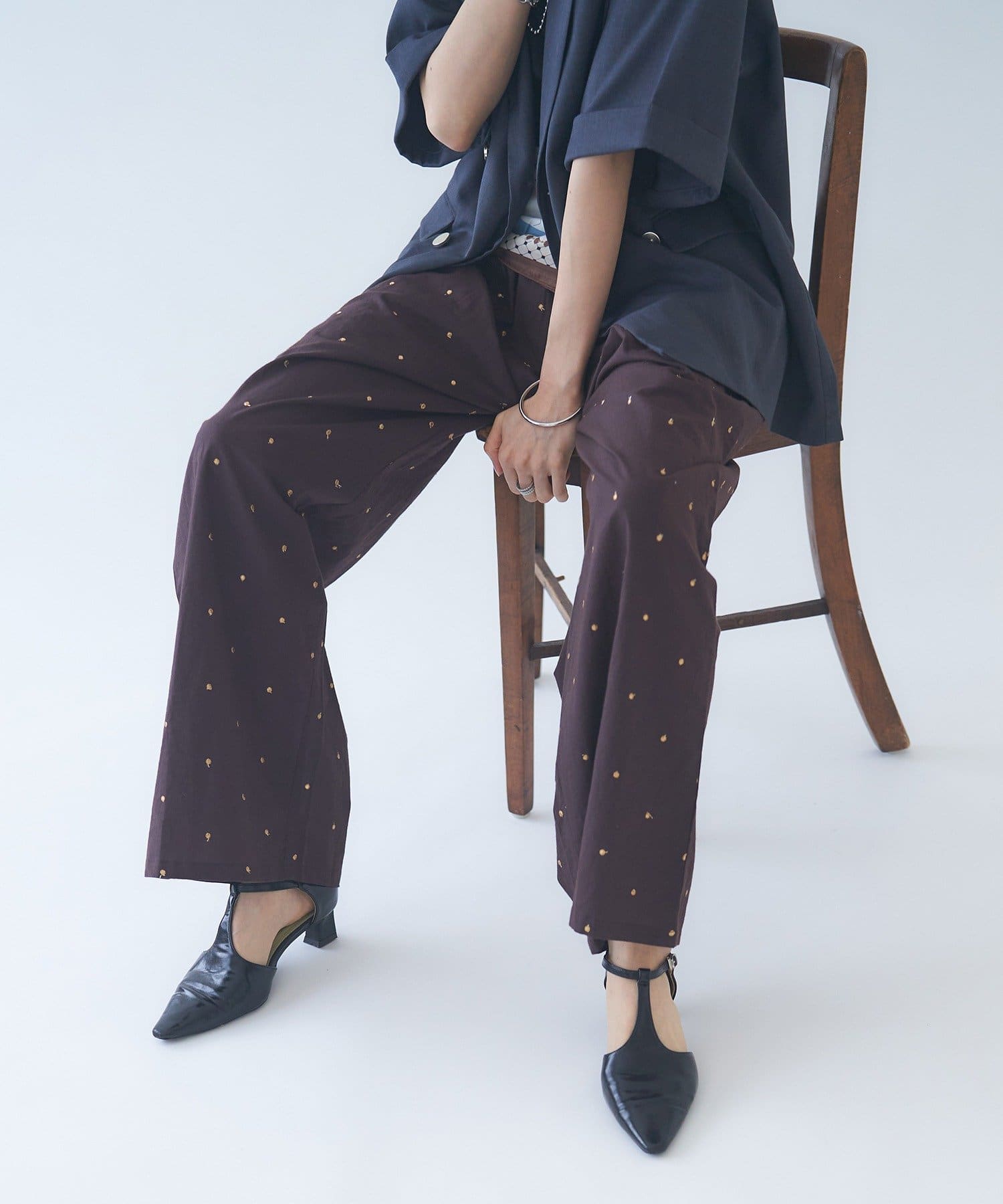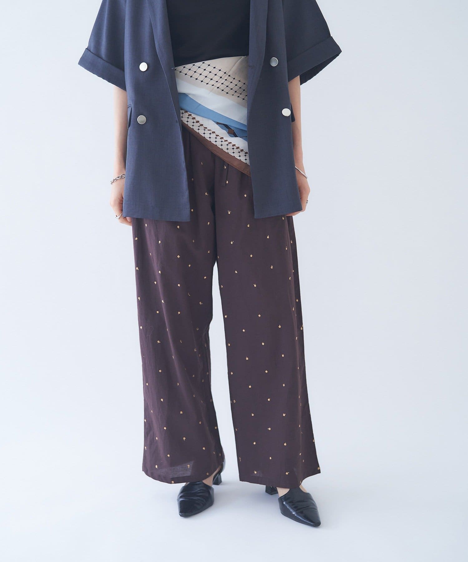 【nane】ドット柄刺繍パンツ