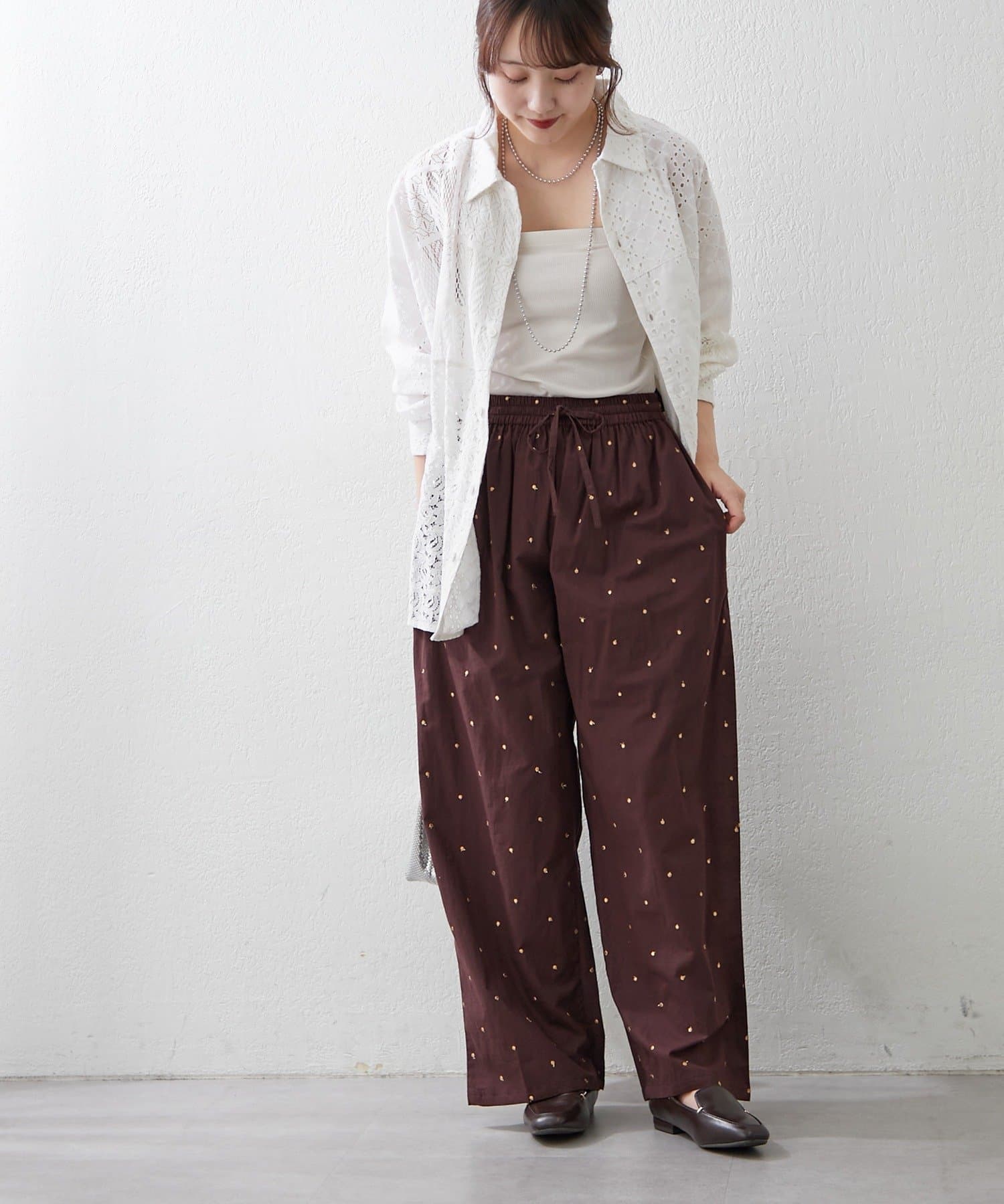 TOP > Remind me and forever > レディース > パンツ > その他パンツ > 【nane】ドット柄刺繍パンツ