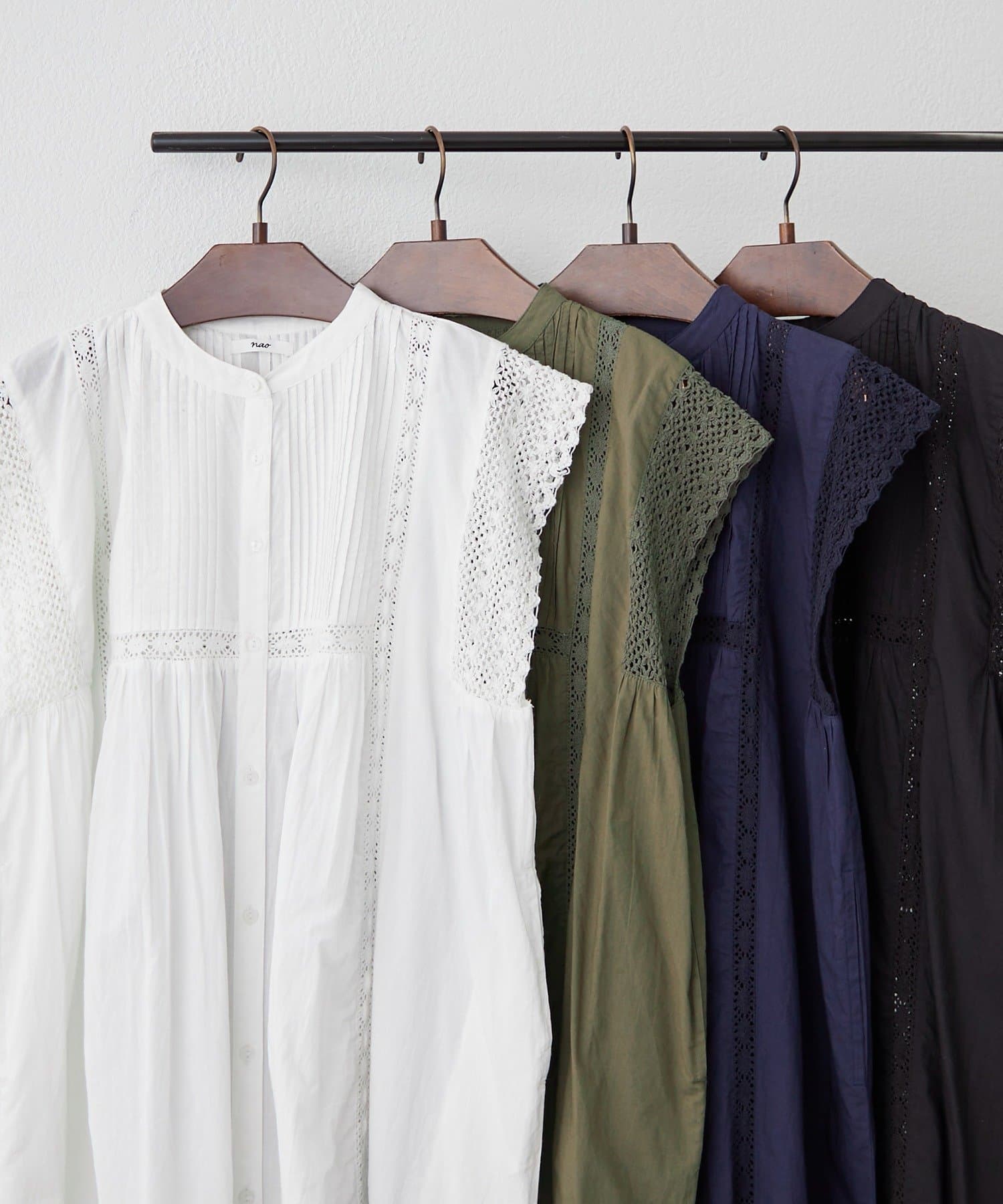 【NAO】【India Series】ピンタック袖レース前釦ワンピース