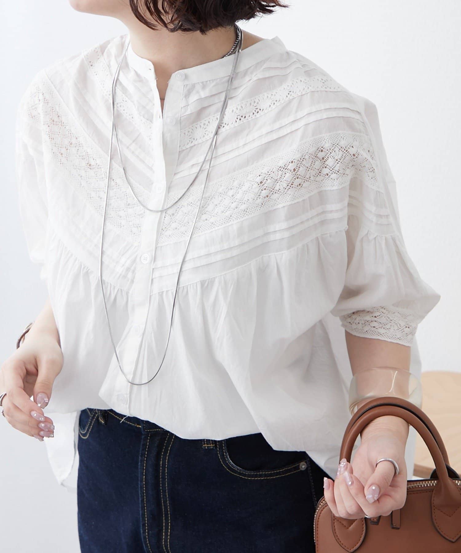 【NAO】【India Series】ピンタックレース前釦ブラウス