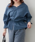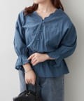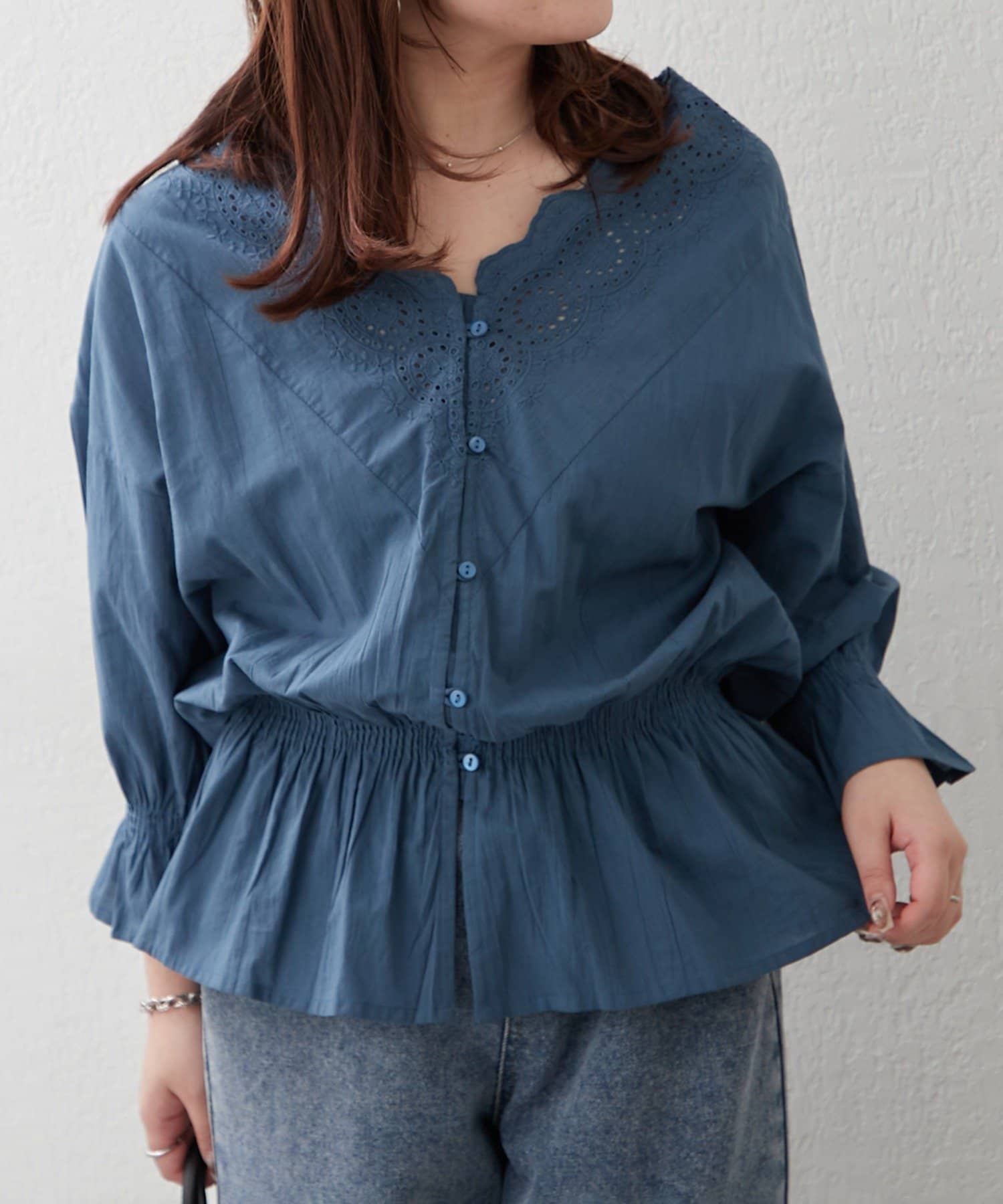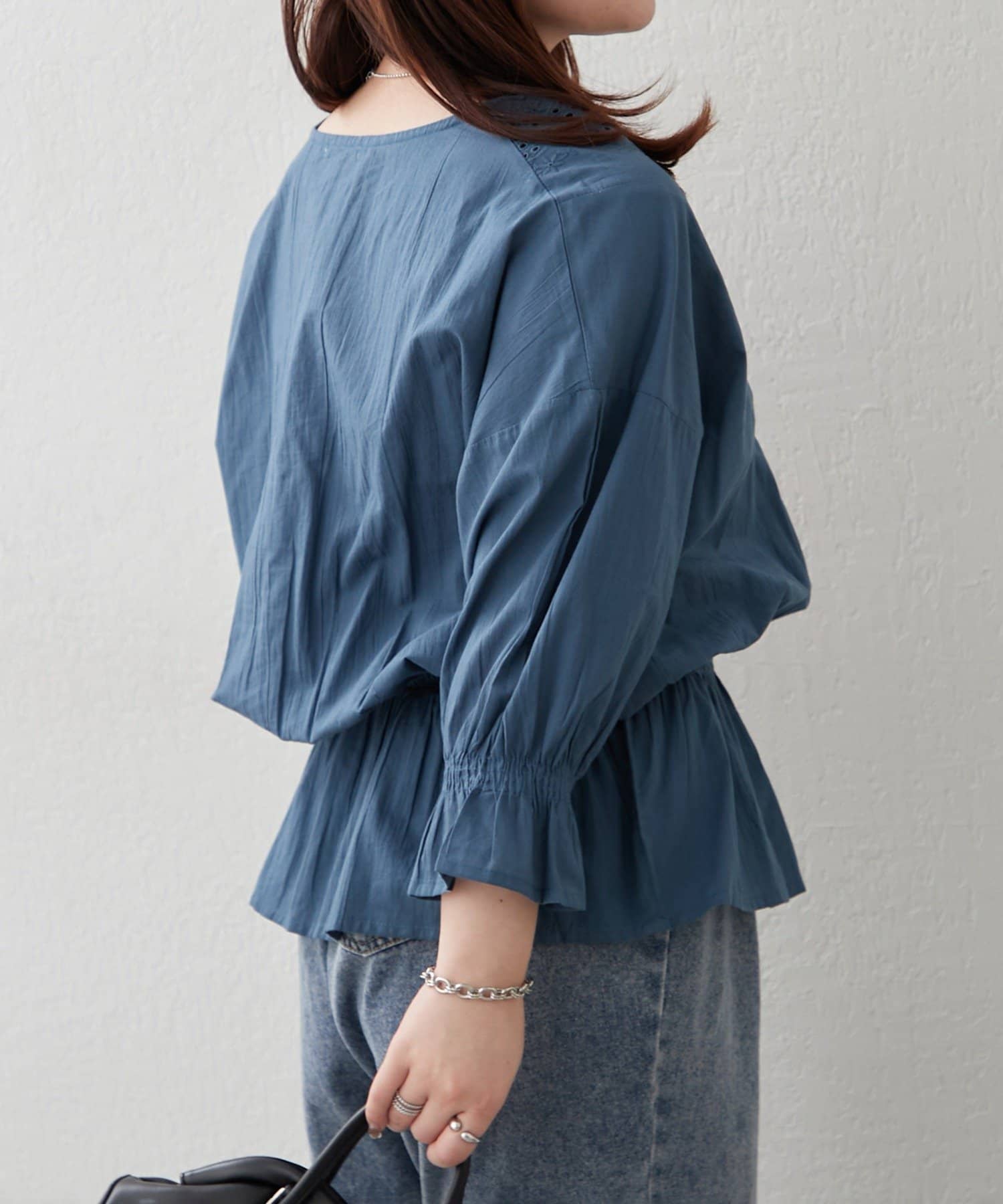【NAO】【自然とスタイルアップ】シャーリングスカラップレースブラウス
