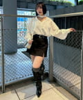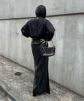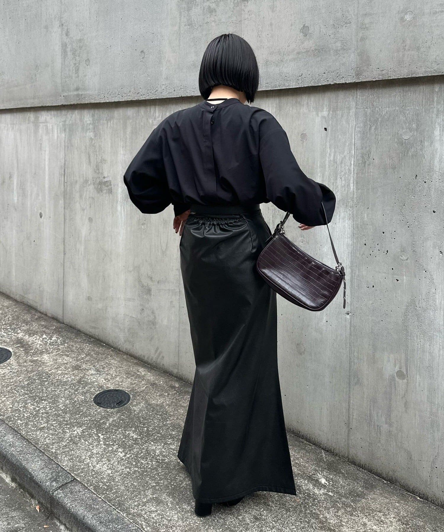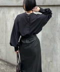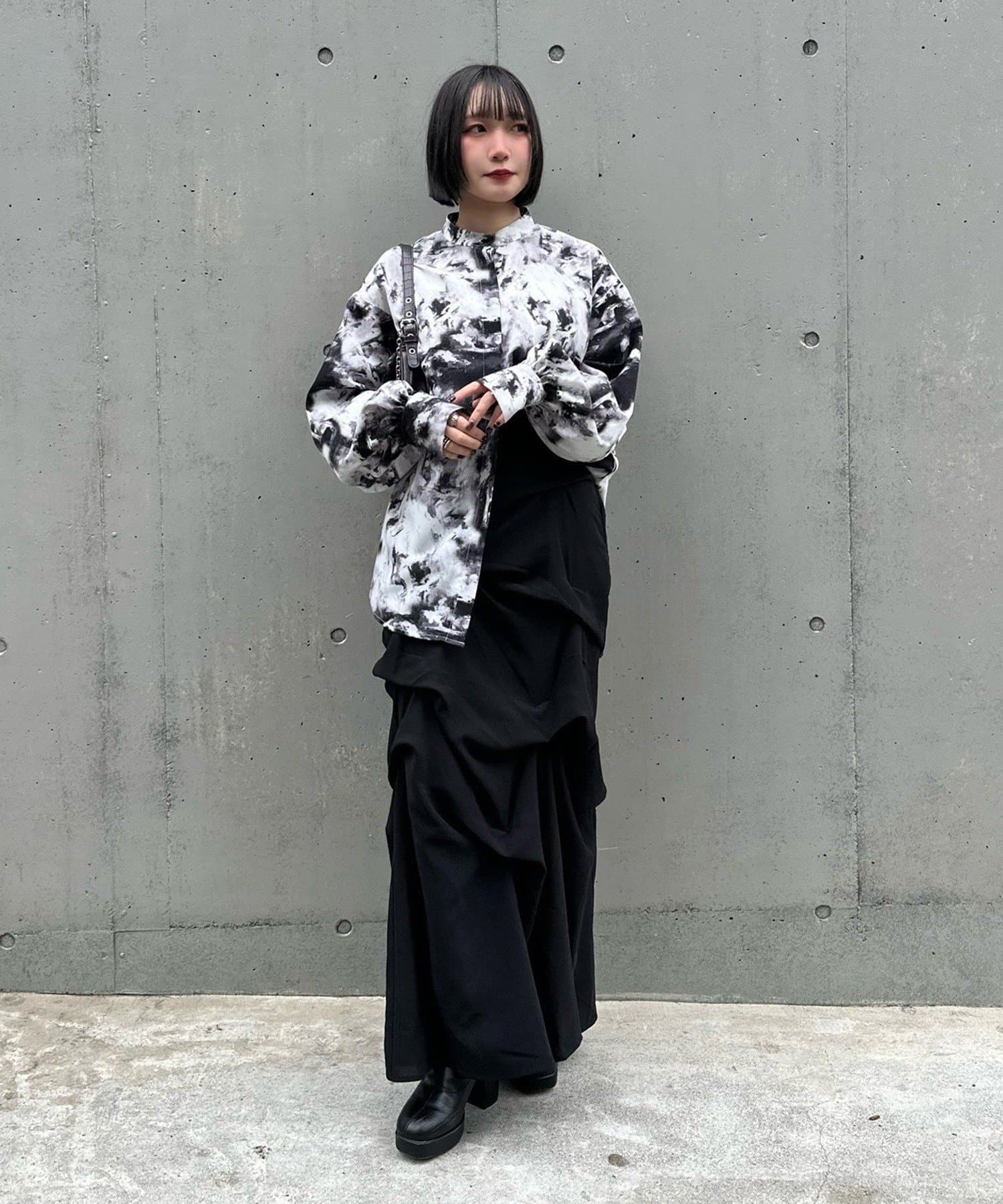 ・素材には落ち感のある生地を使用し、身体のラインを拾いすぎず、動くたびに自然なドレープが生まれるシルエットに。