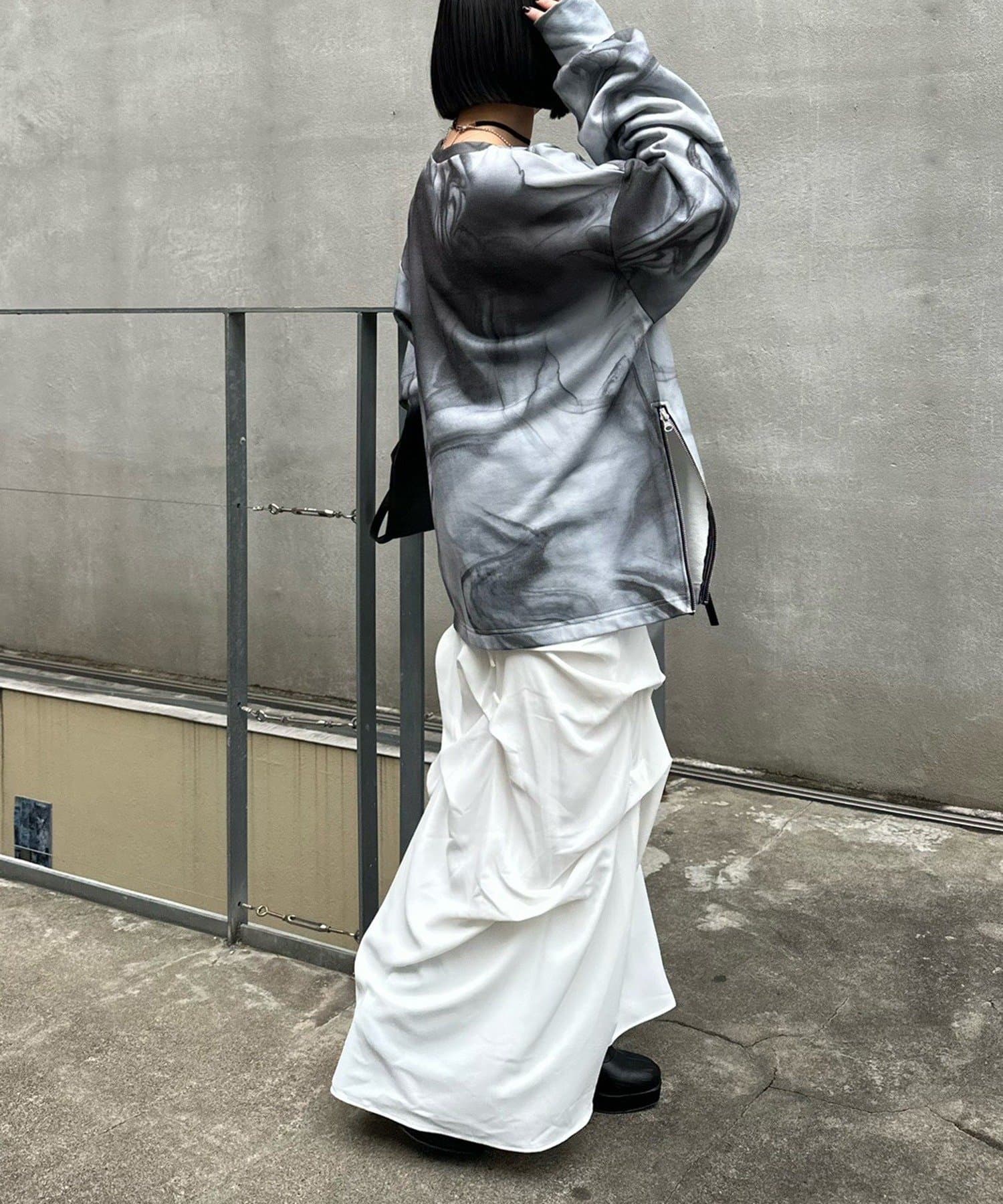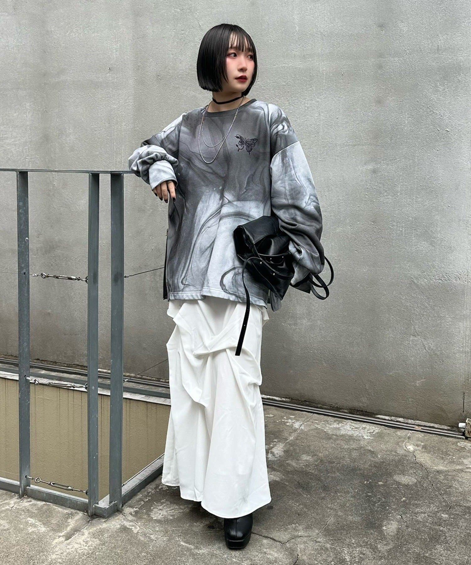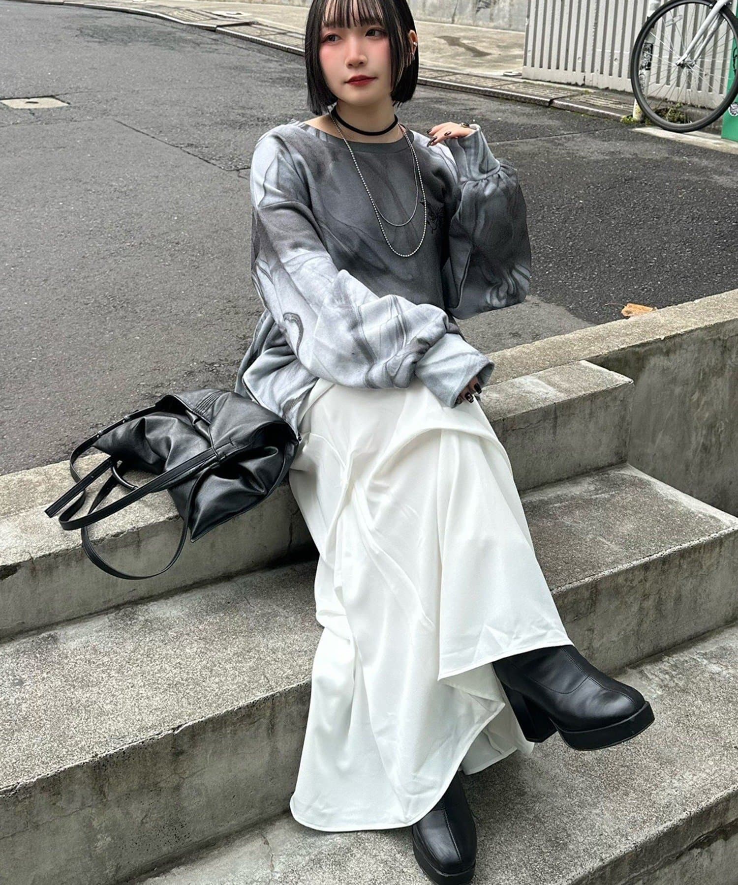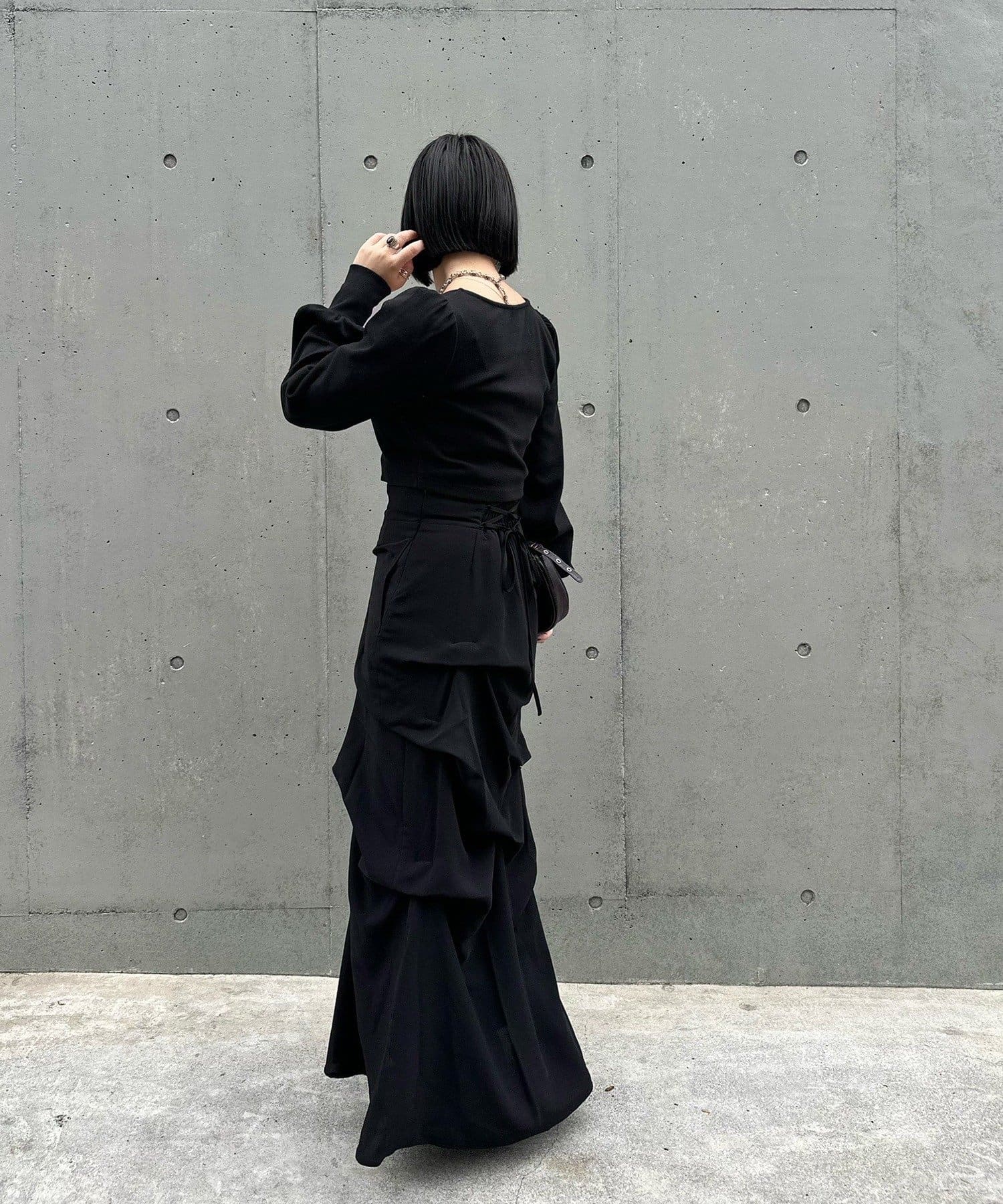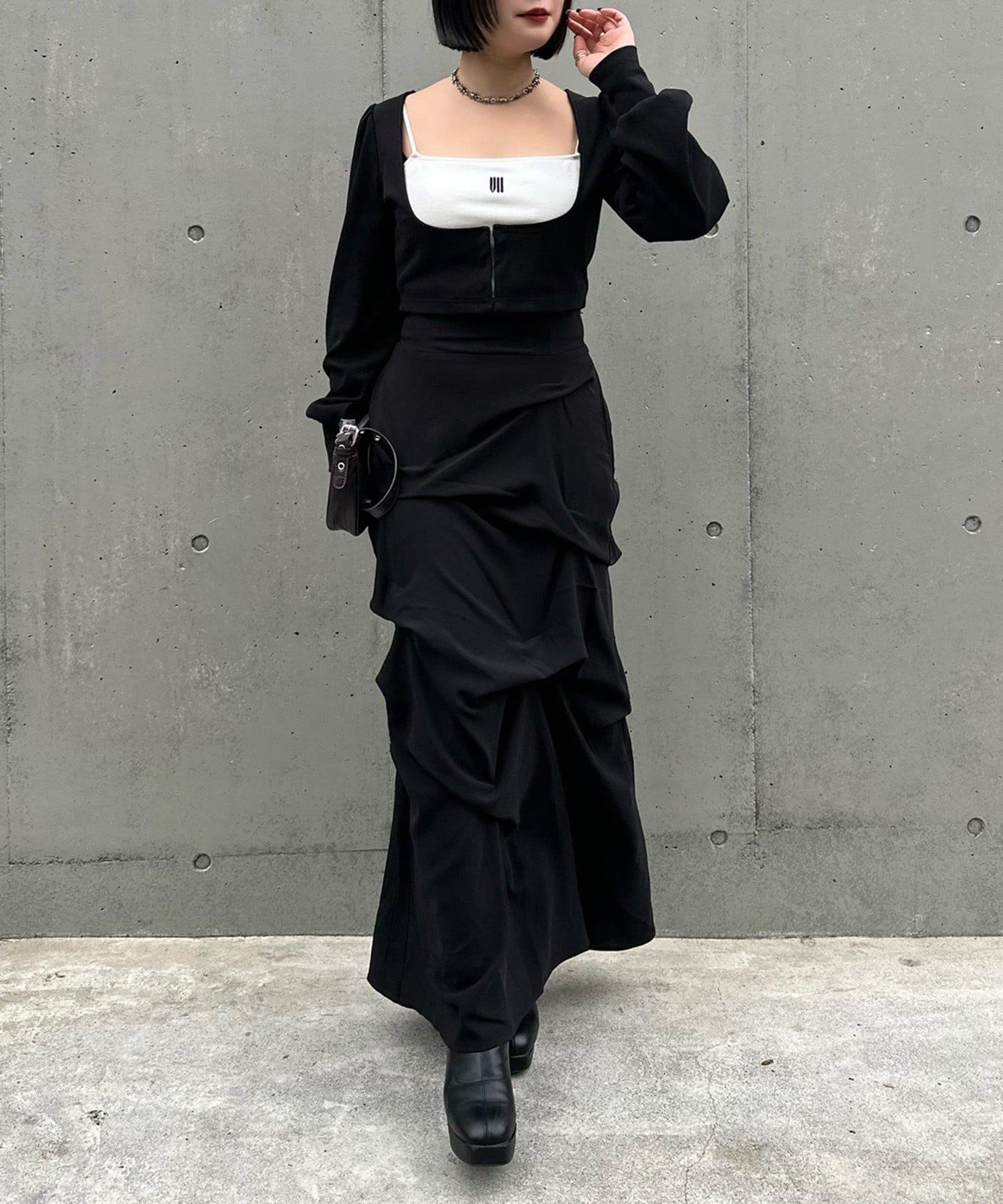 ・立体的なタックデザインが印象的なハイウエストロングスカート。