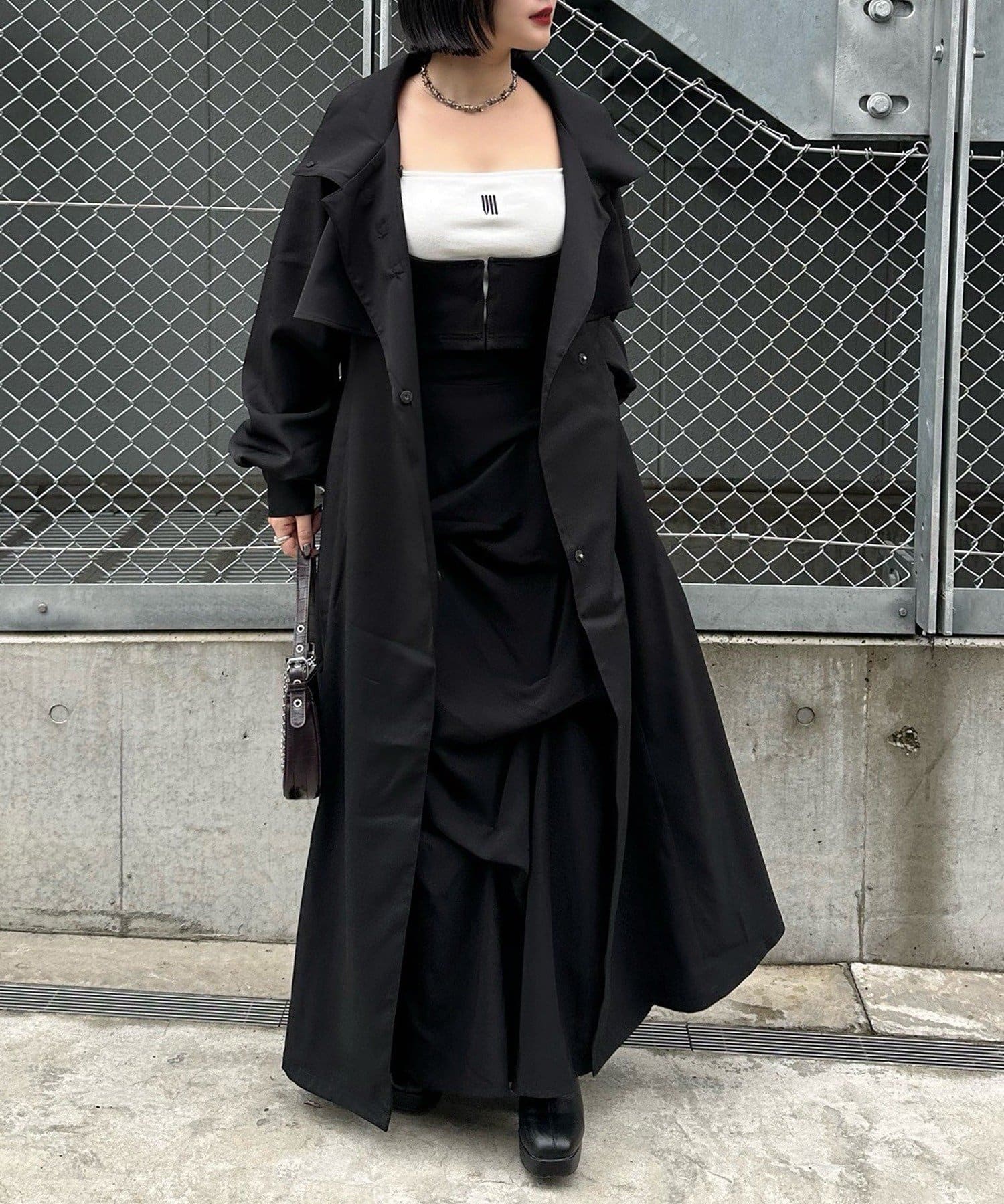 冬にご好評いただいたロングフレアコートを、軽やかに着られるトレンチ仕様にアップデート