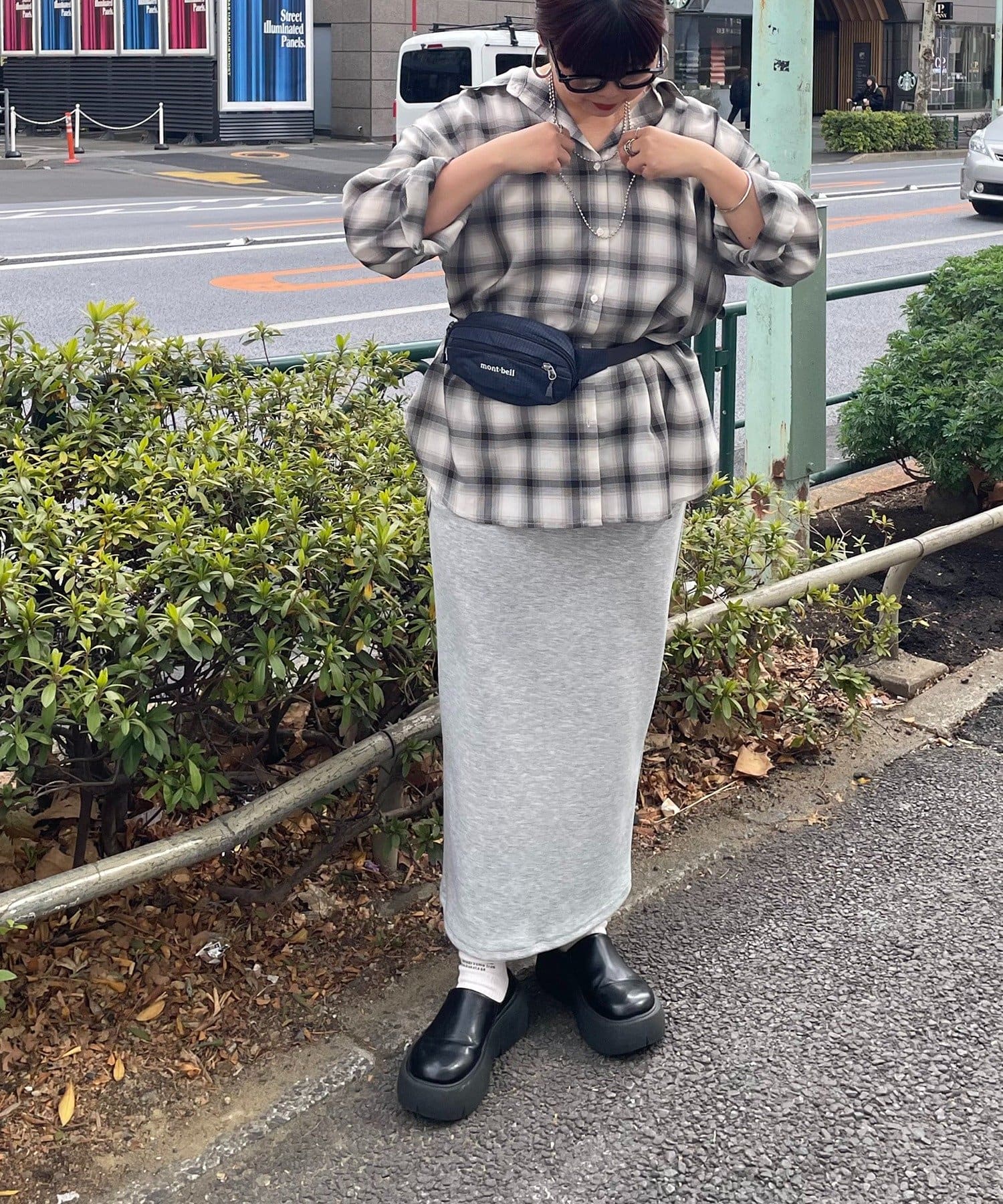 ・ブラウスやシャツをインして、きれいめカジュアルなスタイルに。アクセサリーをプラスして華やかさを演出