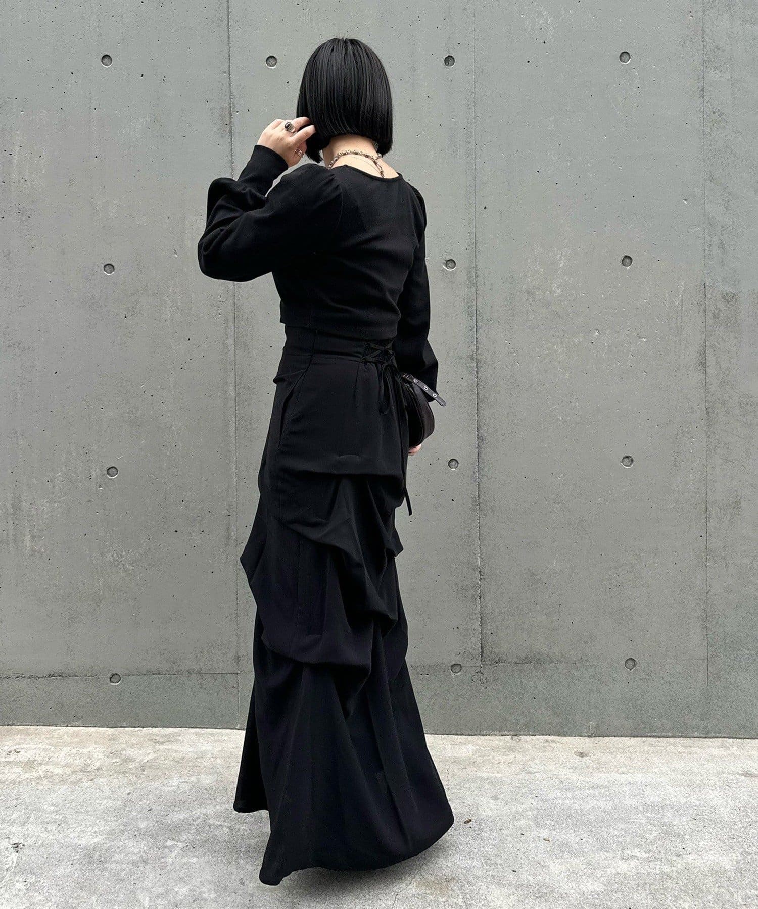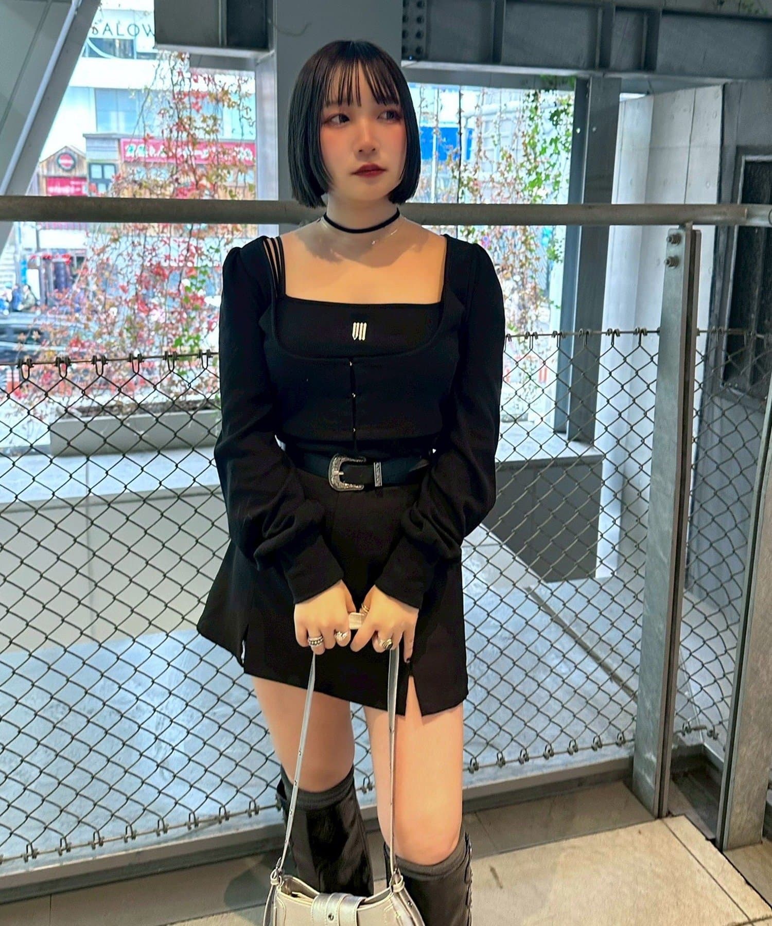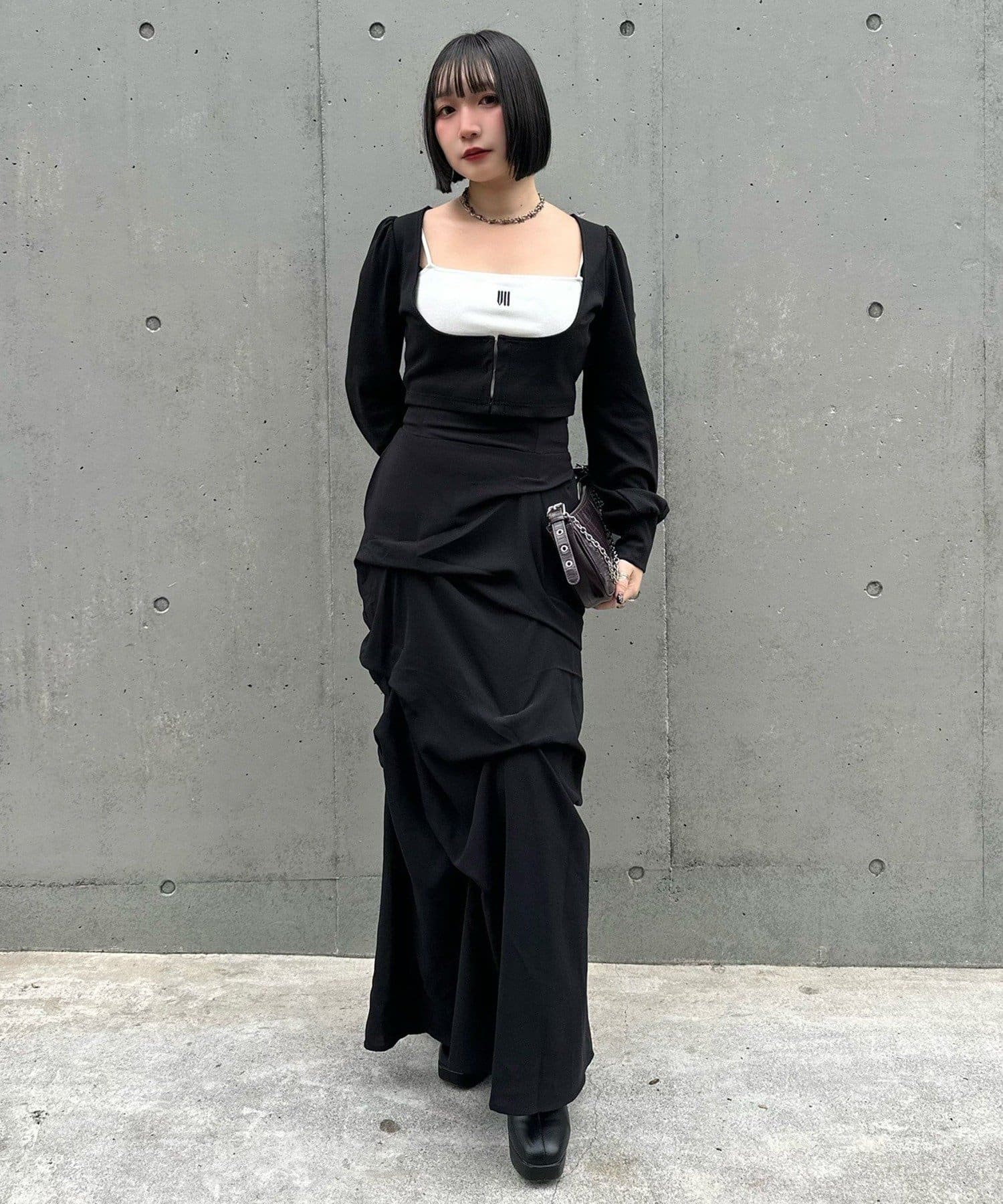 トップスは共通のブラックカラー、インナーのキャミソールはホワイト/ブラックの2色展開です。