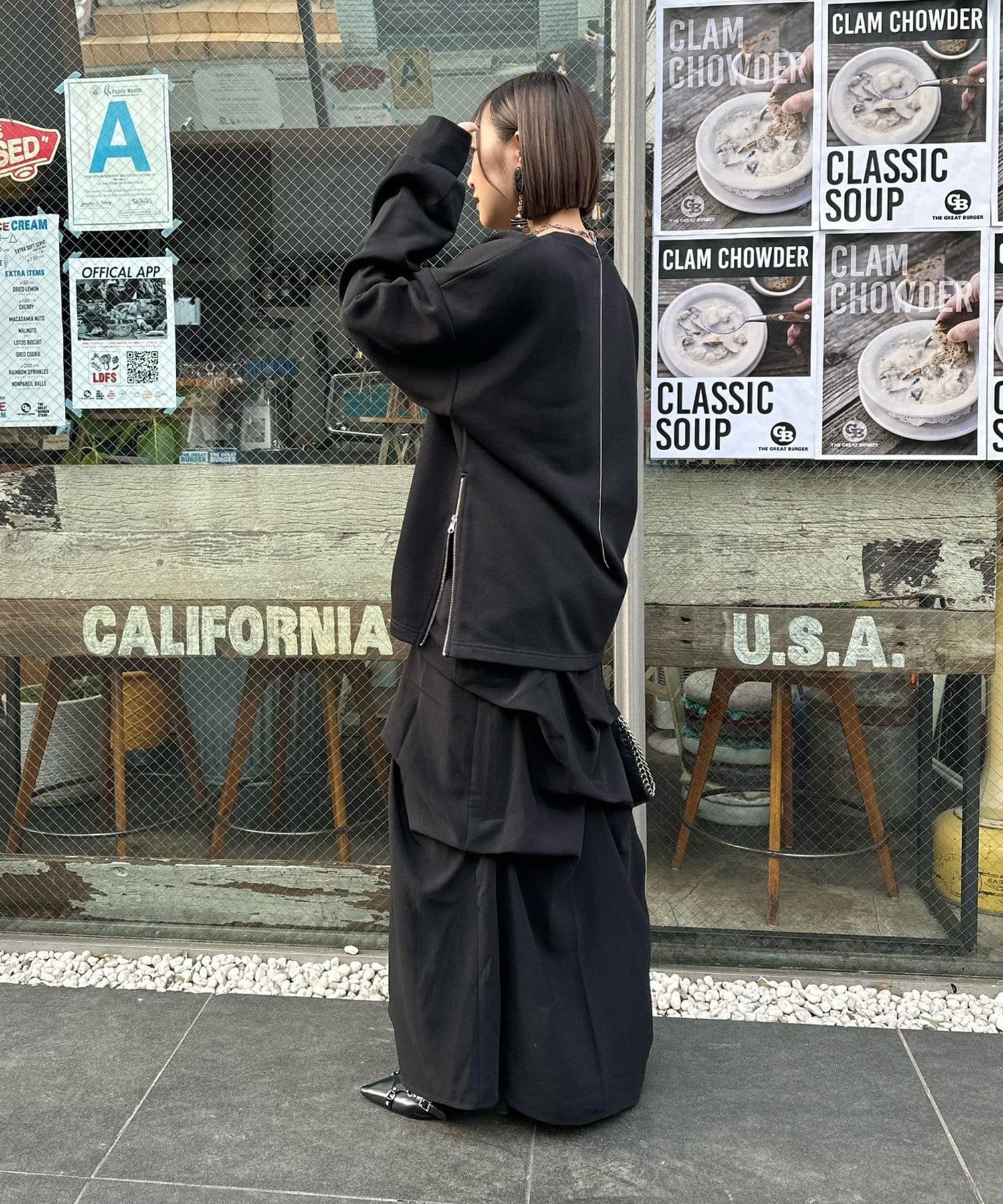 ・サイドにはファスナーディテールを施し、開閉によってシルエットやレイヤードの表情を調整可能。