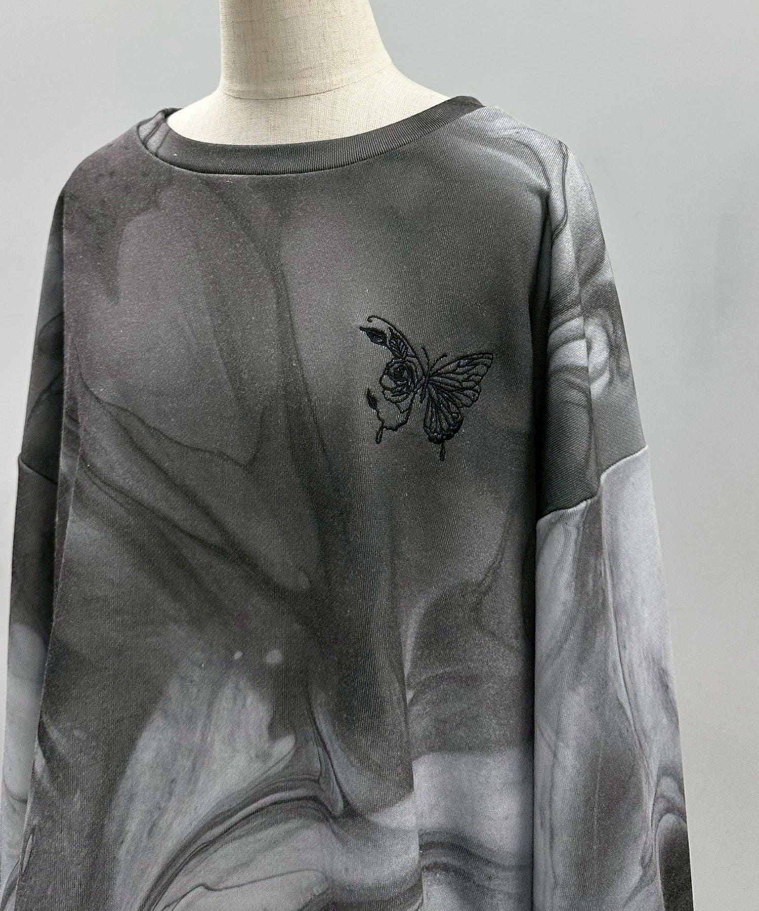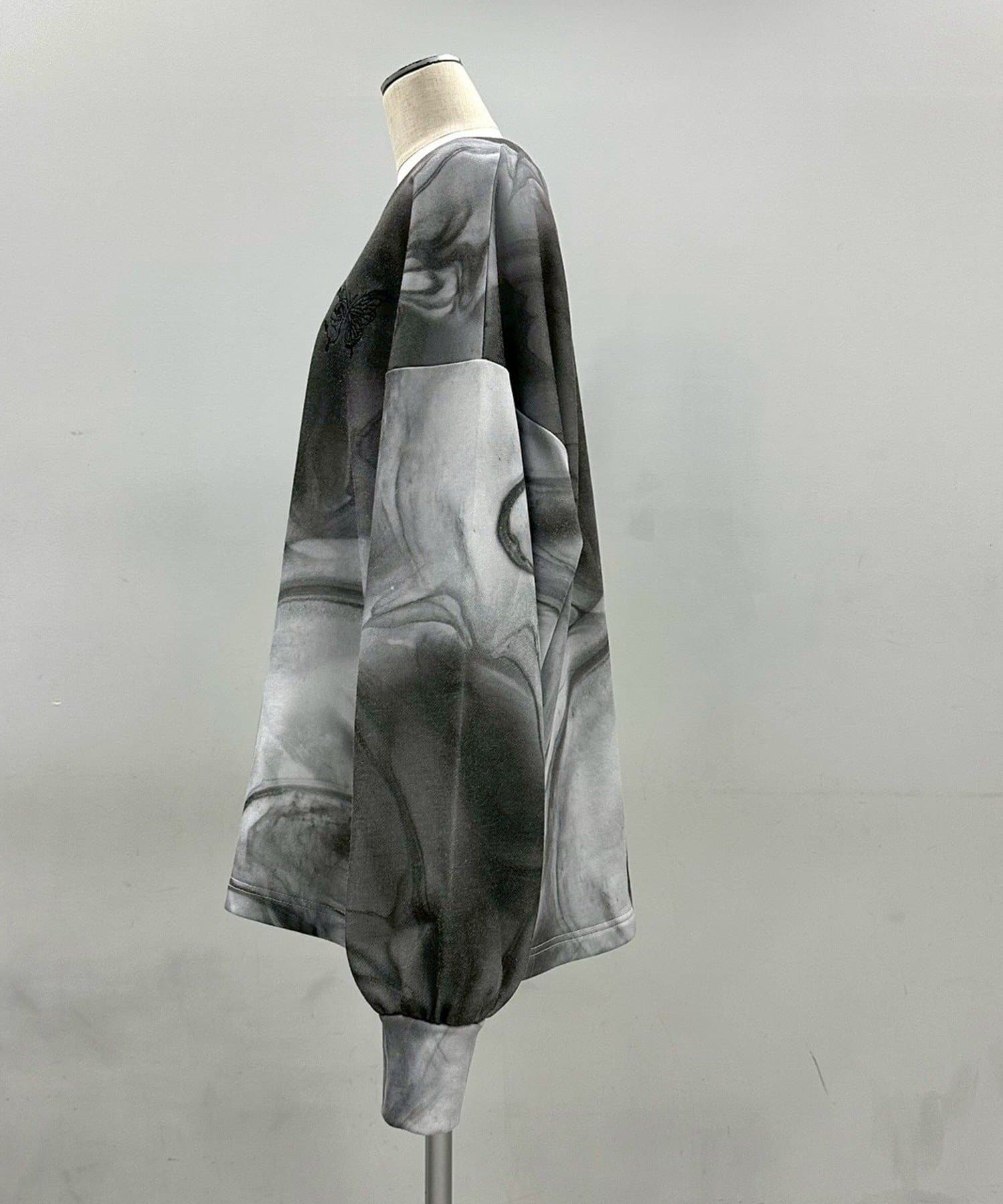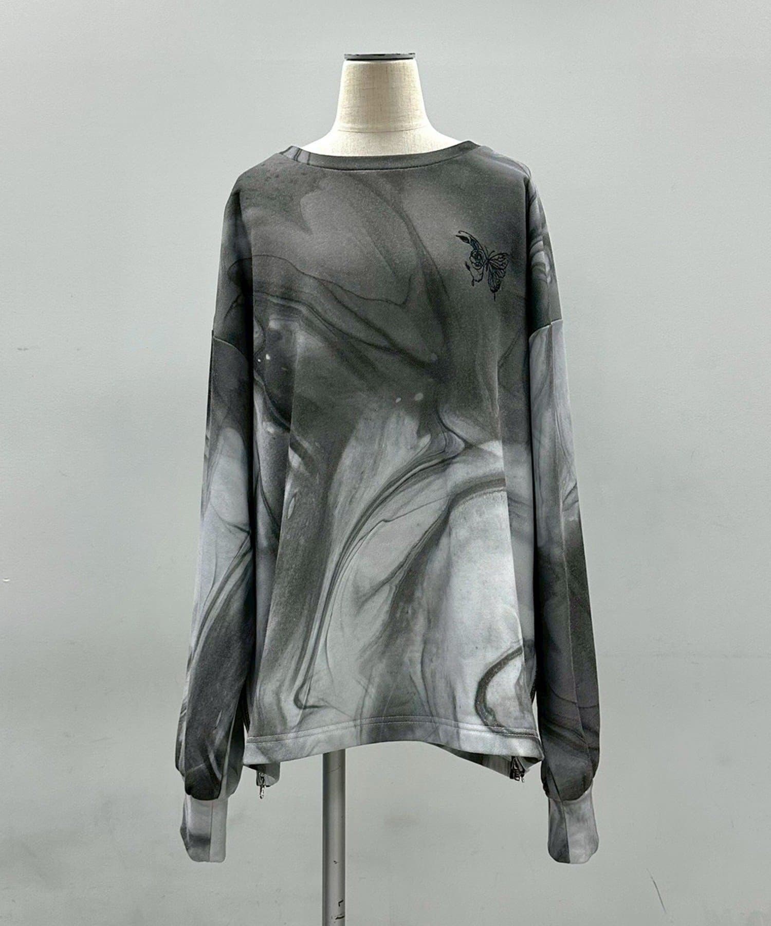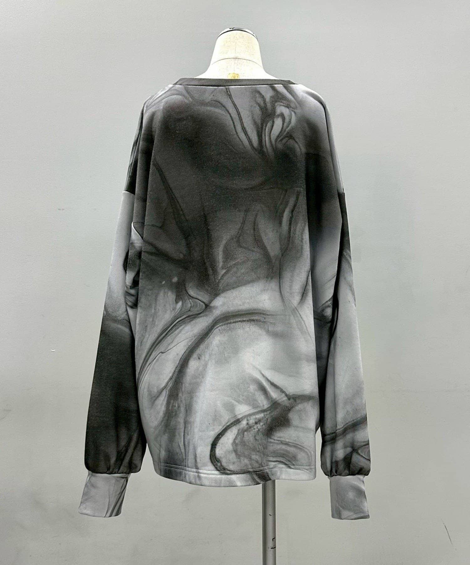 ・流れるようなマーブル柄が印象的なグラフィックトレーナー。