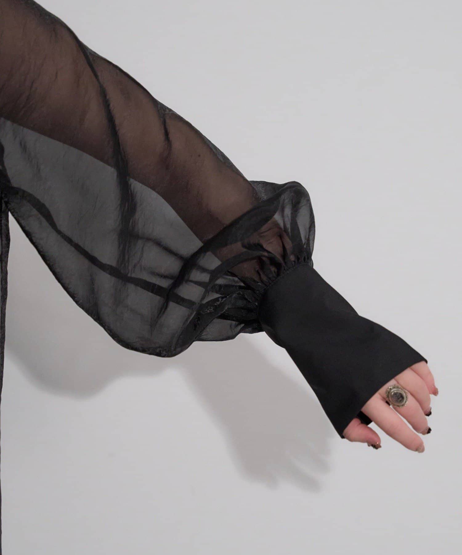 ・軽やかなシアー素材が抜け感を演出し、程よくモードな印象に。