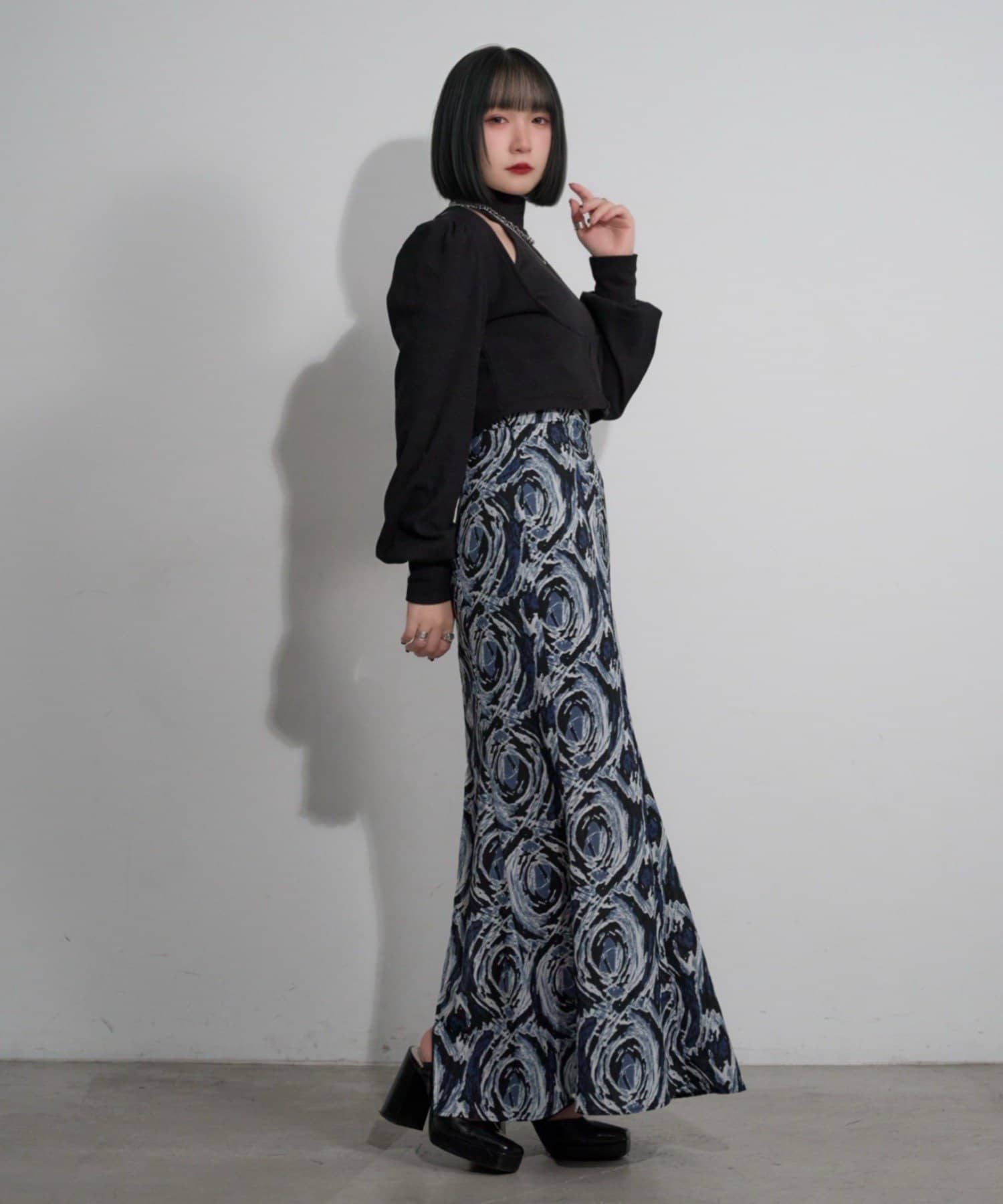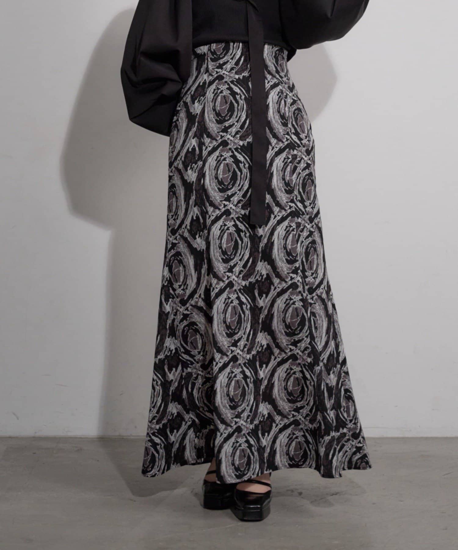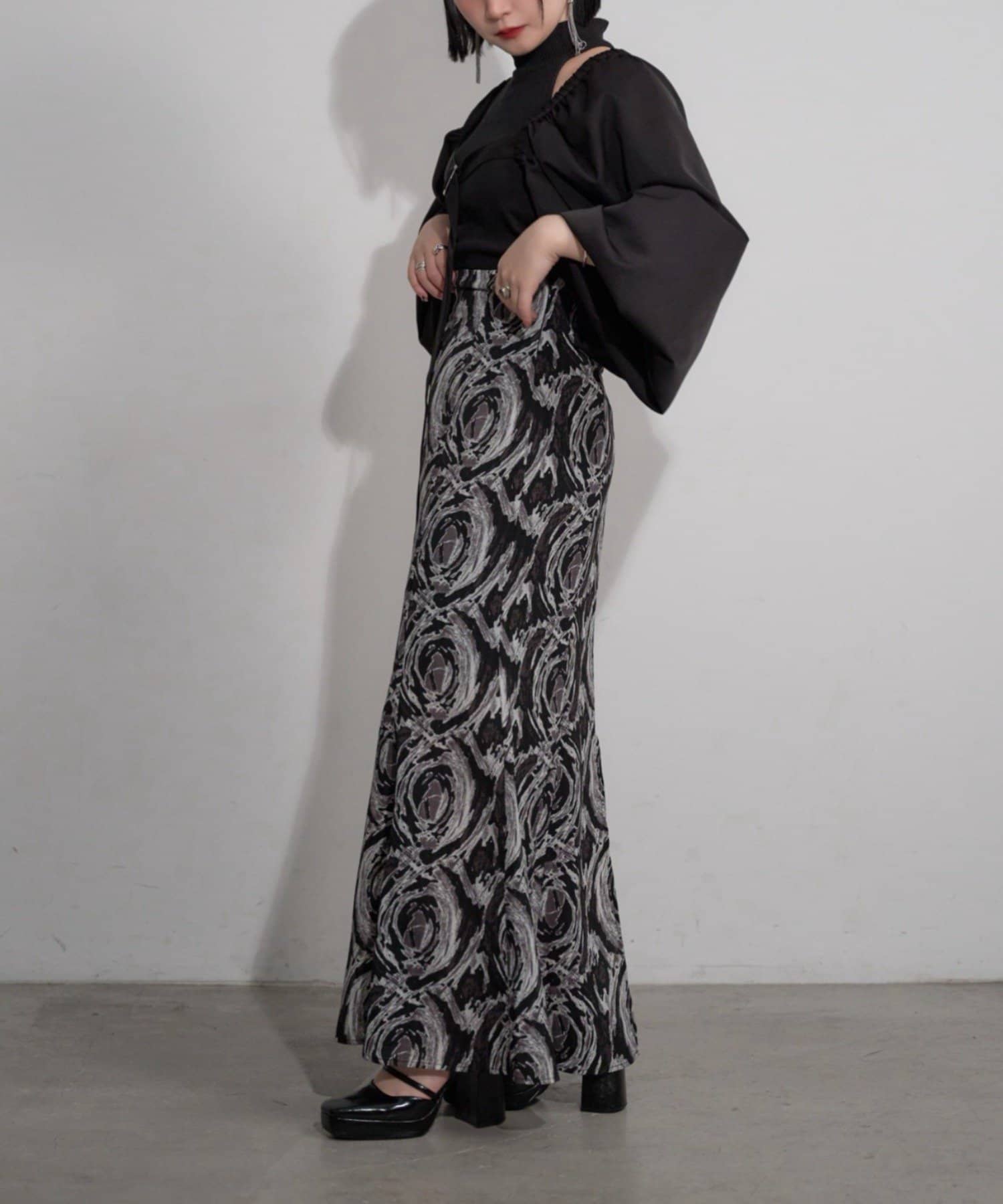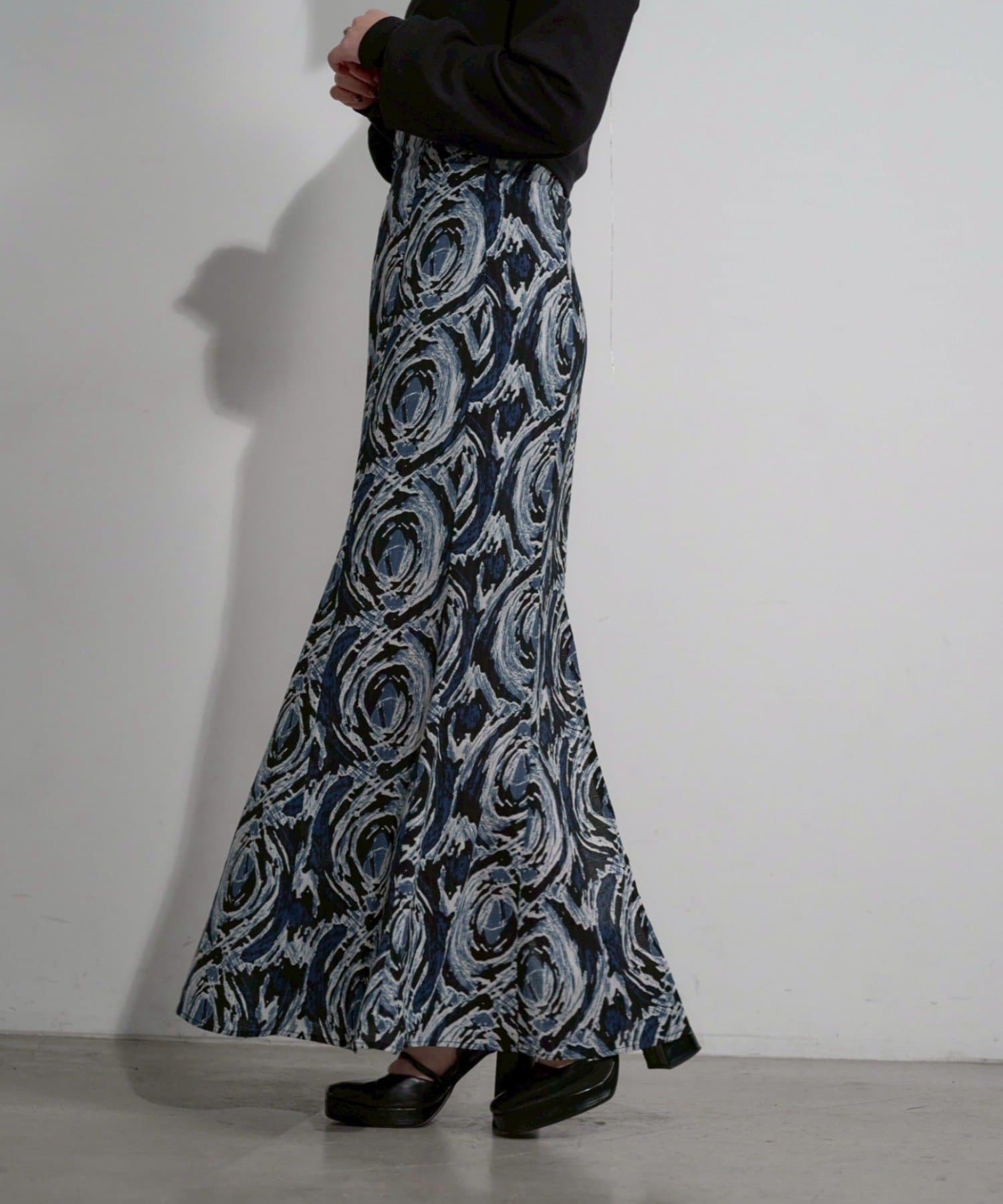 ・存在感のあるオリジナル柄が目を引くマーメイドスカート。