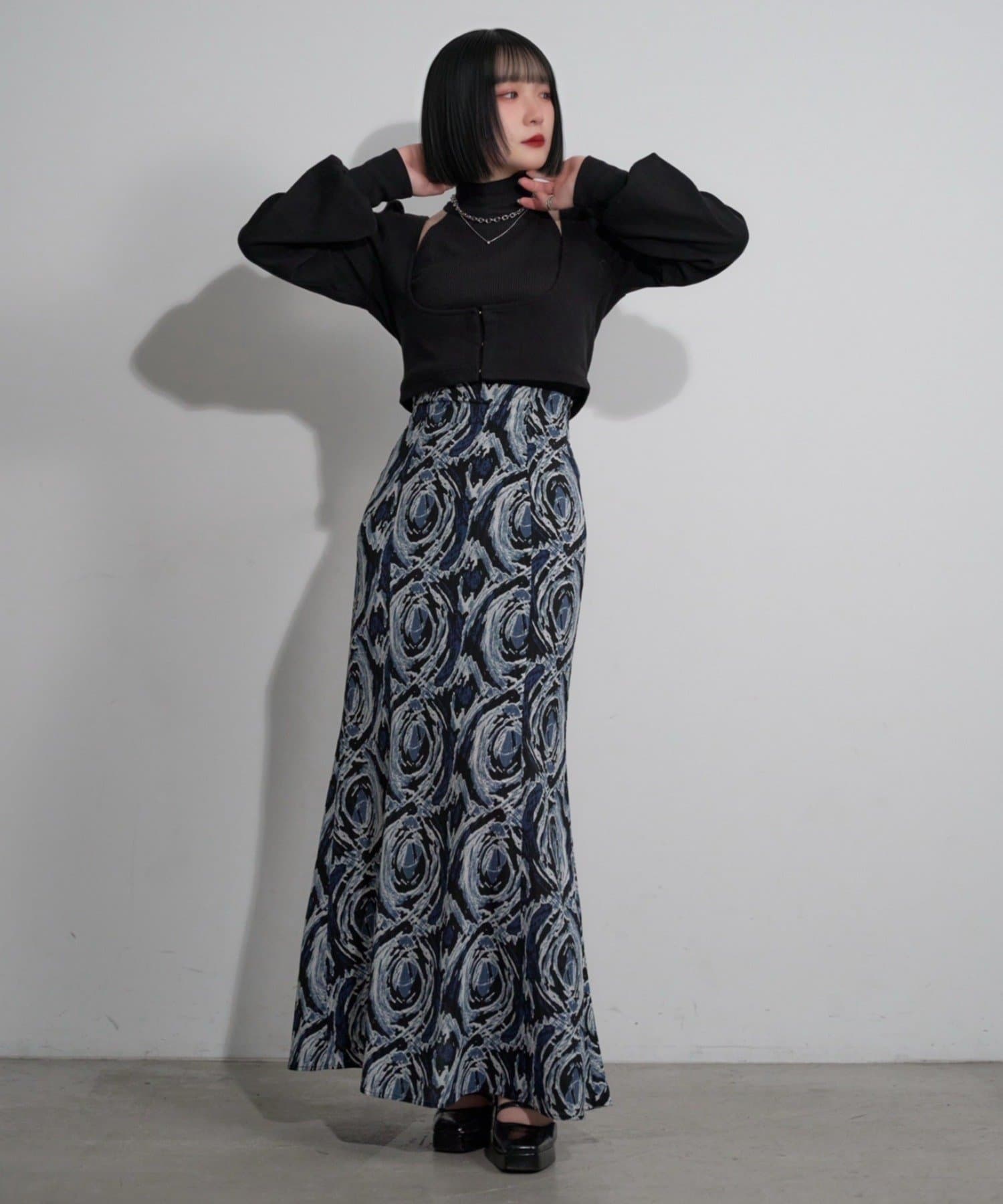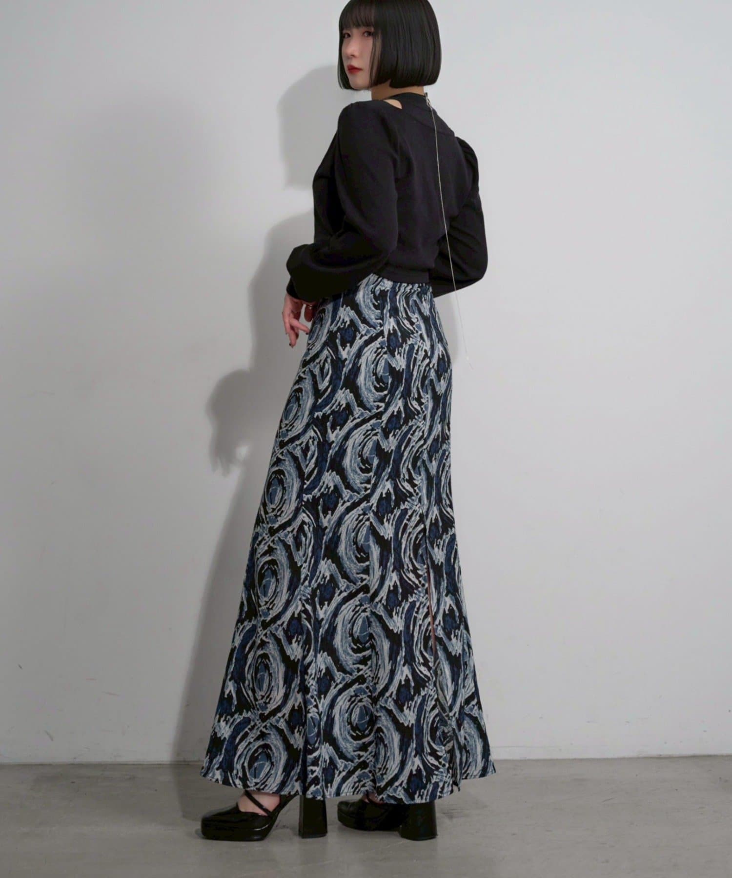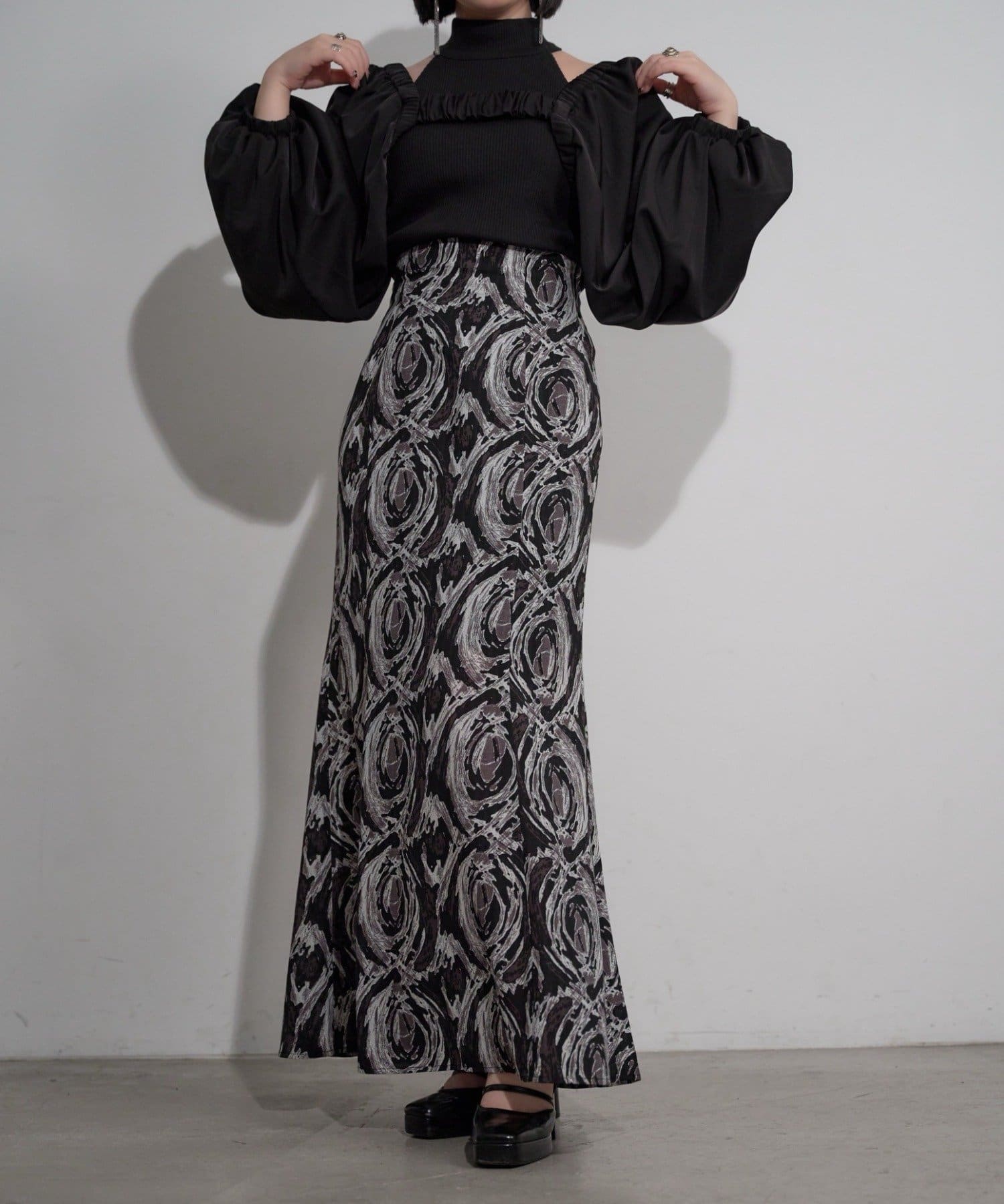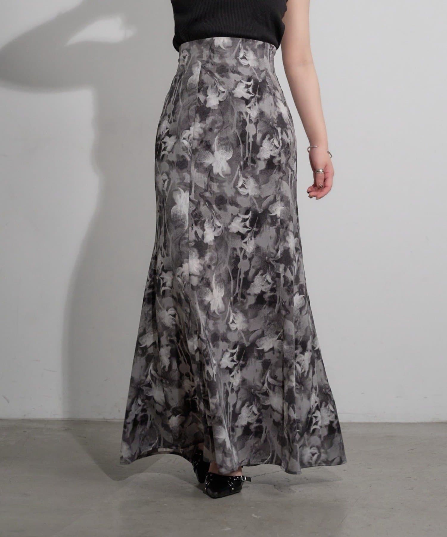 ・存在感のあるオリジナル柄が目を引くマーメイドスカート。