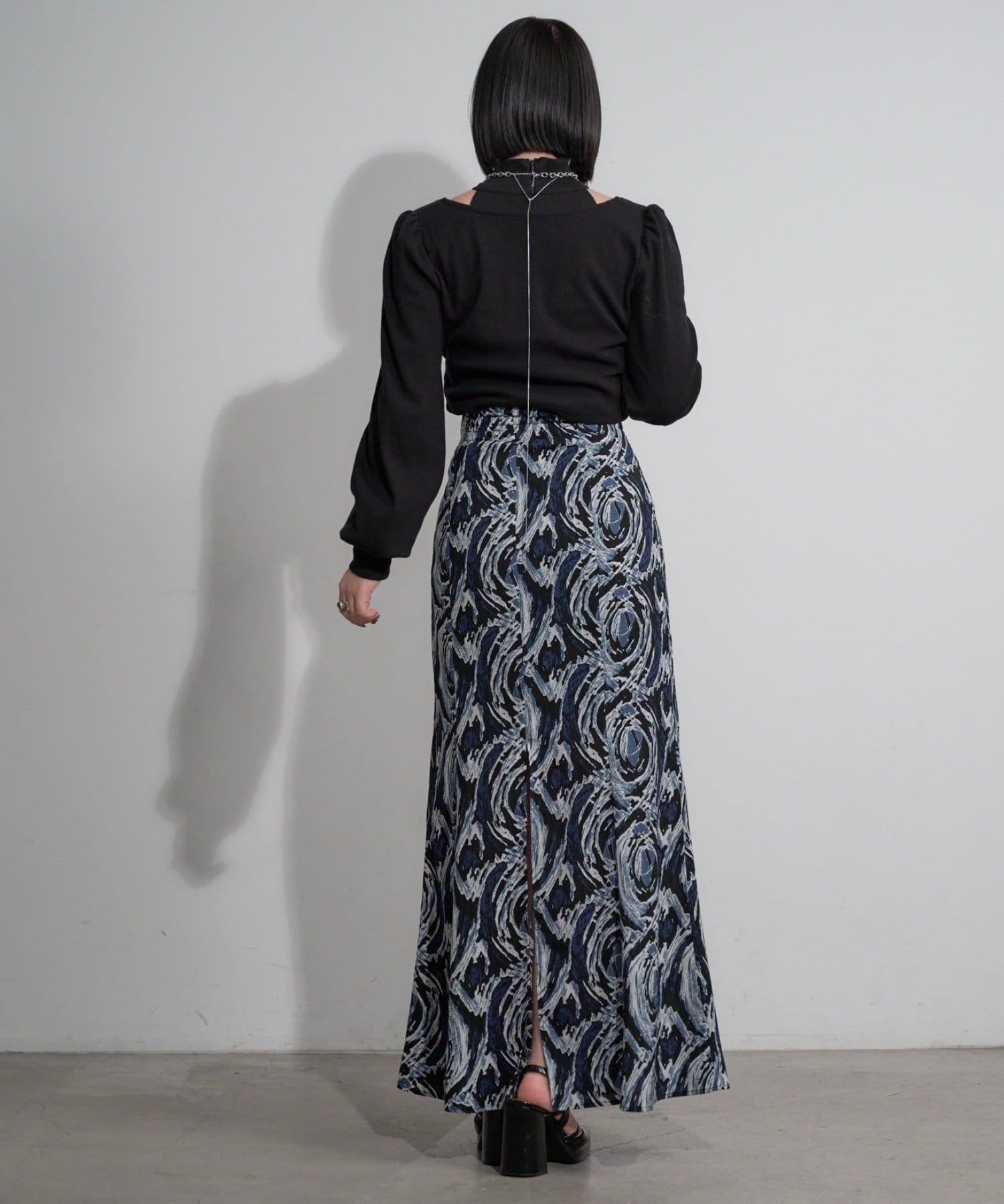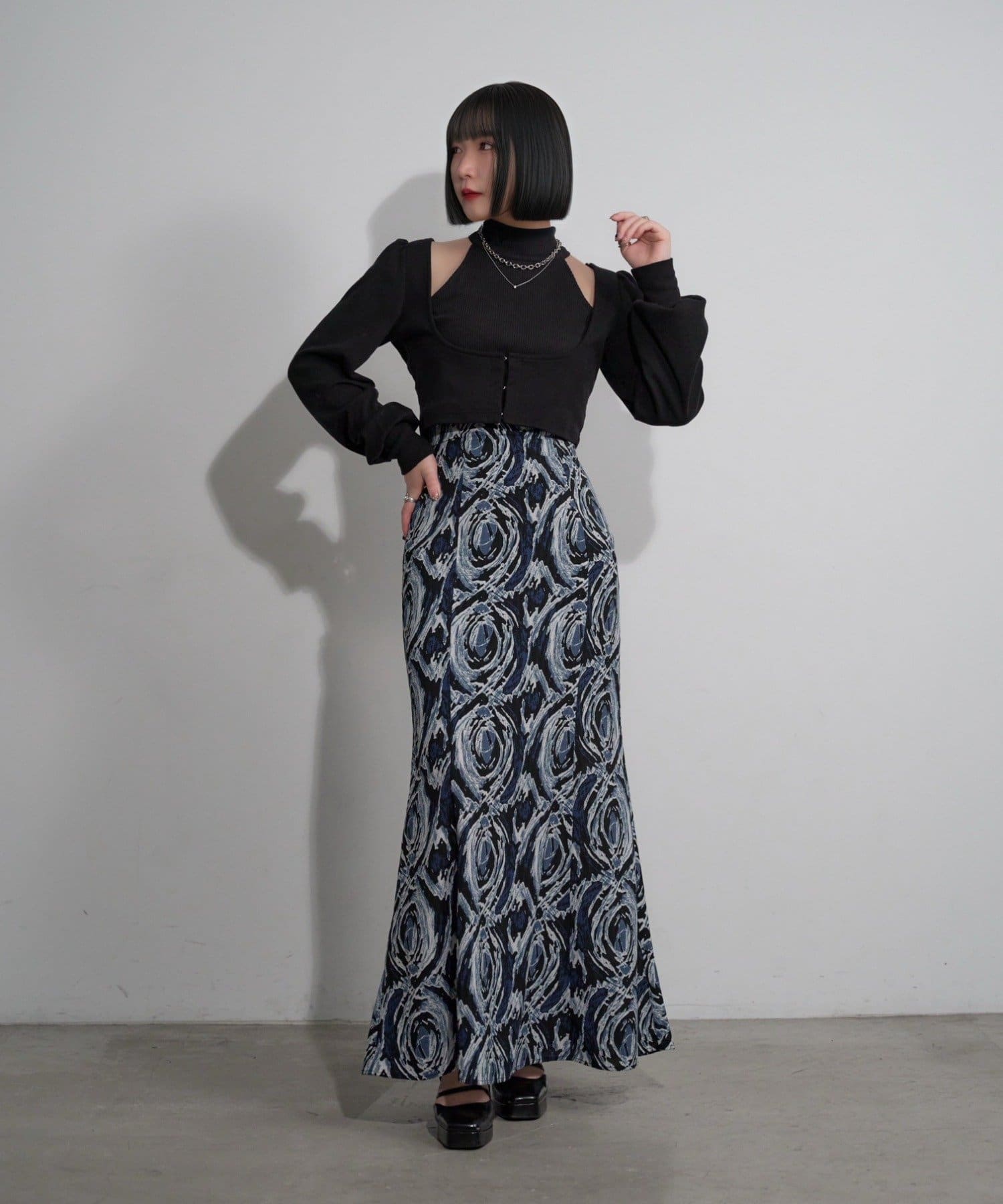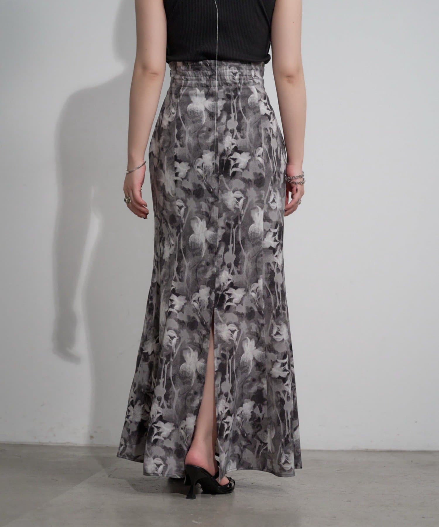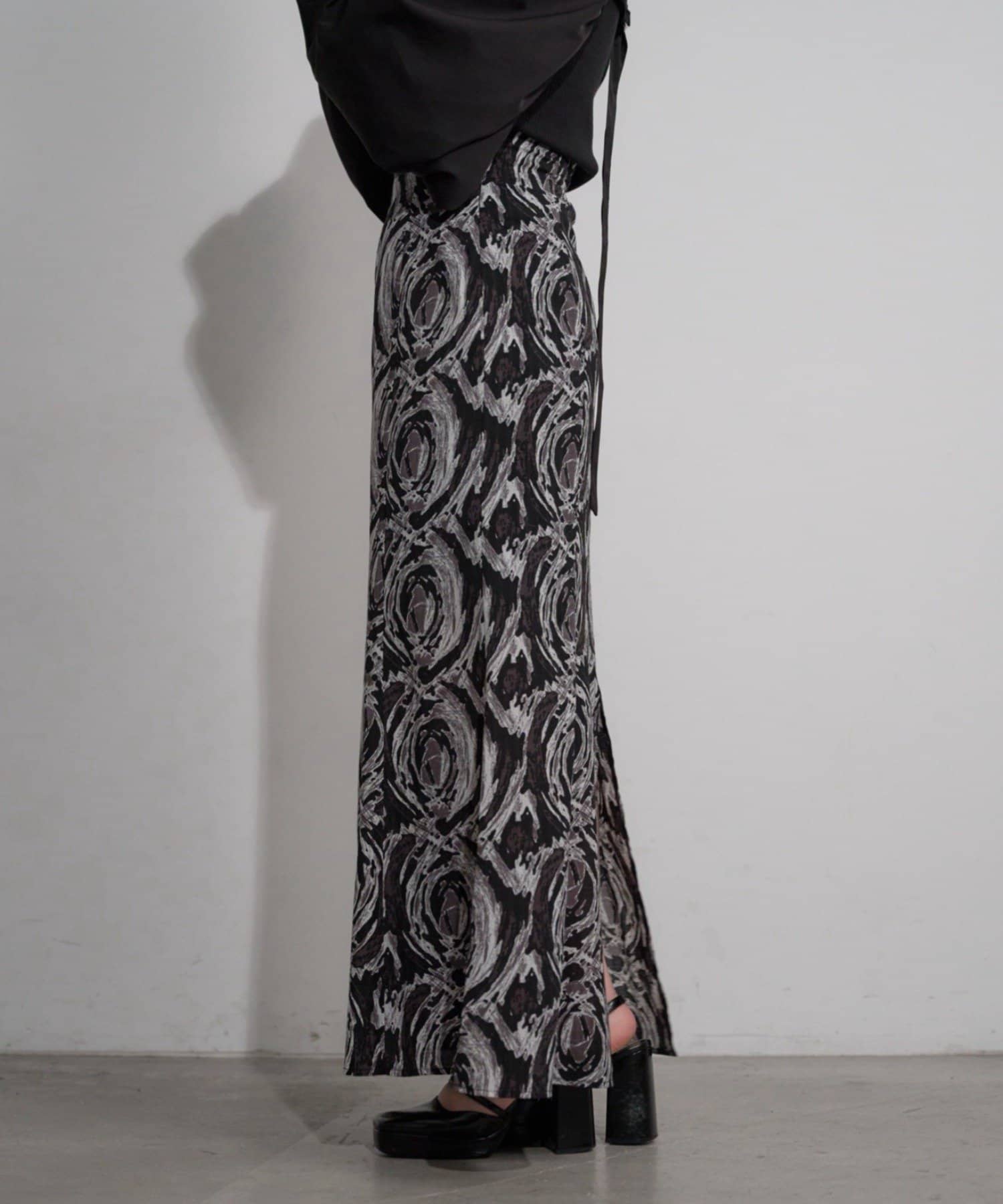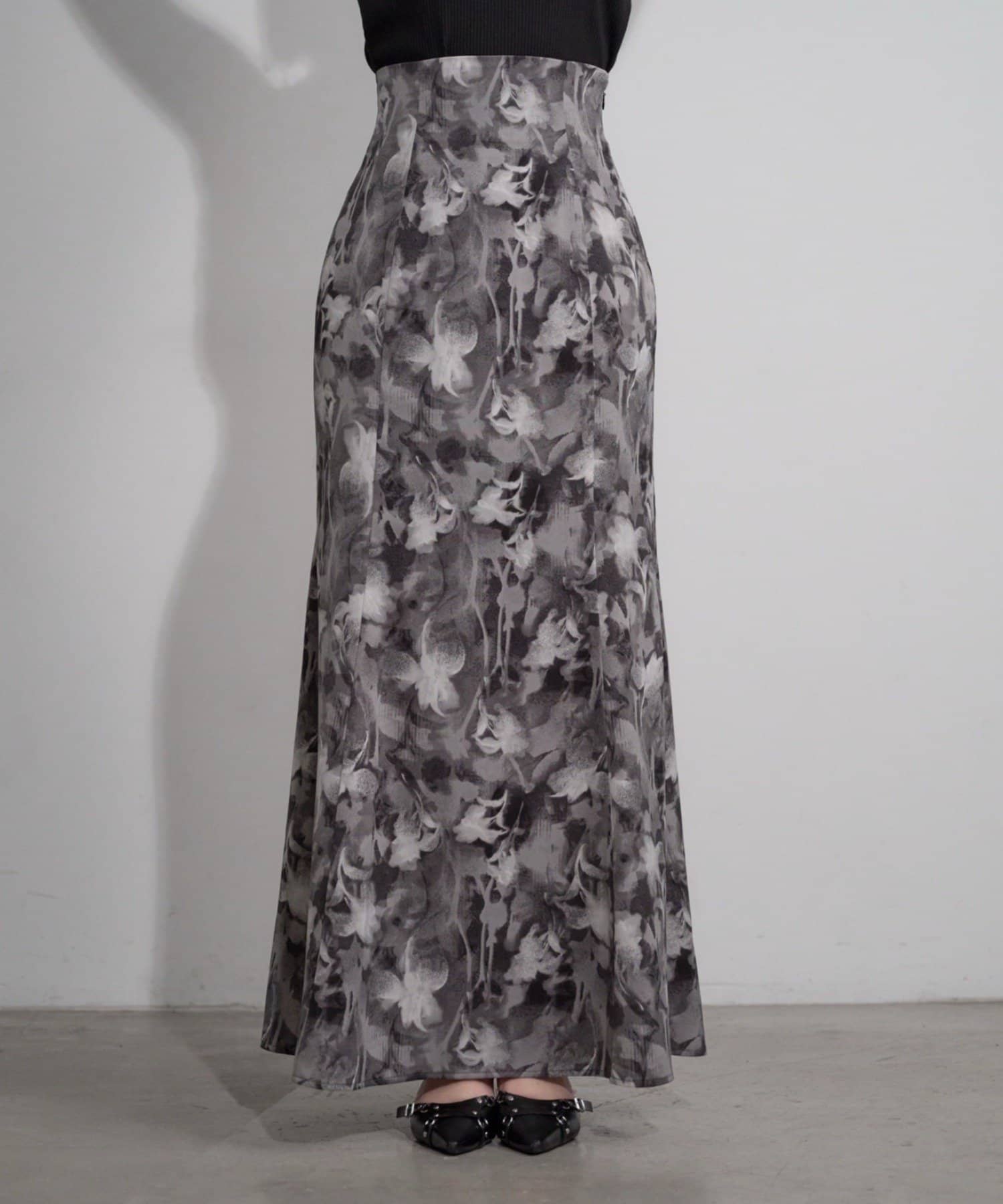 ・存在感のあるオリジナル柄が目を引くマーメイドスカート。