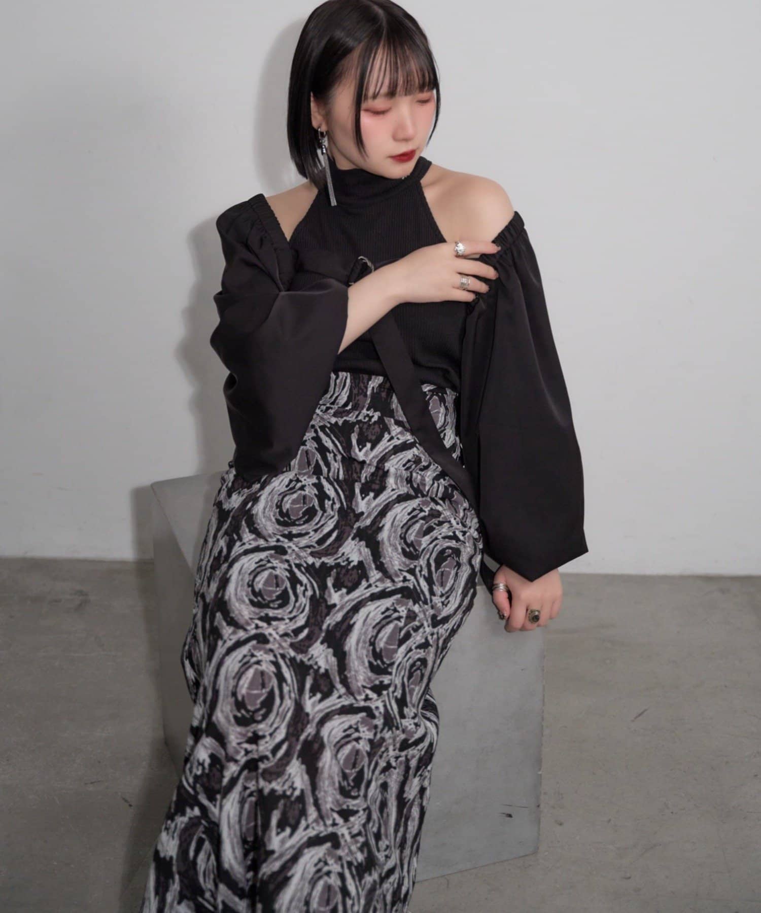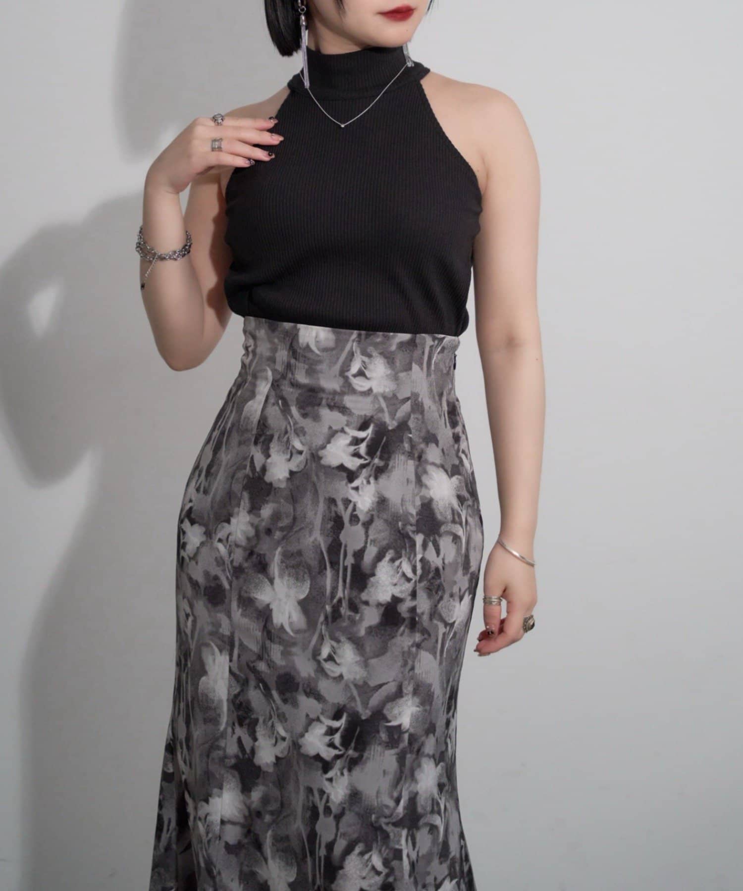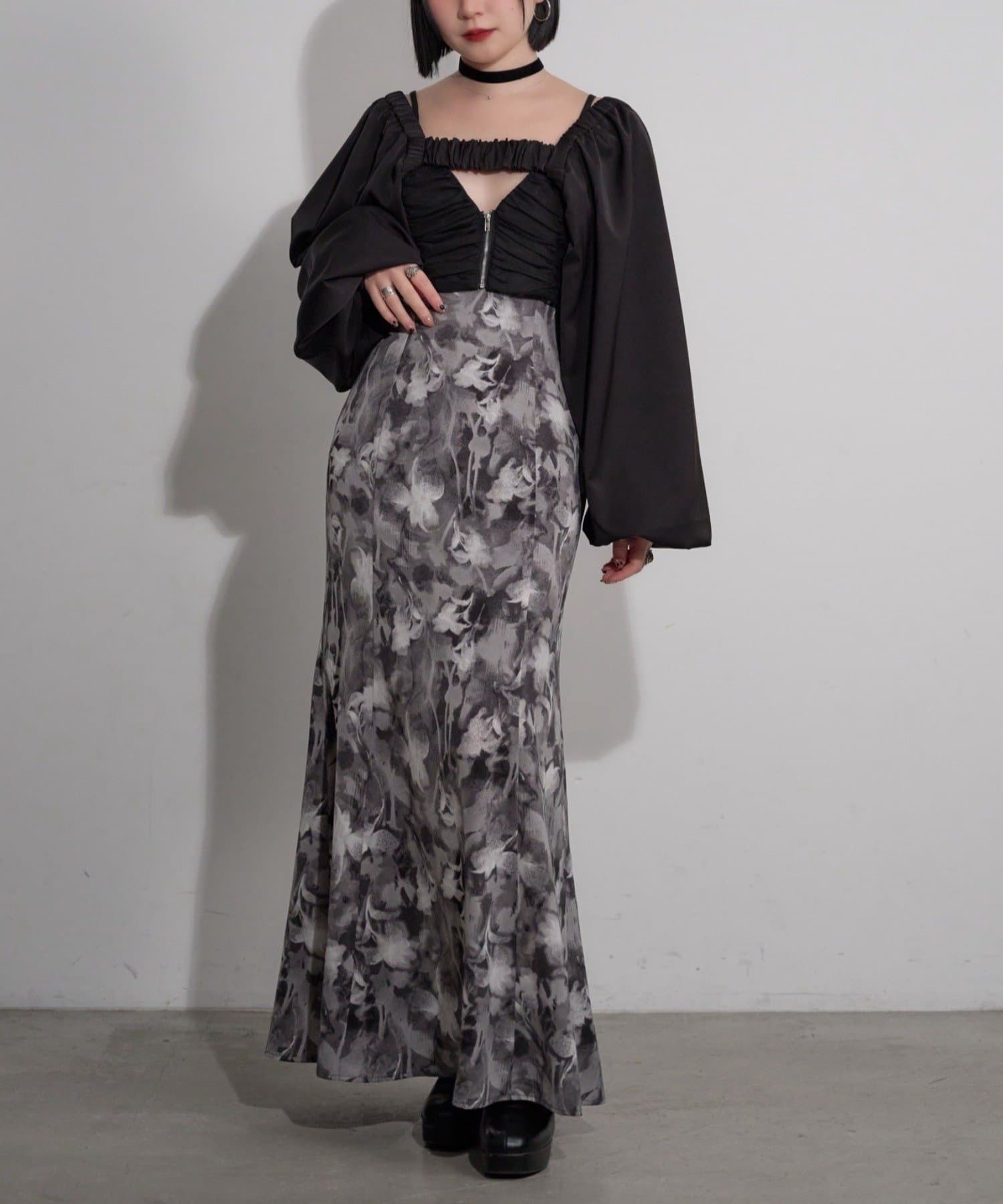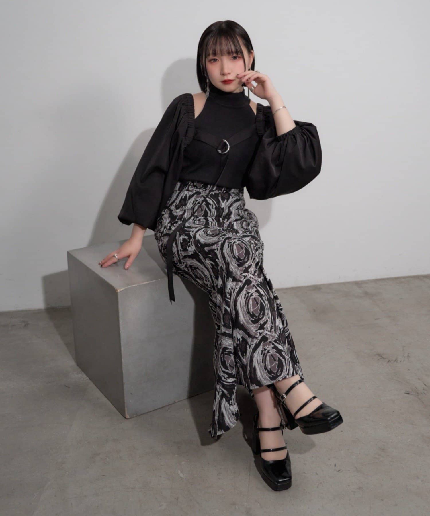 ・存在感のあるオリジナル柄が目を引くマーメイドスカート。