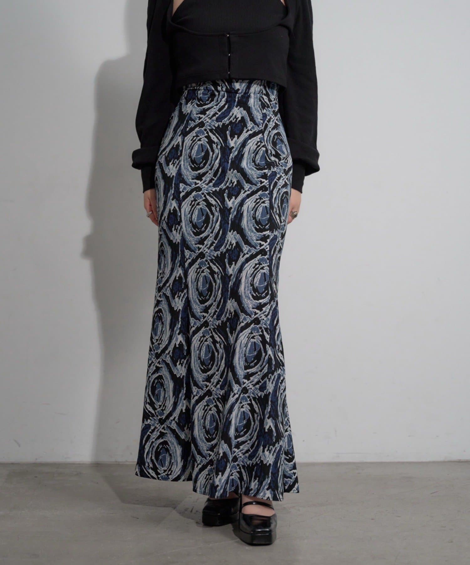 【Mavie..7】【2サイズ展開】アート柄マーメイドスカート