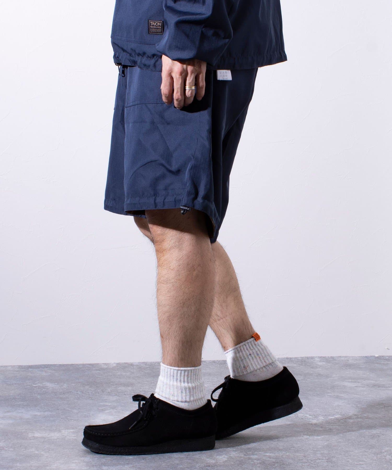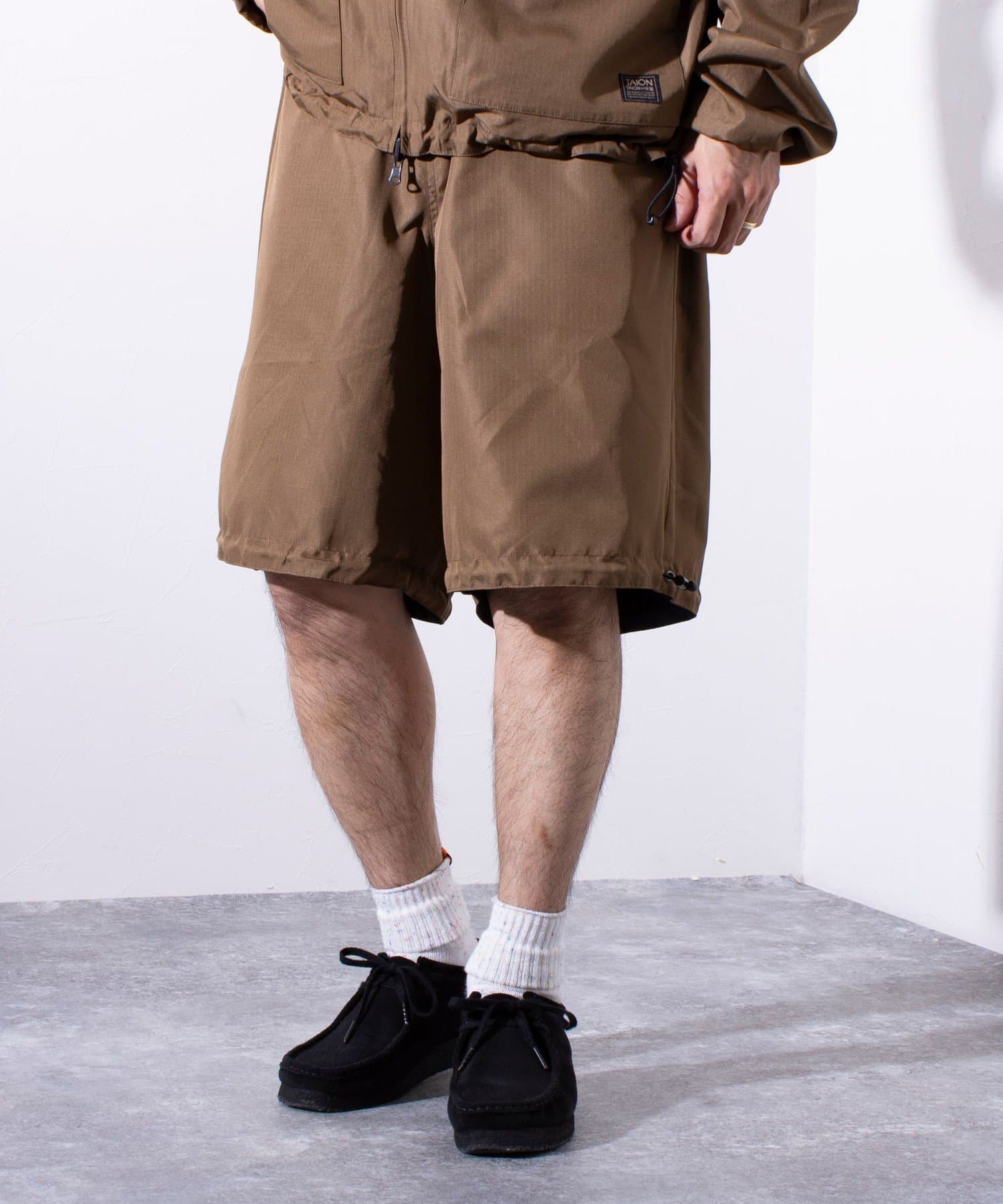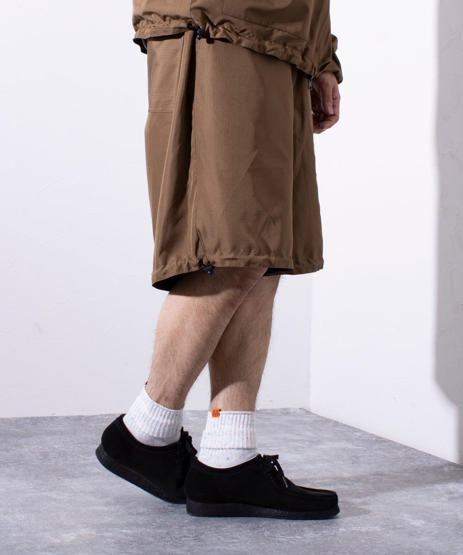 ダウン用のミリタリーライン生地を使用することで軽量で防汚性も担保した、ミリタリーリバーシブルショーツです。(ダウンは入りません)