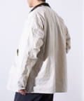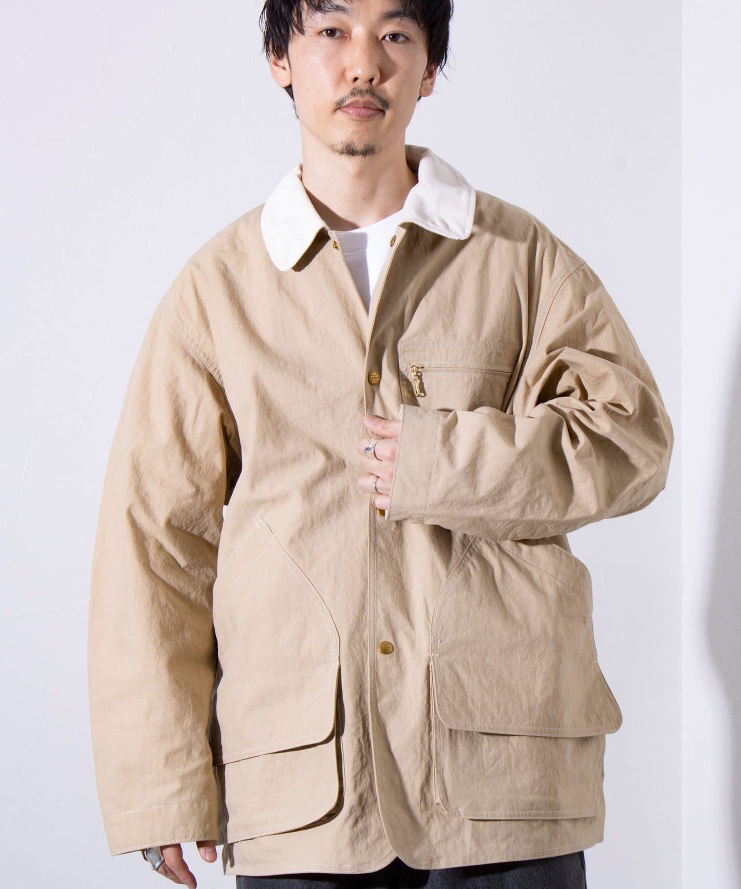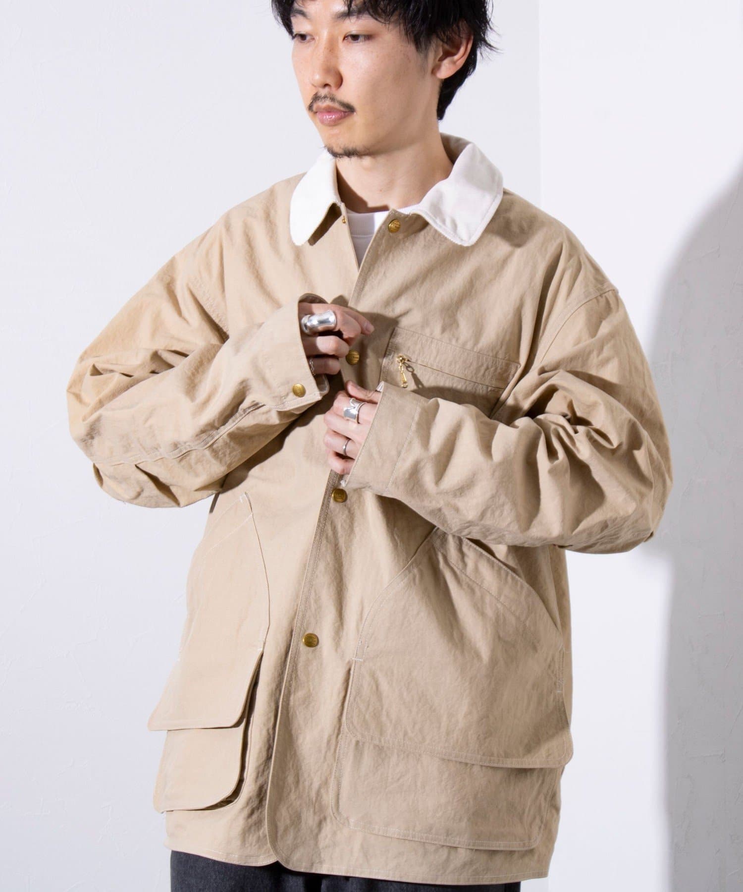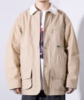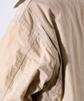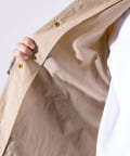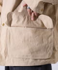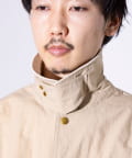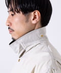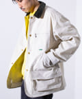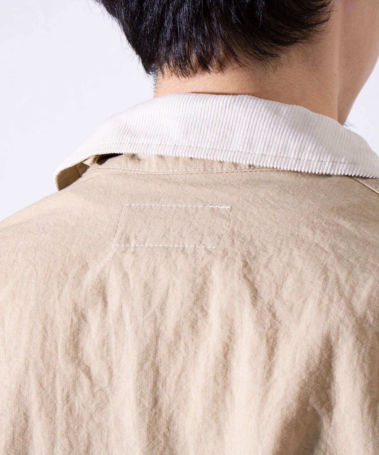 撥水加工施され、襟と袖口のトリムはコットンの14ウェールのコーデュロイを使用。裏地付きで肌寒い日に最適なアイテムです。