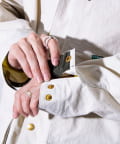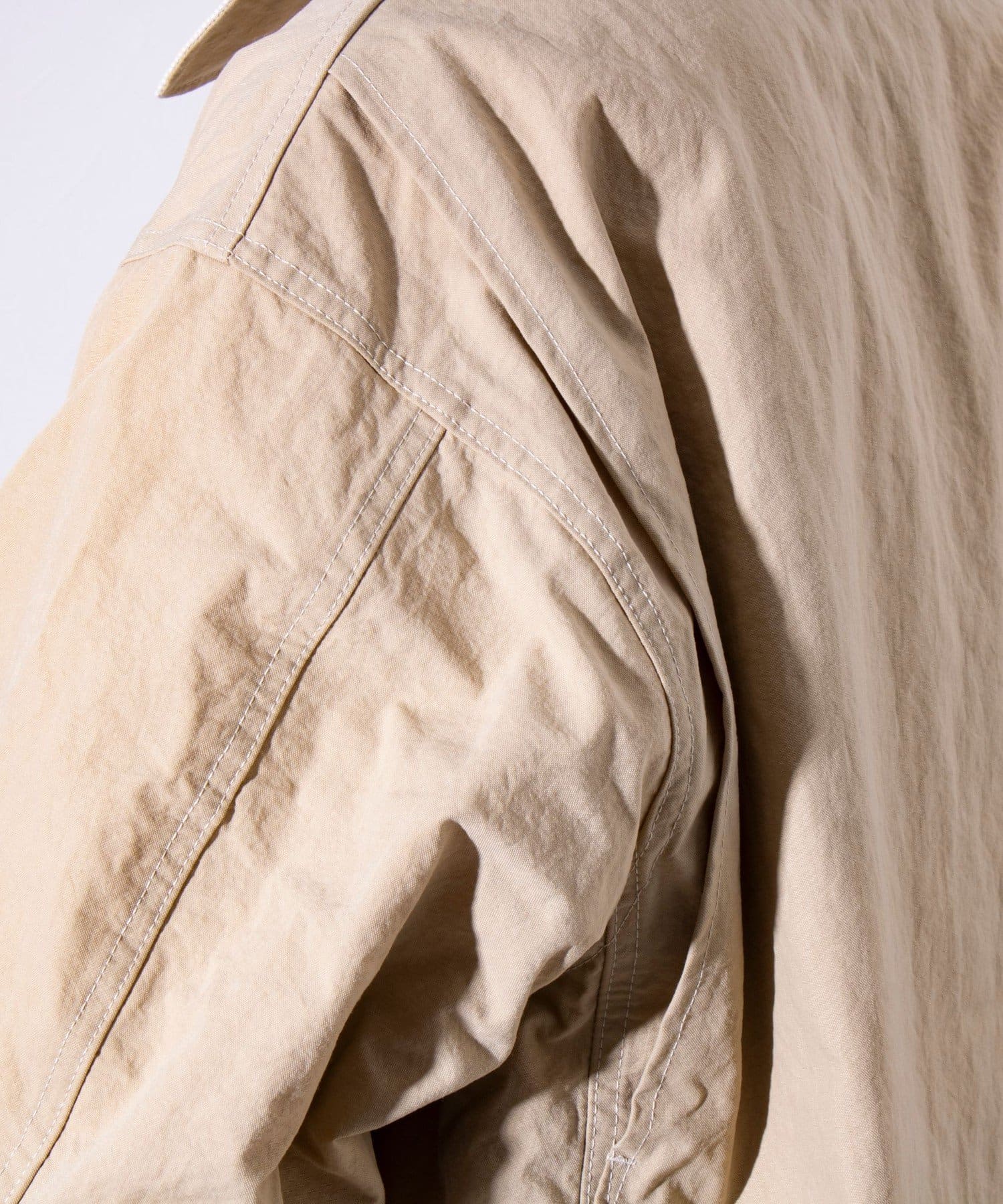 シワ加工によりマットでナチュラルな、コットンのような質感と、機能性・耐久性を兼ね備えた素材は、ほど良いハリ感がありながらも軽量で、着始めからソフトで着慣れた風合いが特徴的です。
