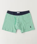 オーガニックコットンを使用したコットンストレッチボクサーブリーフです。柔らかな質感と伸縮性を兼ね備えた快適な着心地が特長。プリントは2種類で春夏シーズンらしいホワイトをベースにしたストライプ柄。トーナルカラーのウエストゴムや、左裾に入れたブランドアイコンのポロプレイヤー刺繍もポイント。
