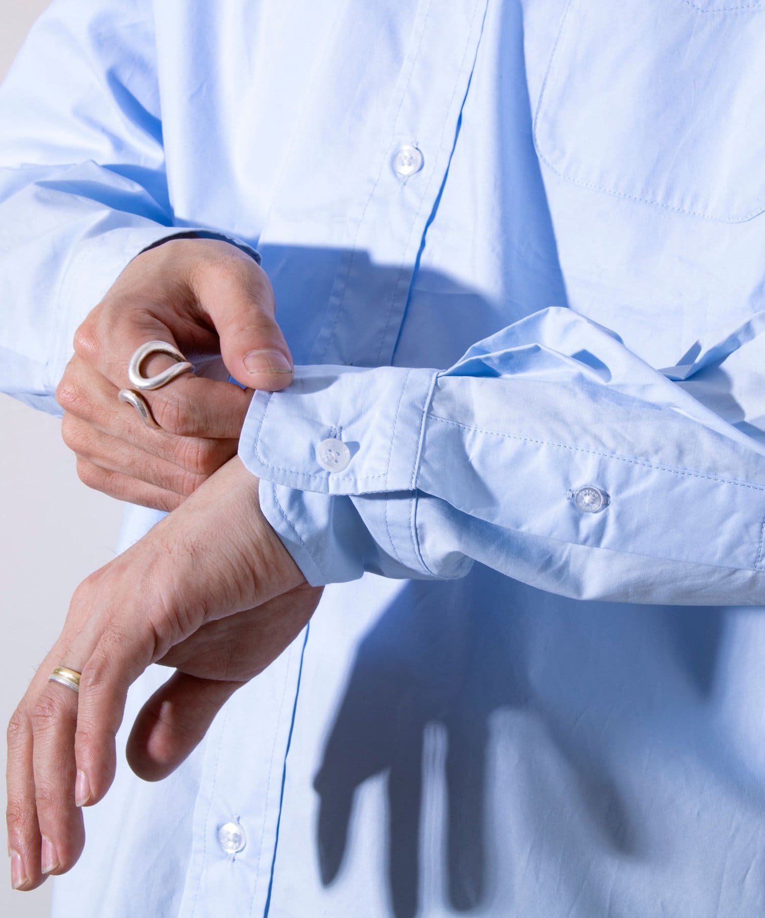 オーバーサイズシャツを着やすいベーシックサイズにしたGLOSTERだけの別注アイテム