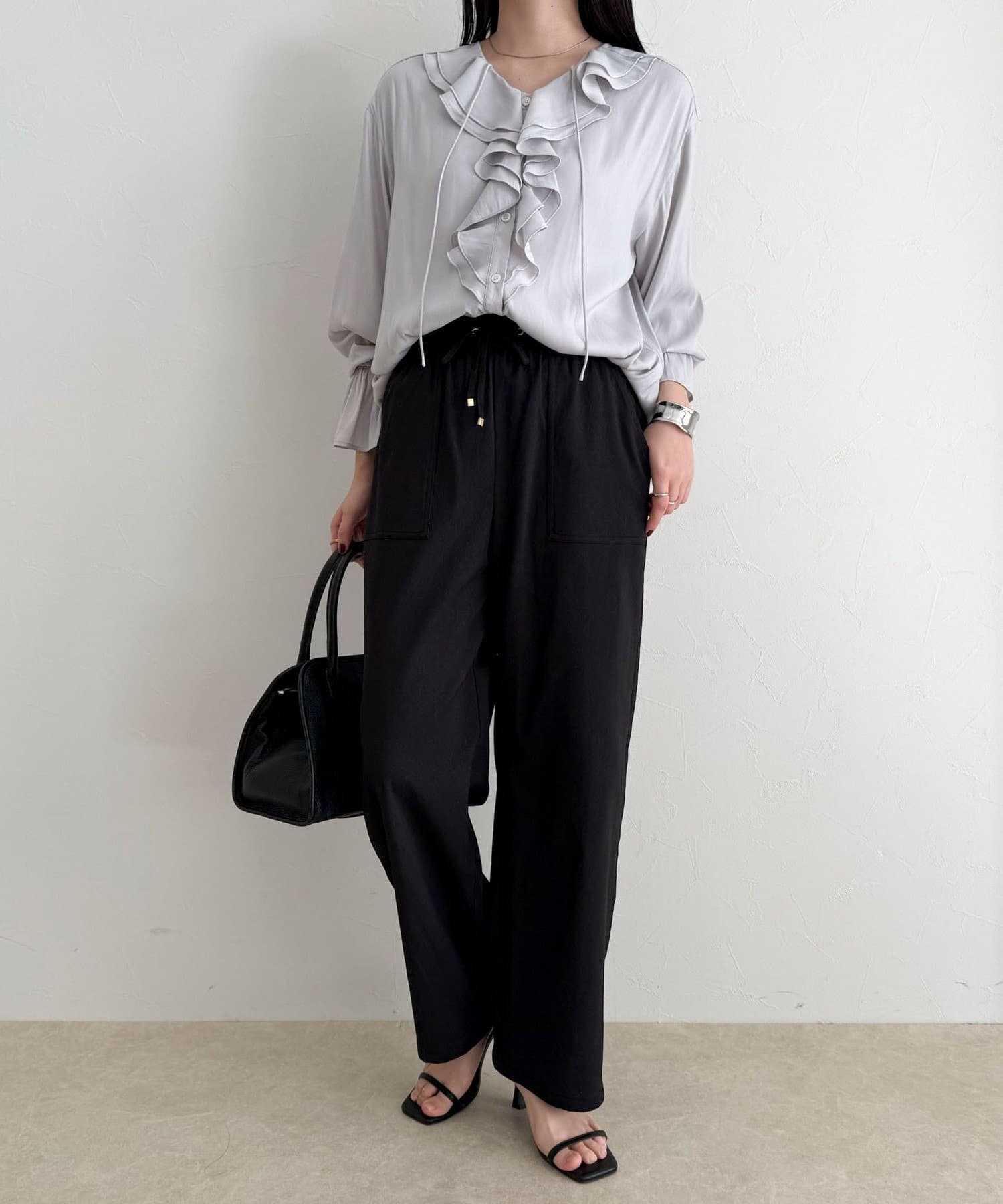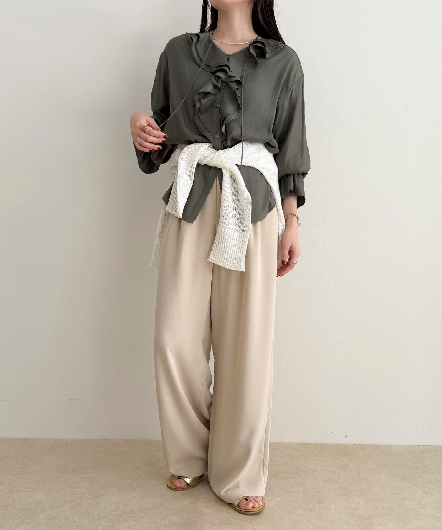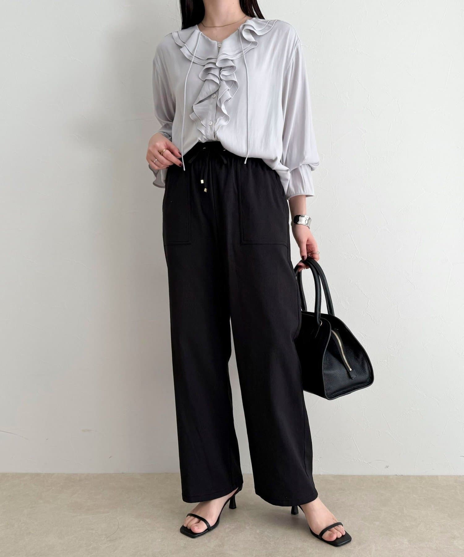 フリルにボリュームはありますが、落ち感のある素材なので広がりすぎず着やすかったです!