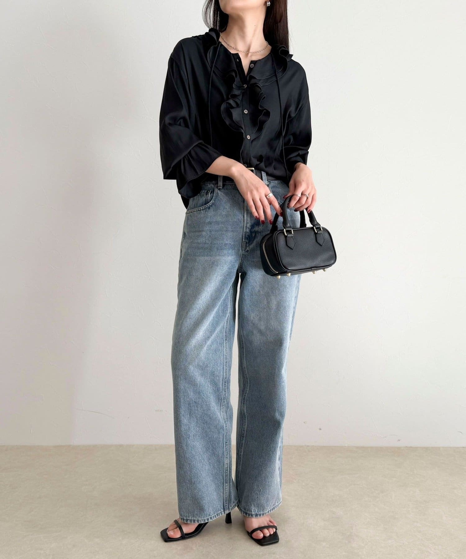 デニム合わせでも甘くなりすぎず、大人っぽく着られました◎