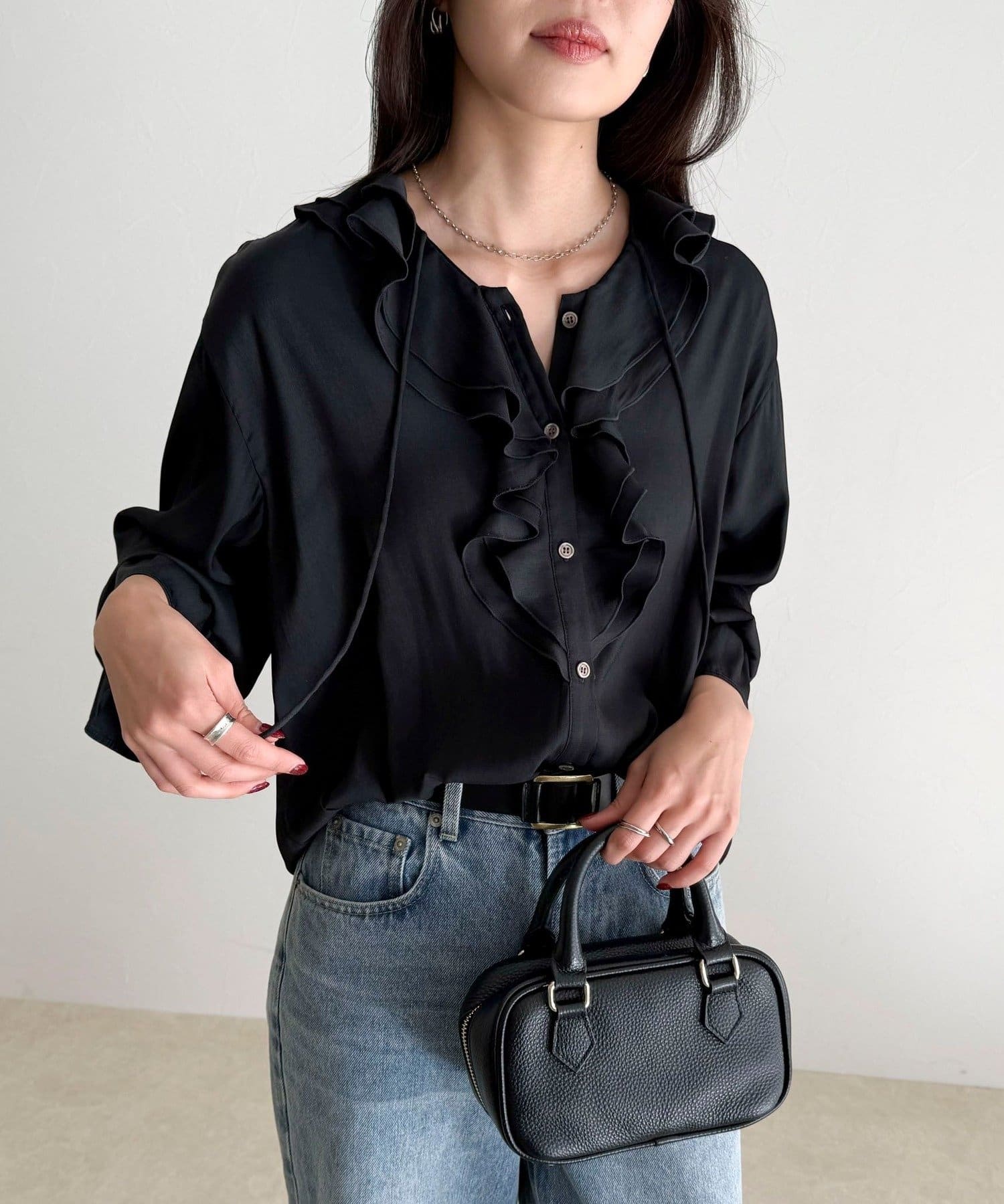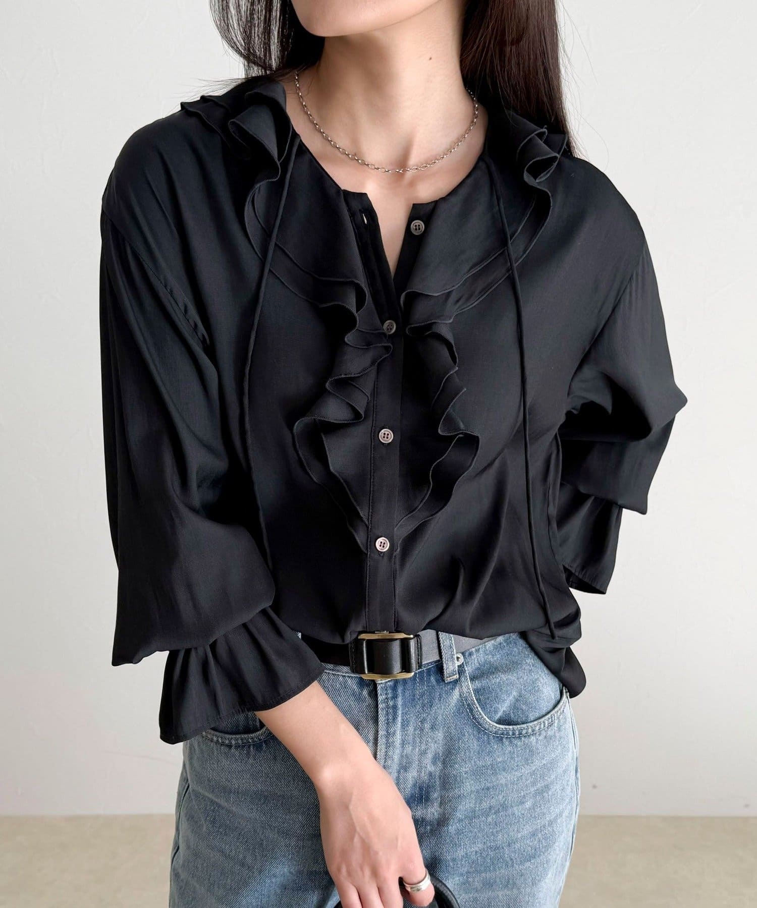 顔まわりを華やかに彩る、ボリュームフリルブラウス