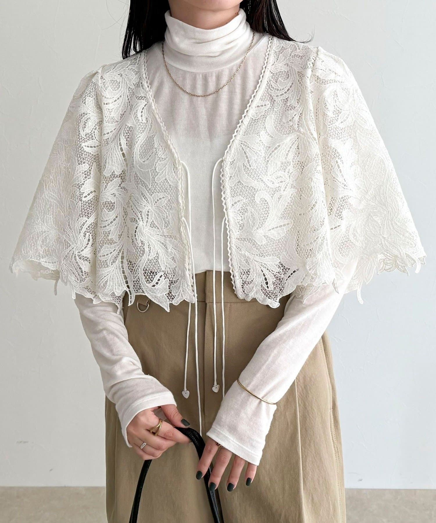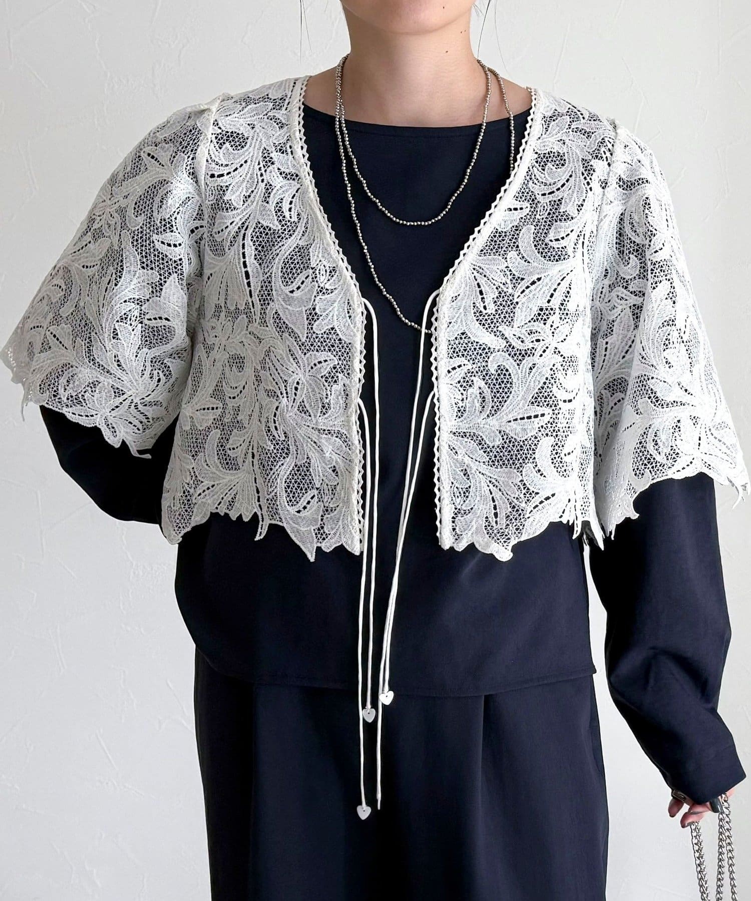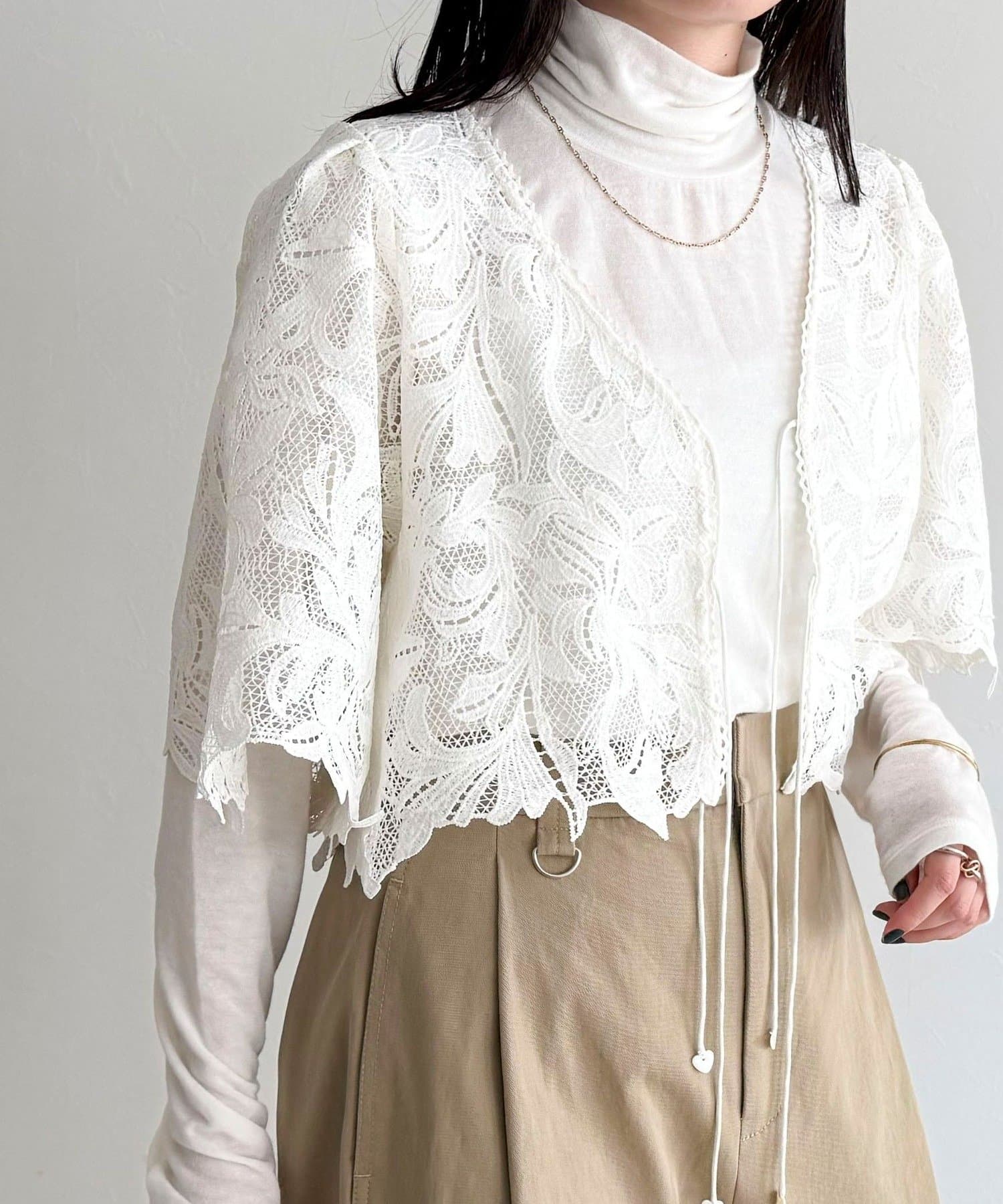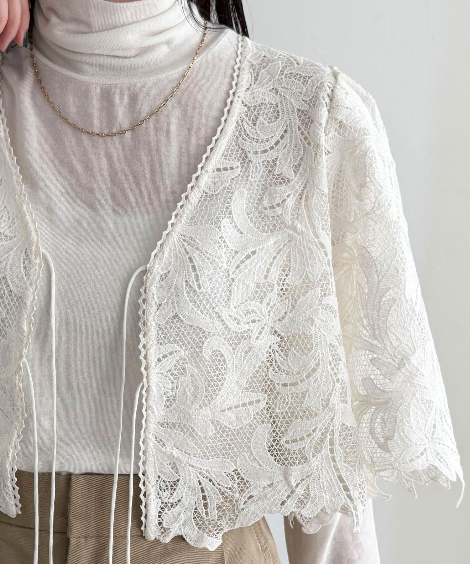 ・いつものスタイリングにプラスするだけで、ぐっと垢抜けた印象に仕上がるレースボレロ