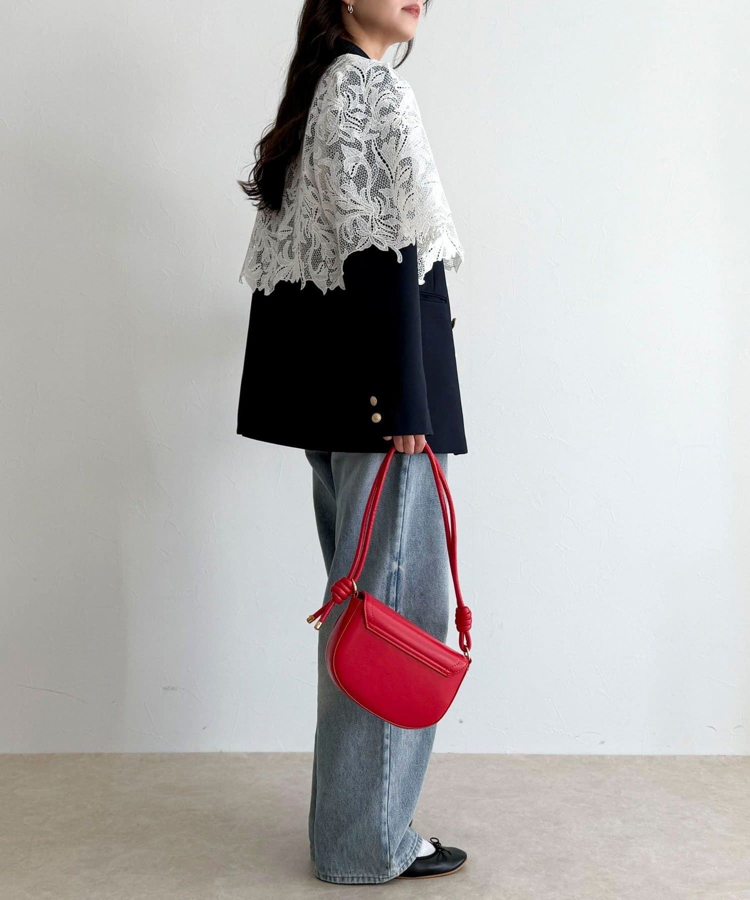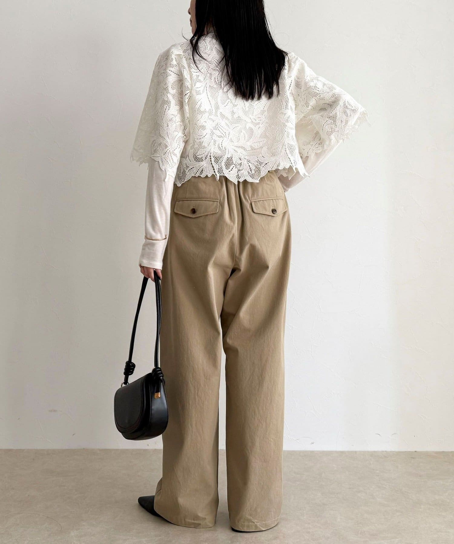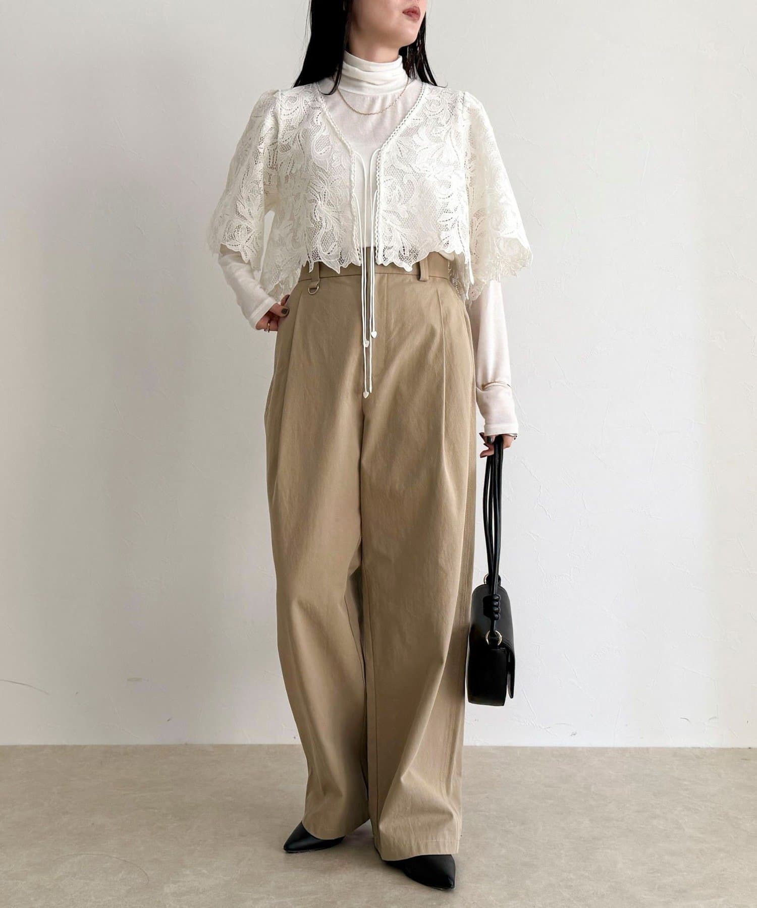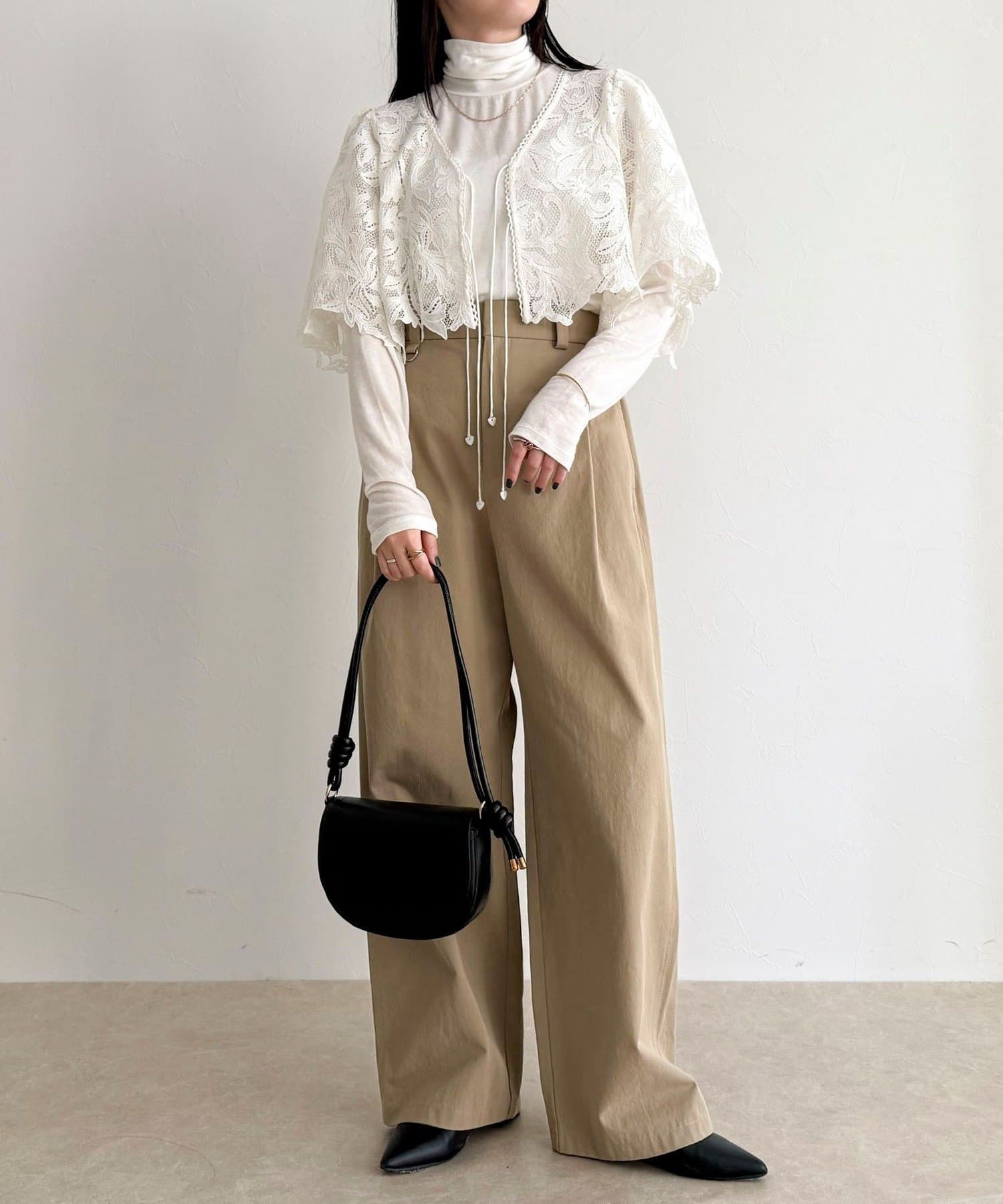 ・いつものスタイリングにプラスするだけで、ぐっと垢抜けた印象に仕上がるレースボレロ
