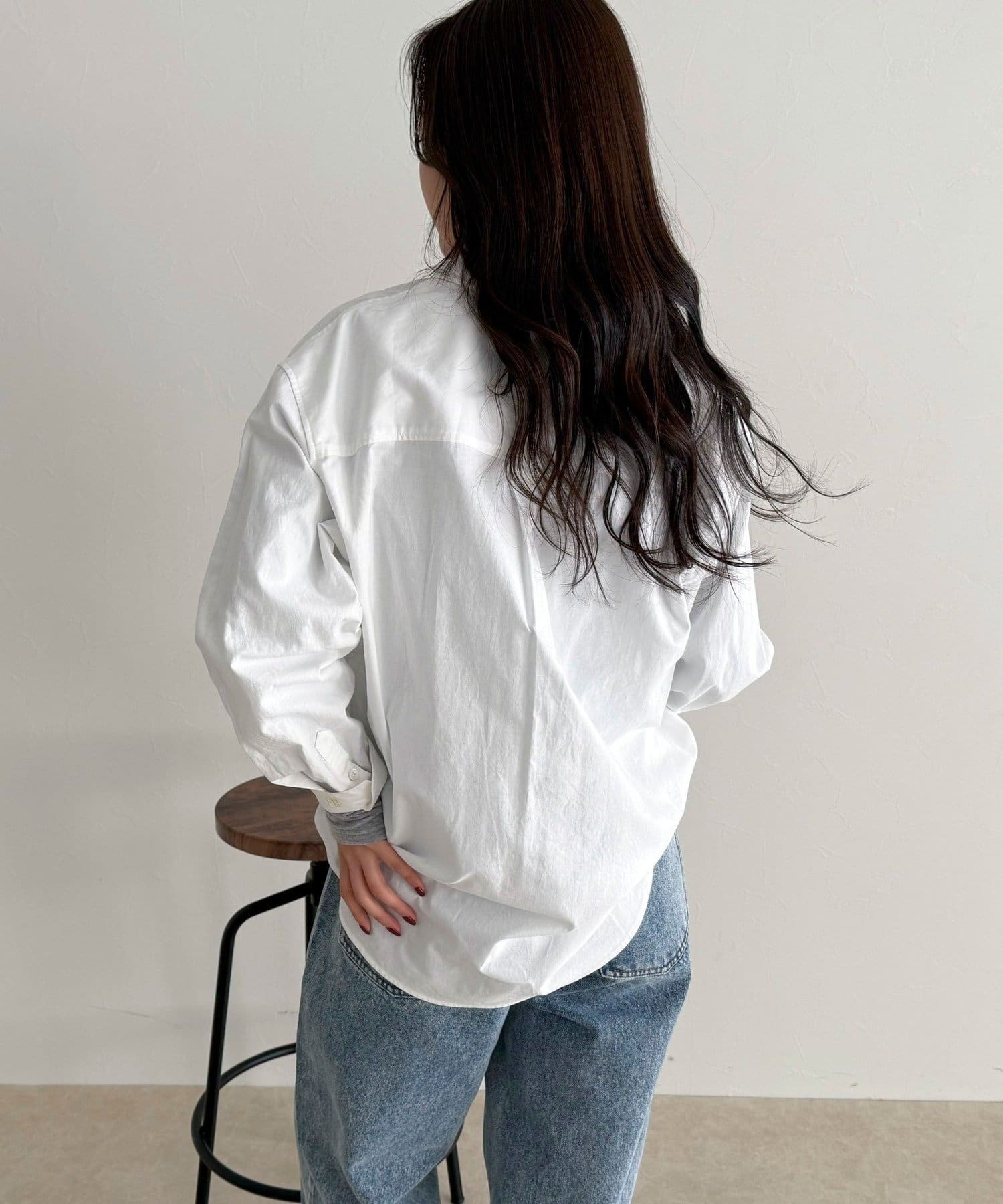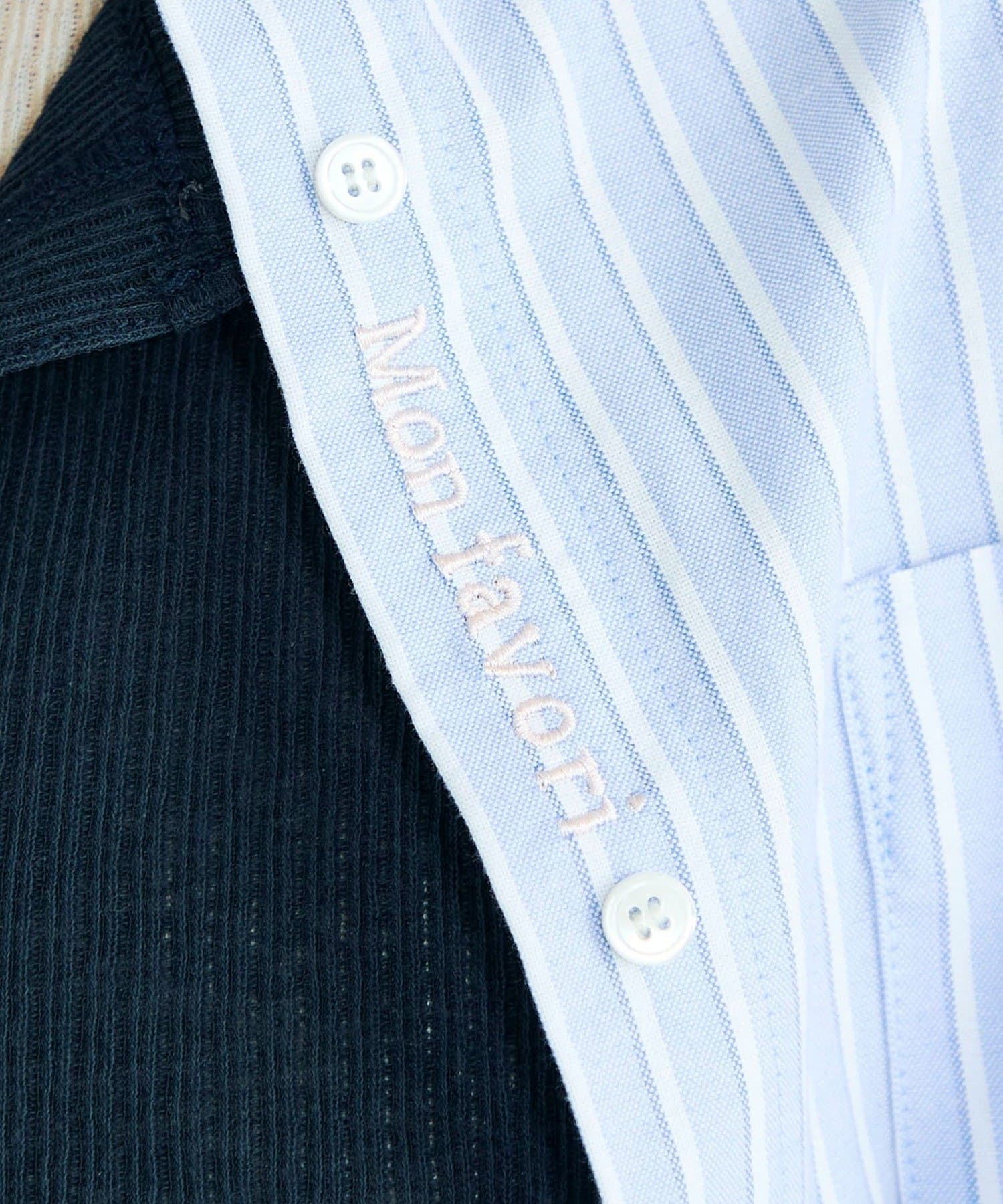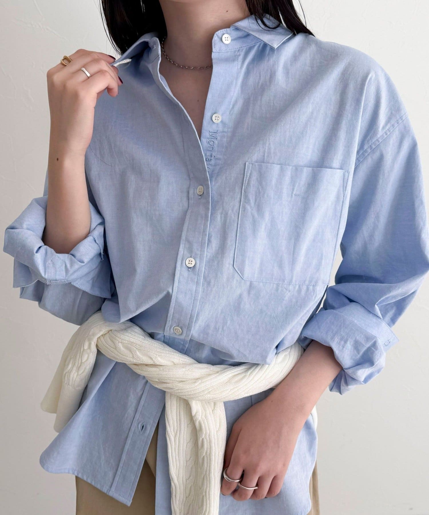 袖をまくったときに見える刺繍がさりげなくて、シンプルだけど気分が上がるシャツです!