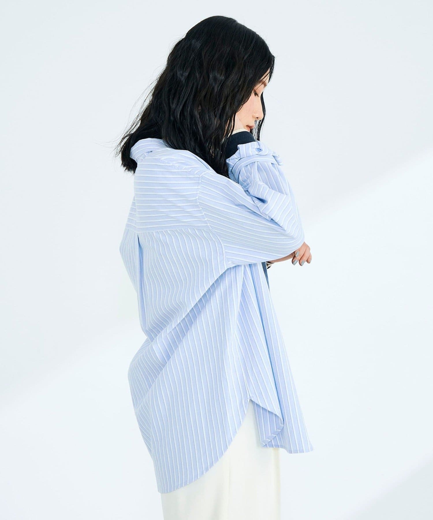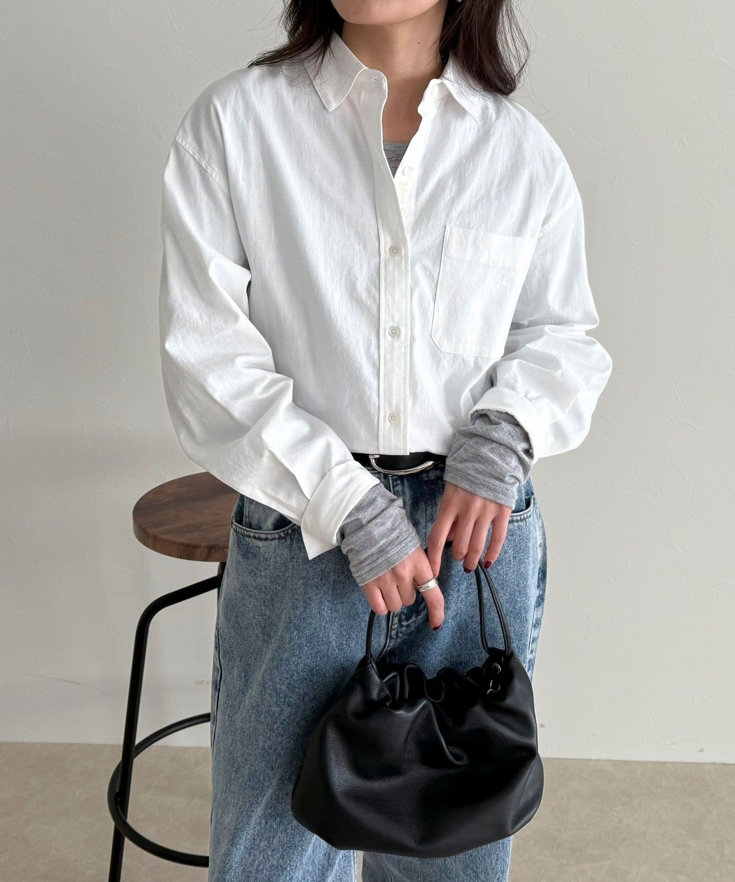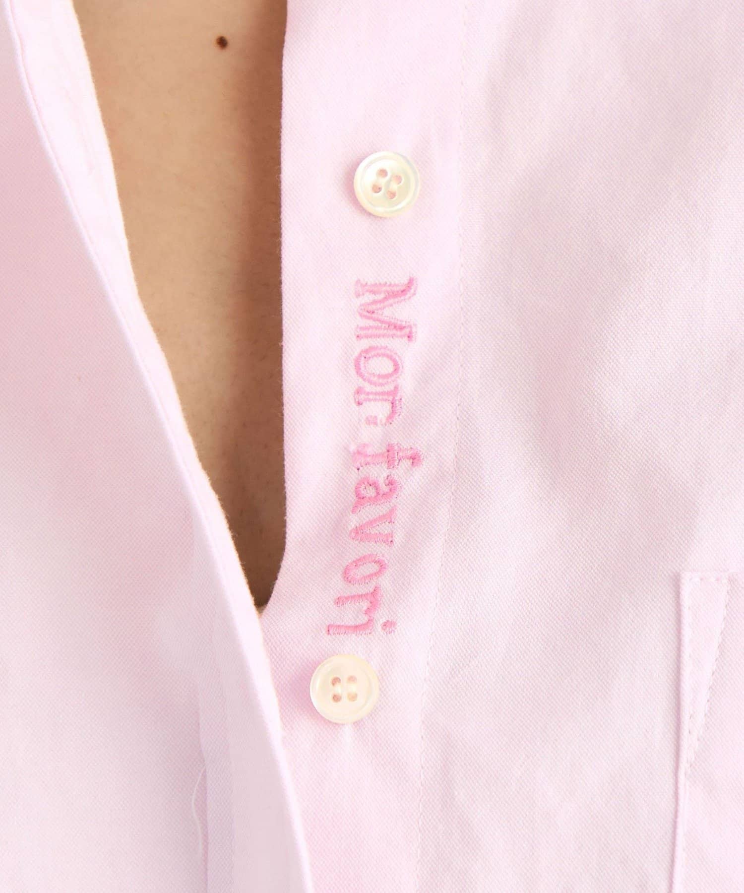 袖をまくったときに見える刺繍がさりげなくて、シンプルだけど気分が上がるシャツです!