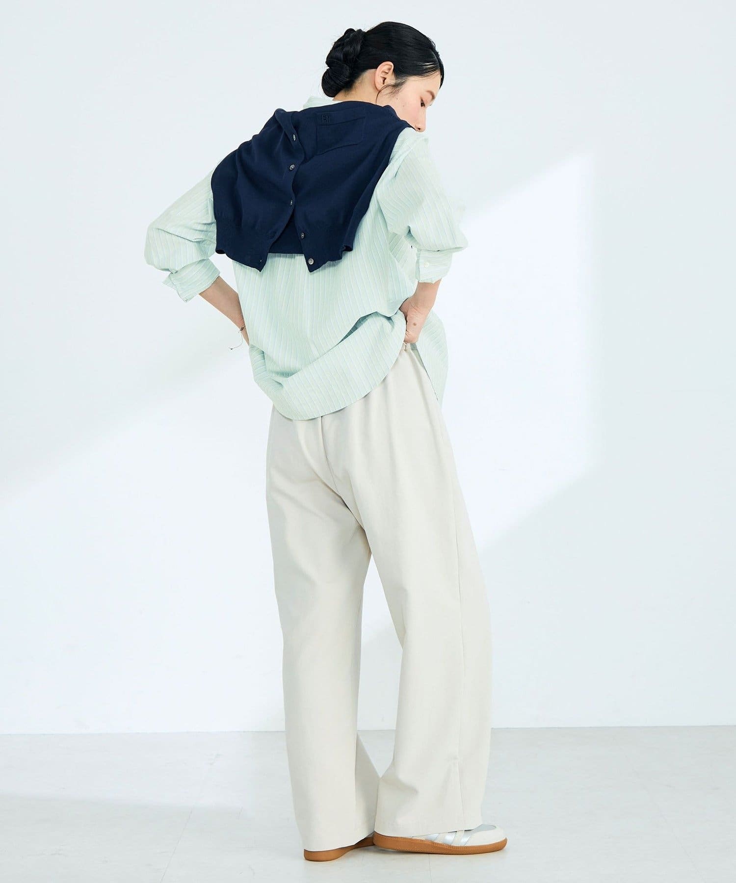 *この製品は、生地の特性上引っかかると糸が飛び出しやすい傾向があります。着用時にはベルトやバック、周囲の壁など表面の粗いものとの摩擦や引っかかりにご注意ください。