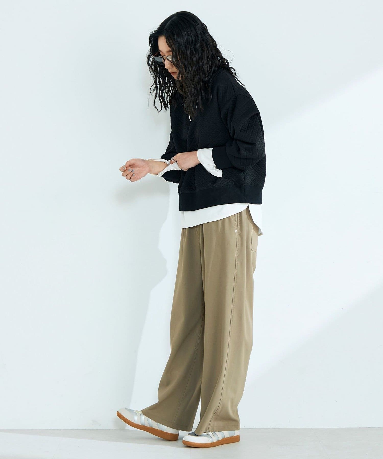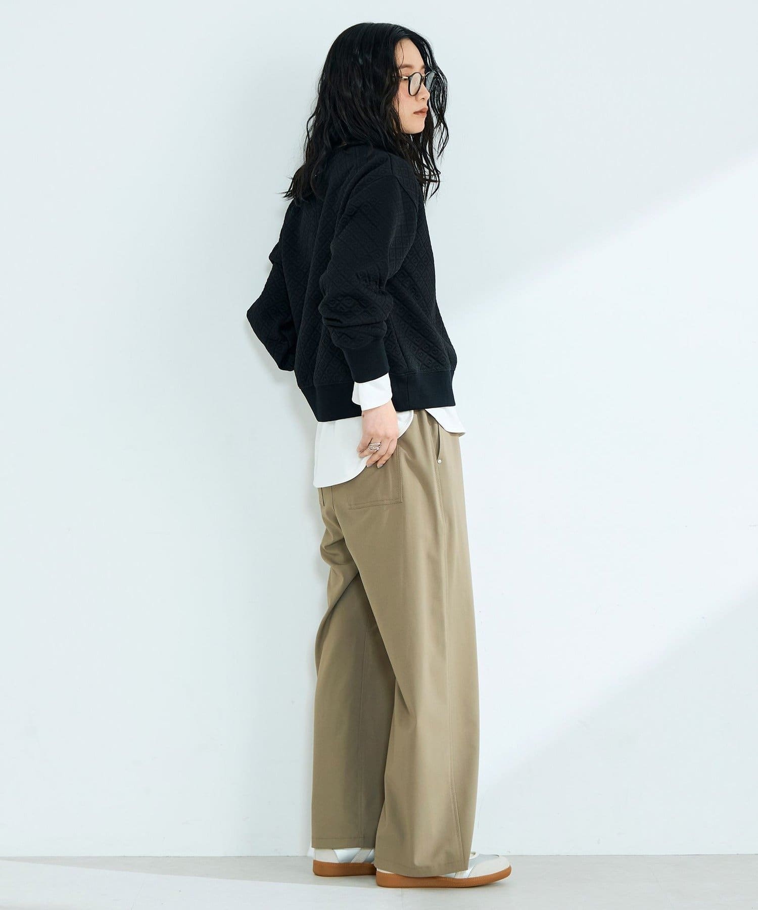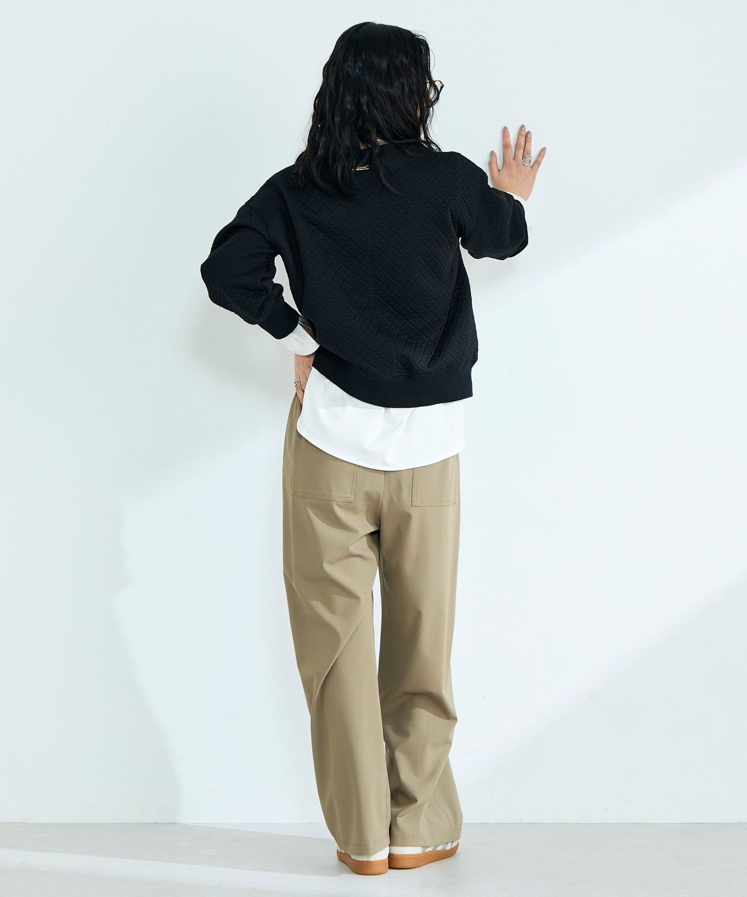 *この製品は、生地の特性上引っかかると糸が飛び出しやすい傾向があります。着用時にはベルトやバック、周囲の壁など表面の粗いものとの摩擦や引っかかりにご注意ください。