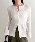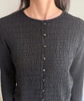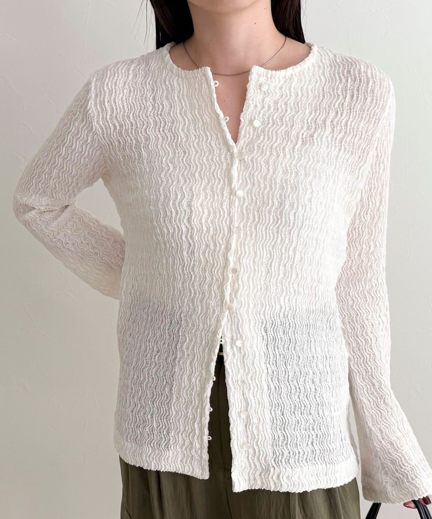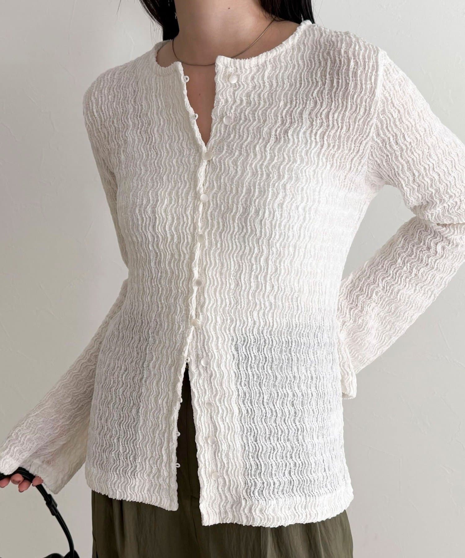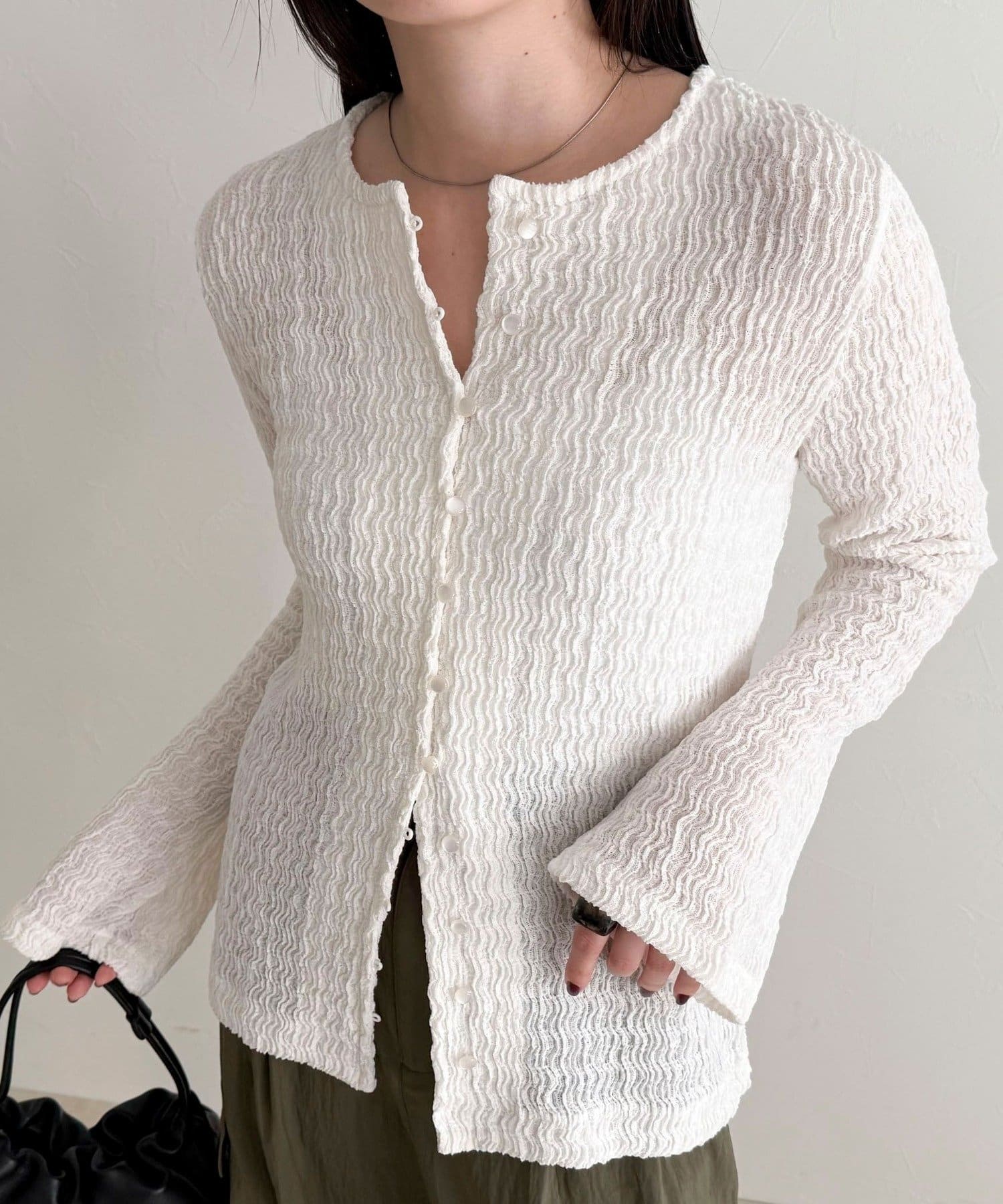 ・表面感のある素材を使用した、1枚で着映えするカットブラウス