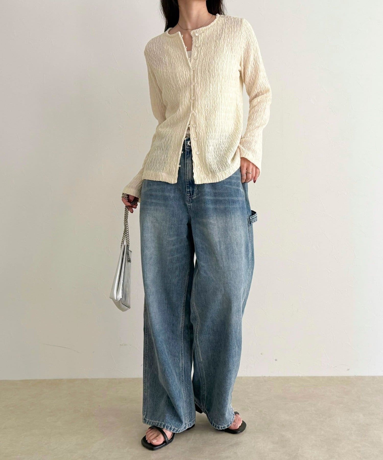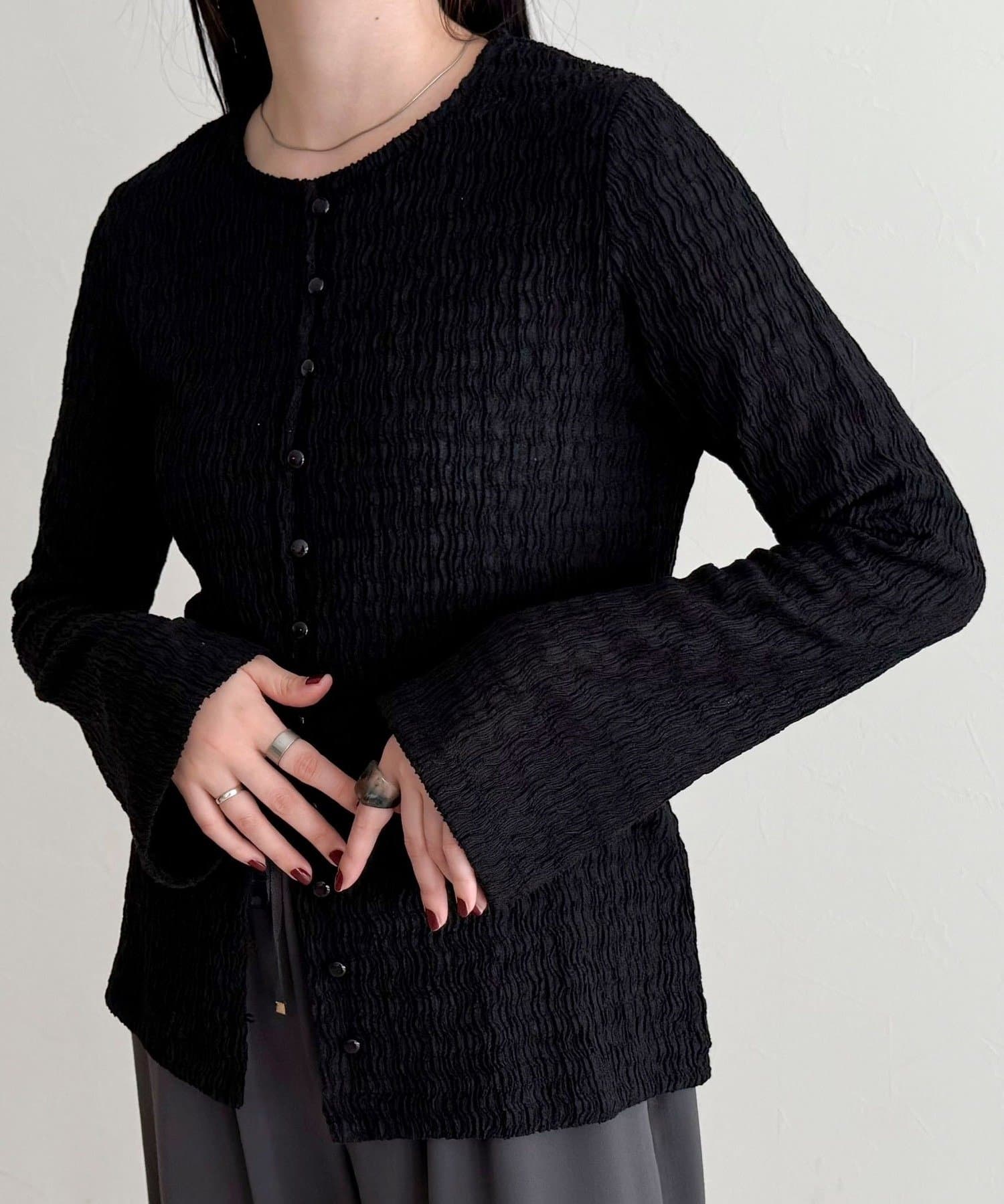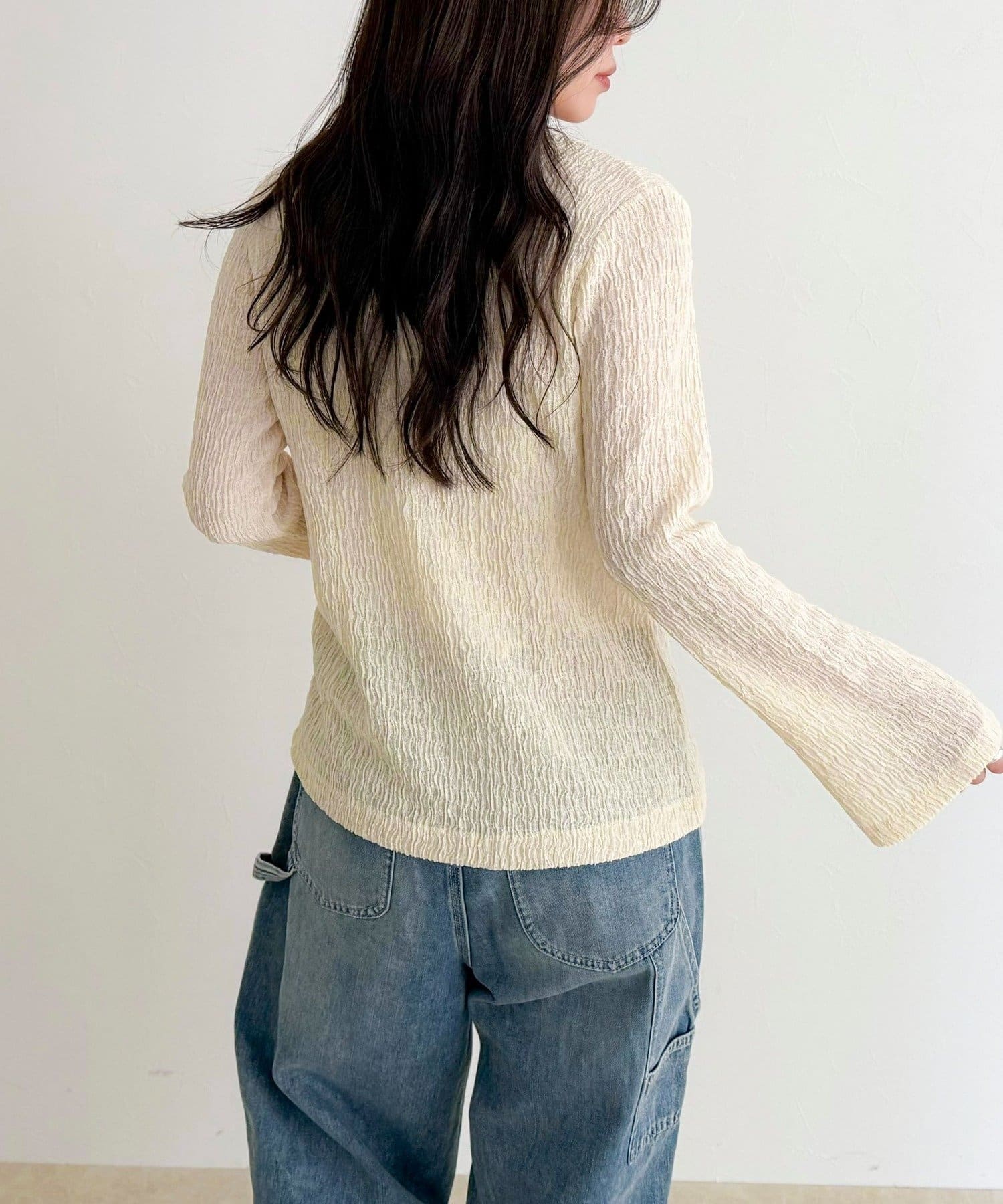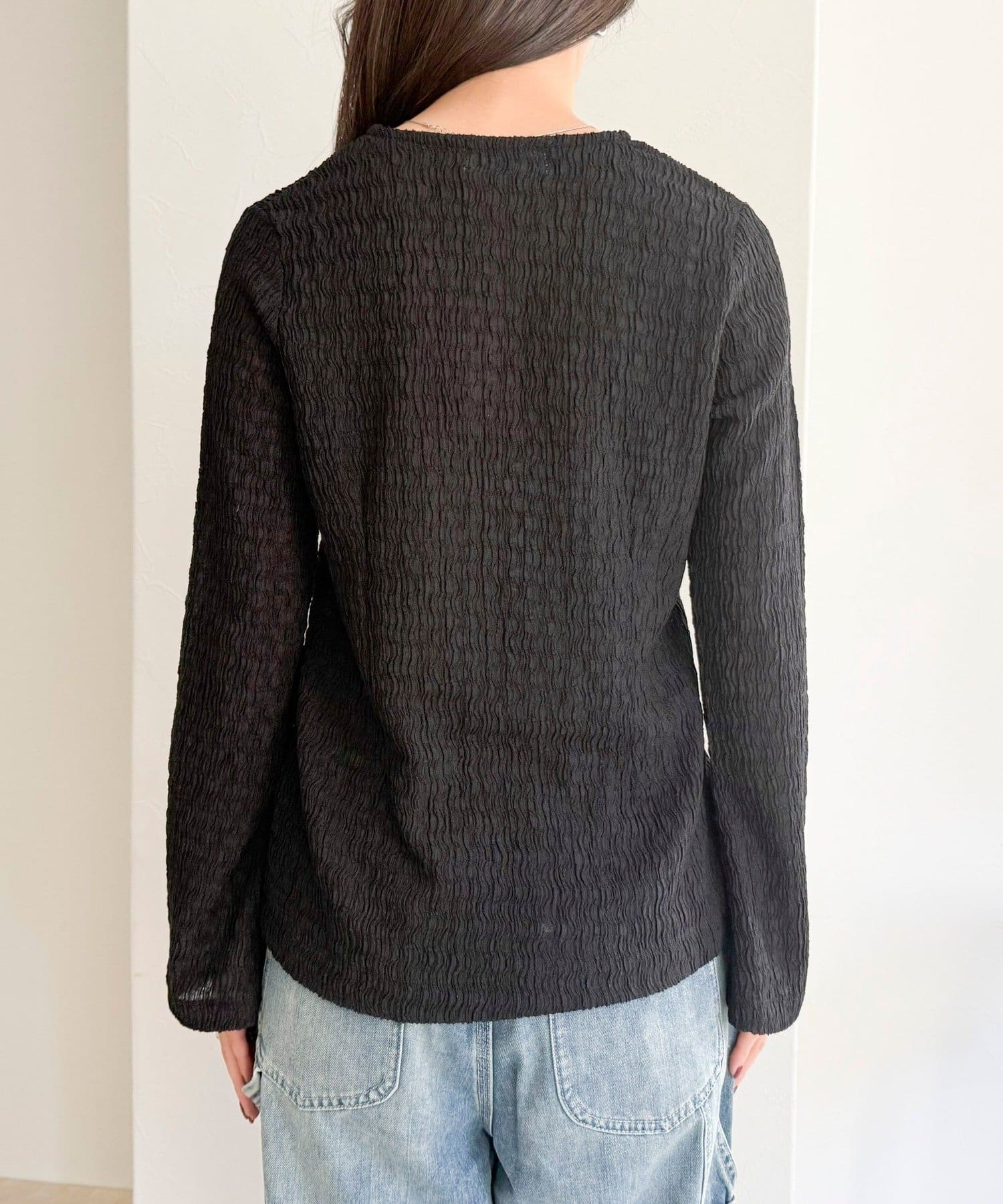 シャーリングの表面感で、一枚でもしっかり映えます。