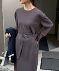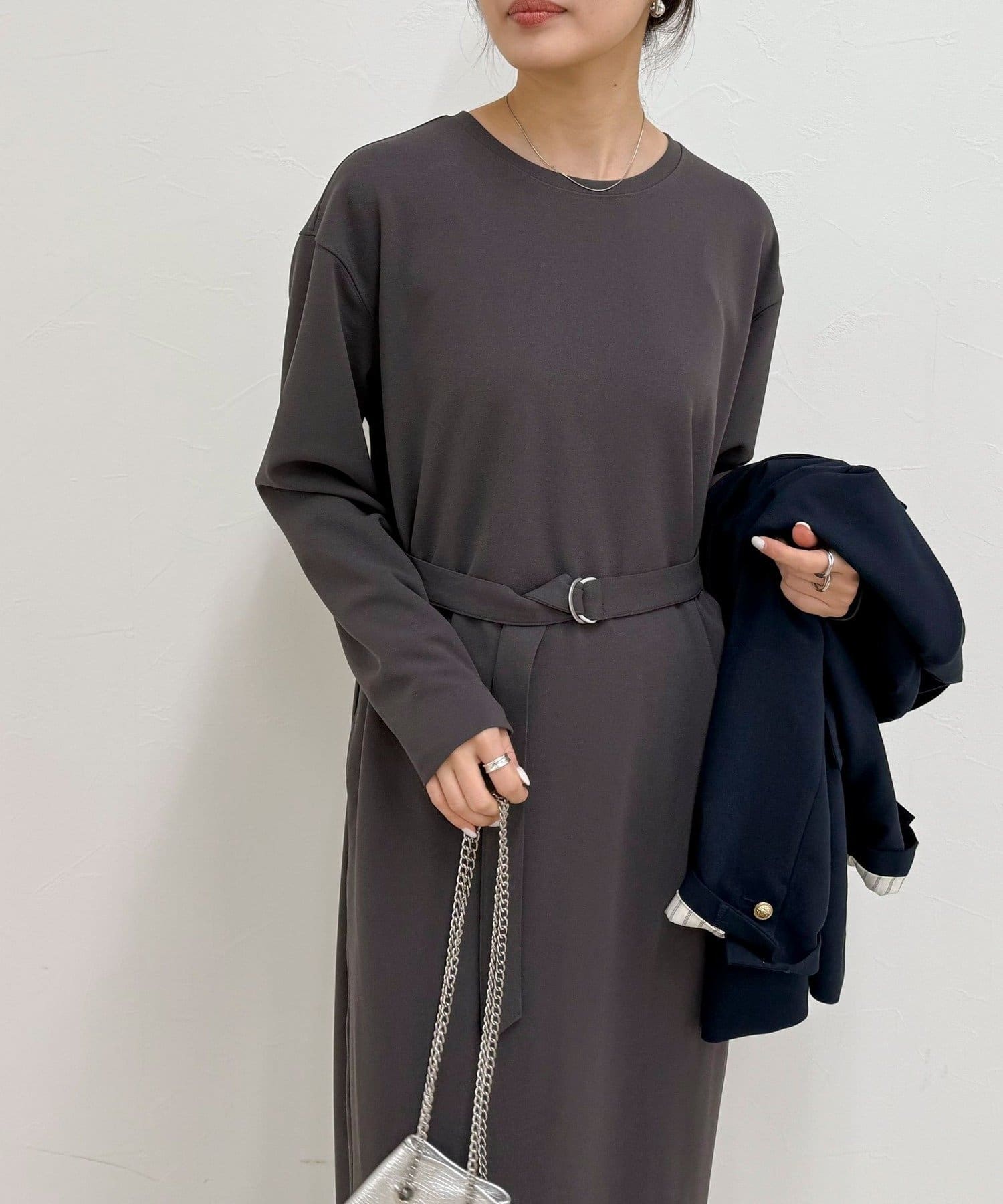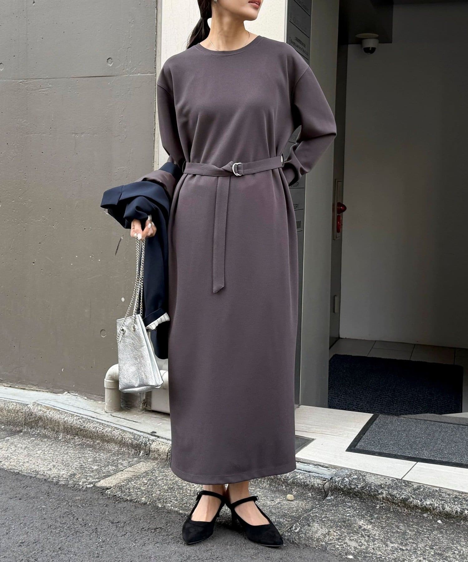 ・シンプルで着回し力の高い、ジョーゼット素材のベルト付きワンピース
