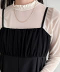 ・チュールを重ねた切替デザインがポイントのオールインワン