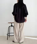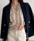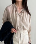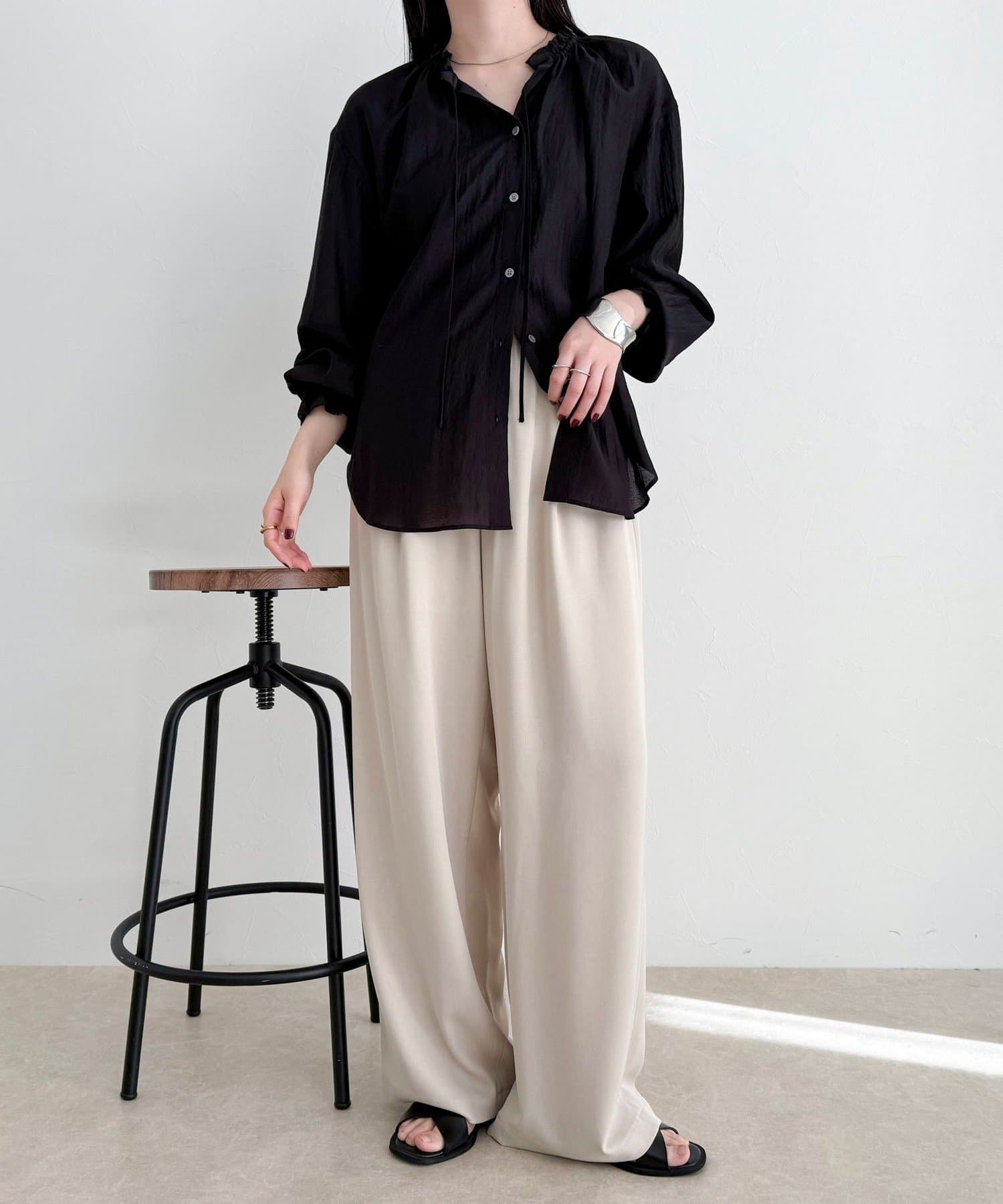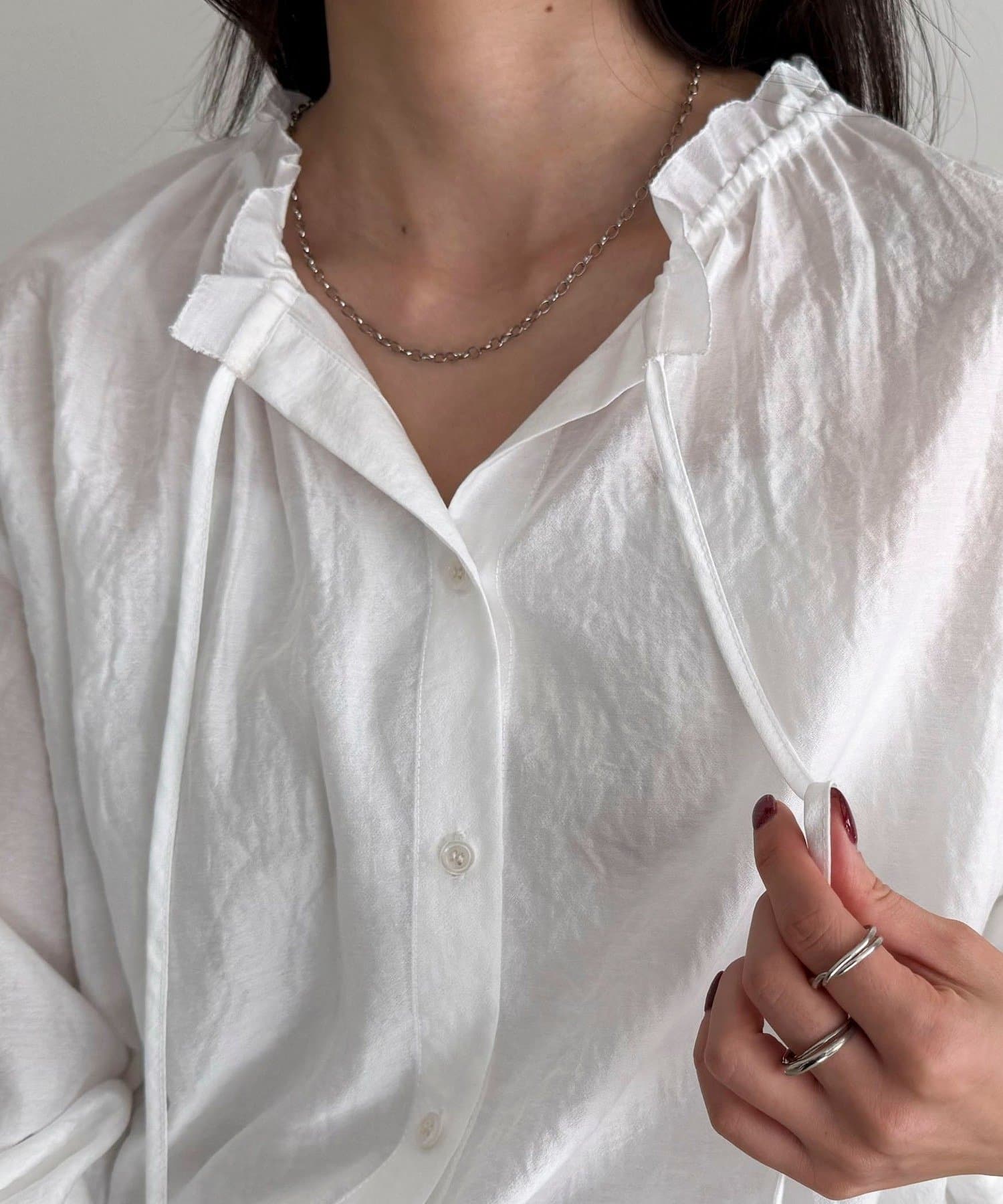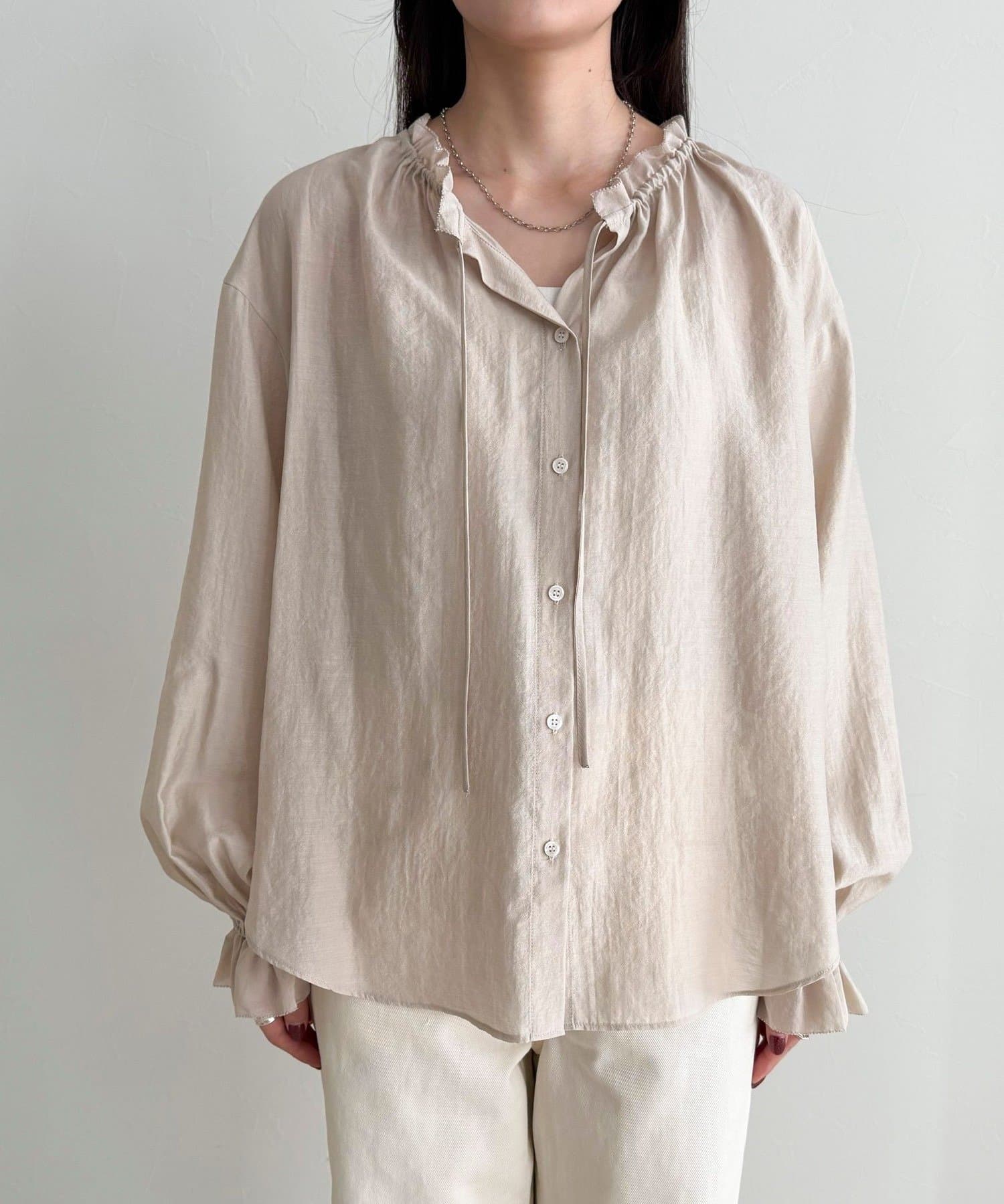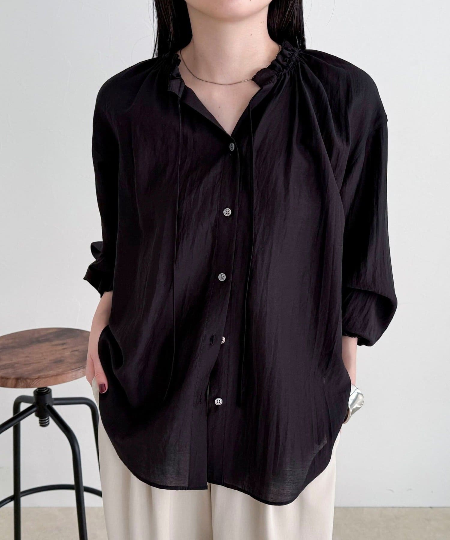 ・ほんのりとしたシャイニー感とシアー素材が軽やかで女性らしい印象を演出するブラウス