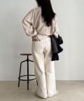 *この製品は、生地の特性上引っかかると糸が飛び出しやすい傾向があります。着用時にはベルトやバック、周囲の壁など表面の粗いものとの摩擦や引っかかりにご注意ください。